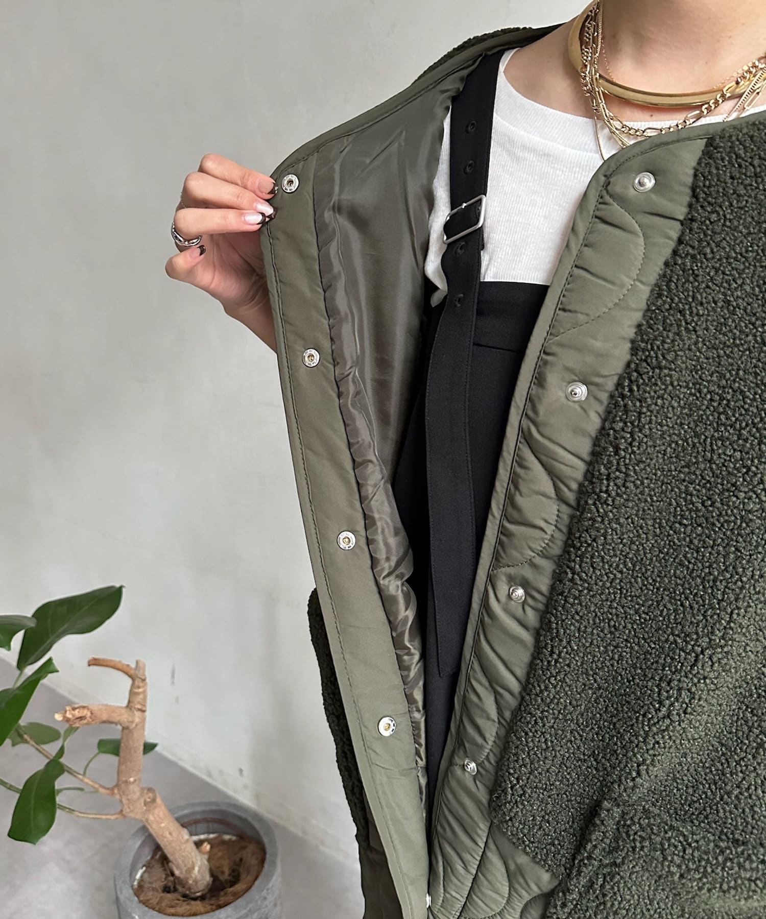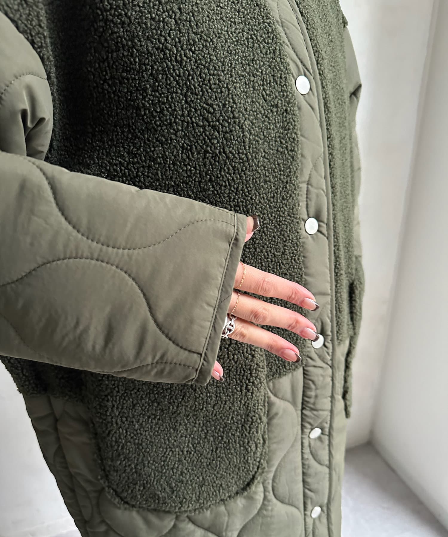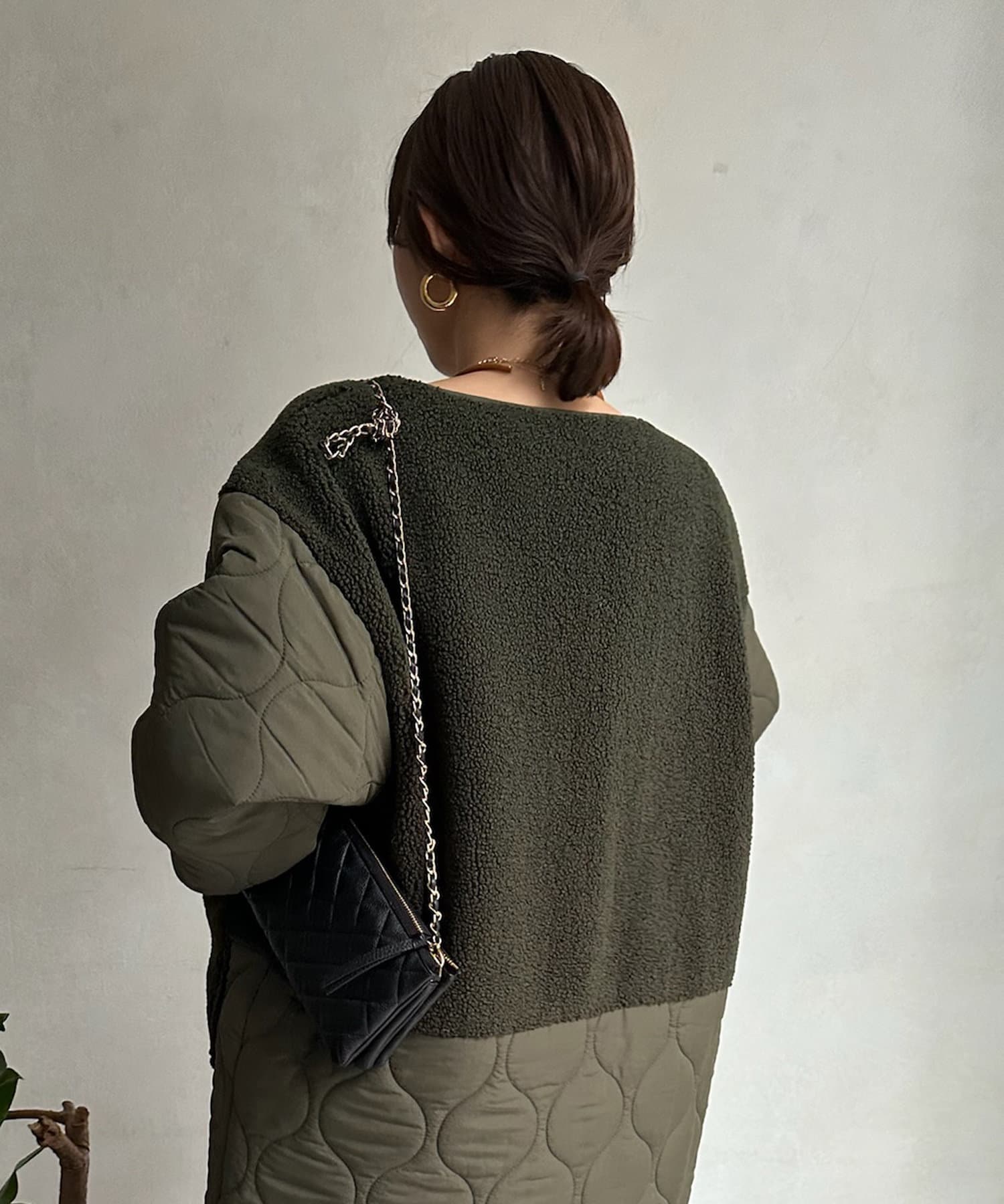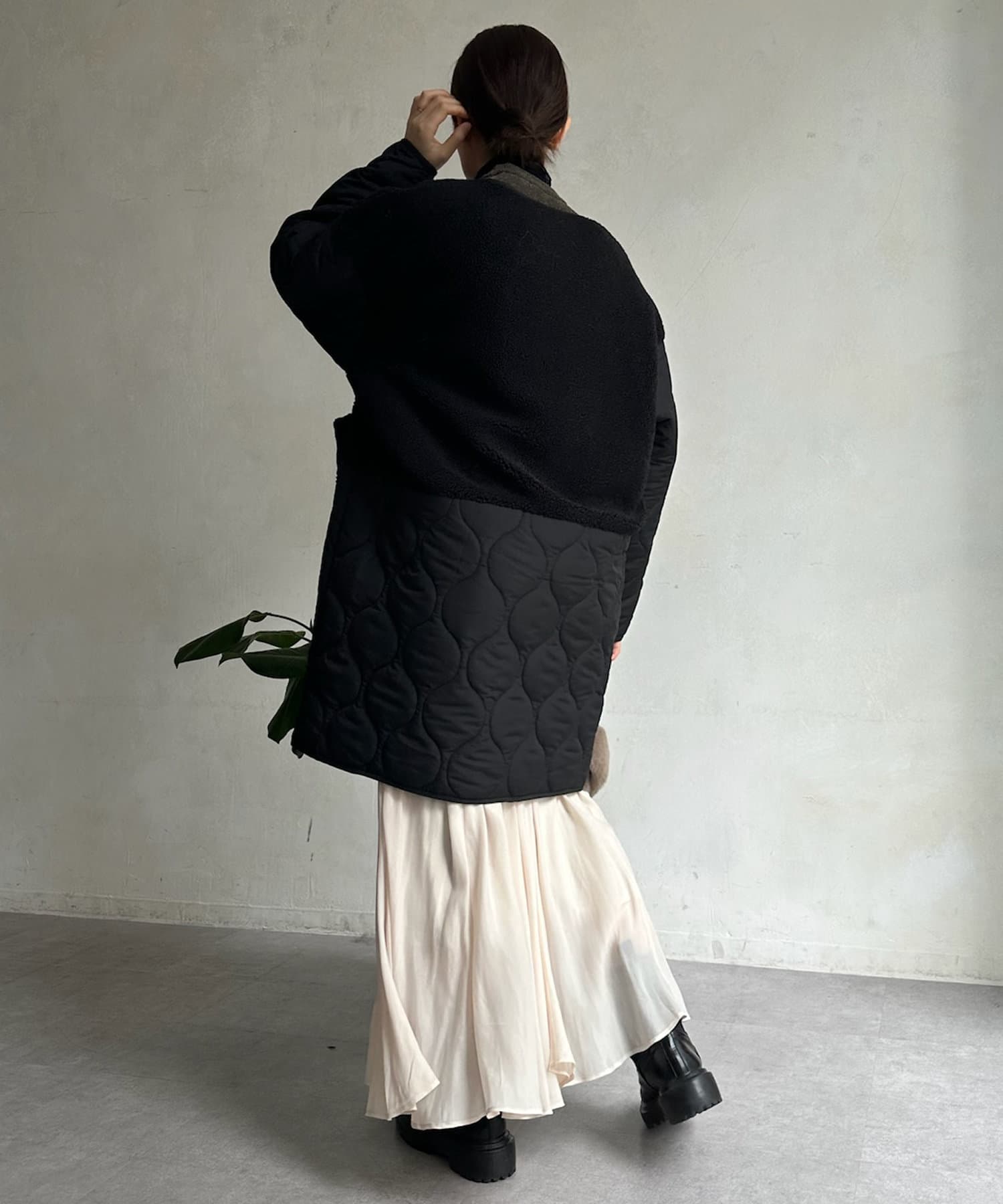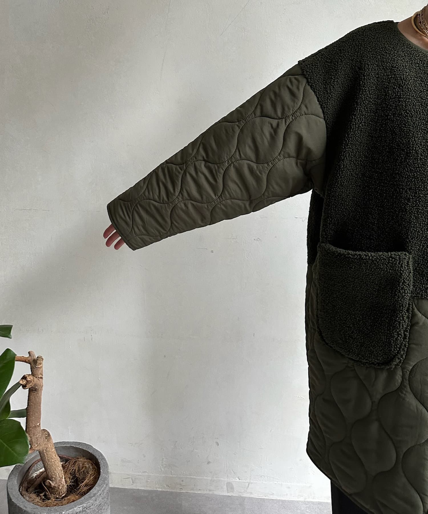 適度な厚みながらもボアとのキルティングの切り替えが映えるキルティングコートが登場!