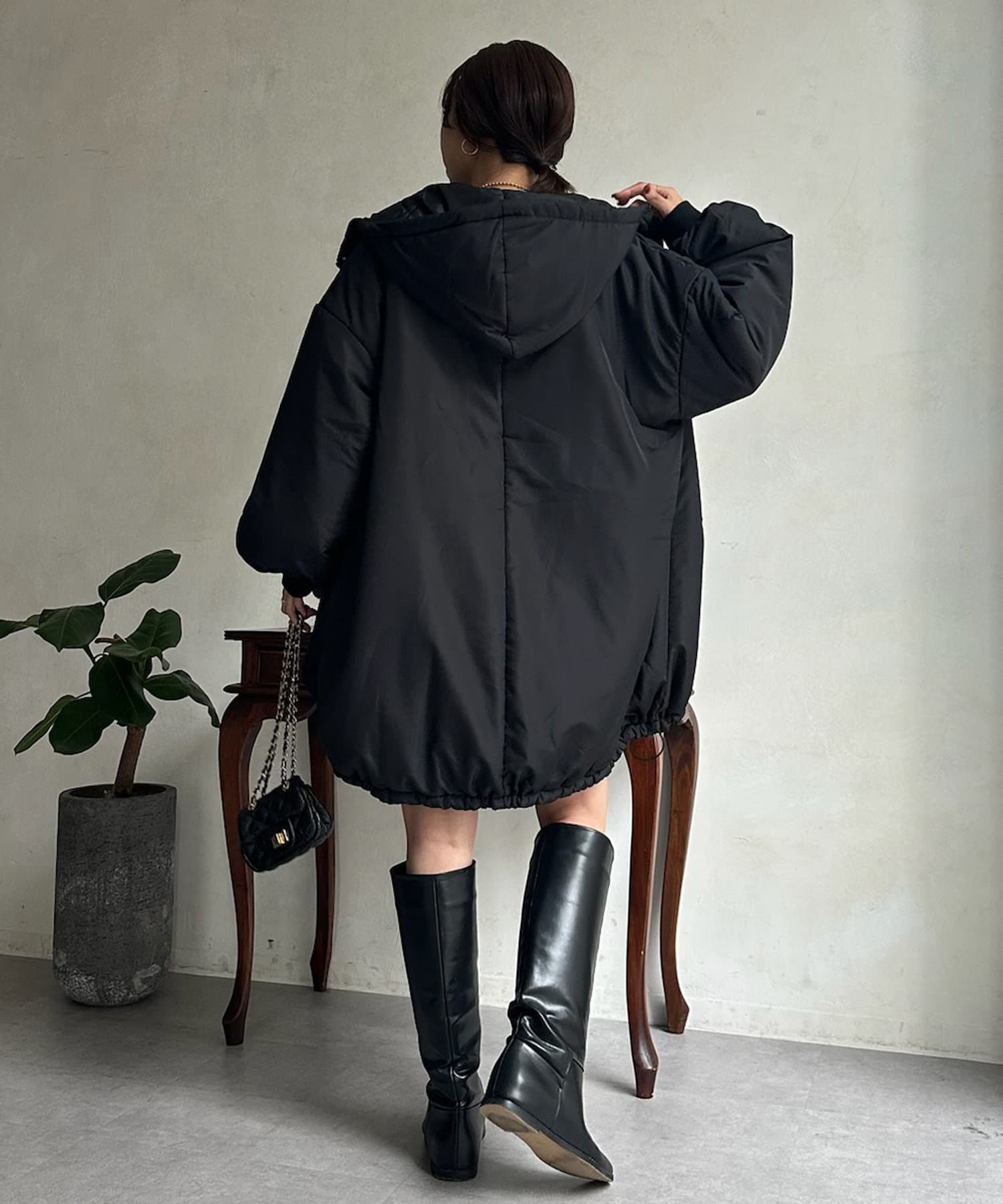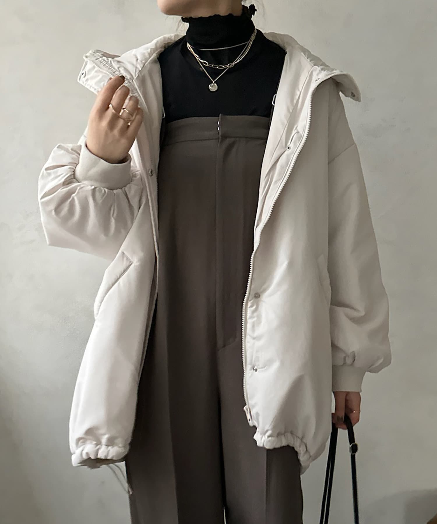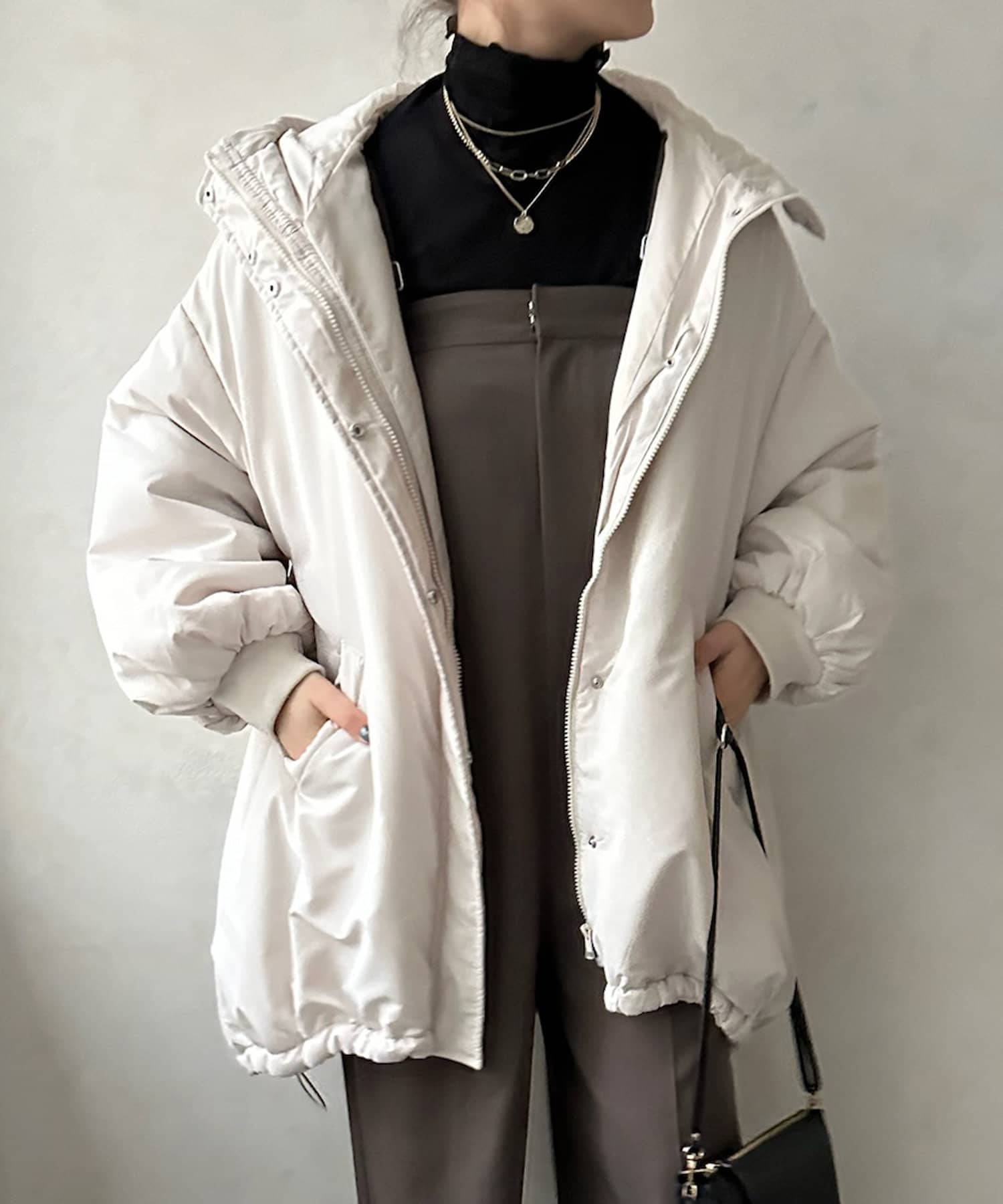 大きいシルエットですが、中綿なので軽く肩が凝らずに着ていただけますよ。