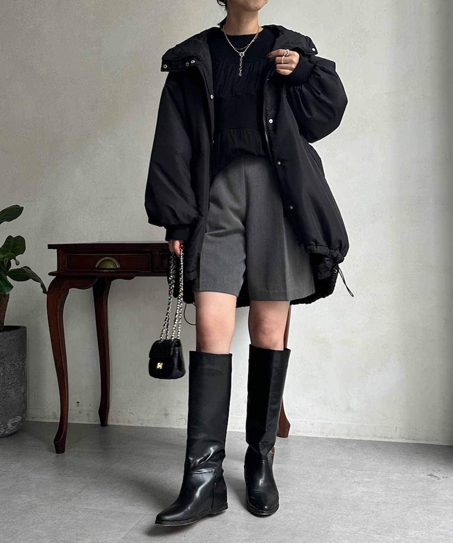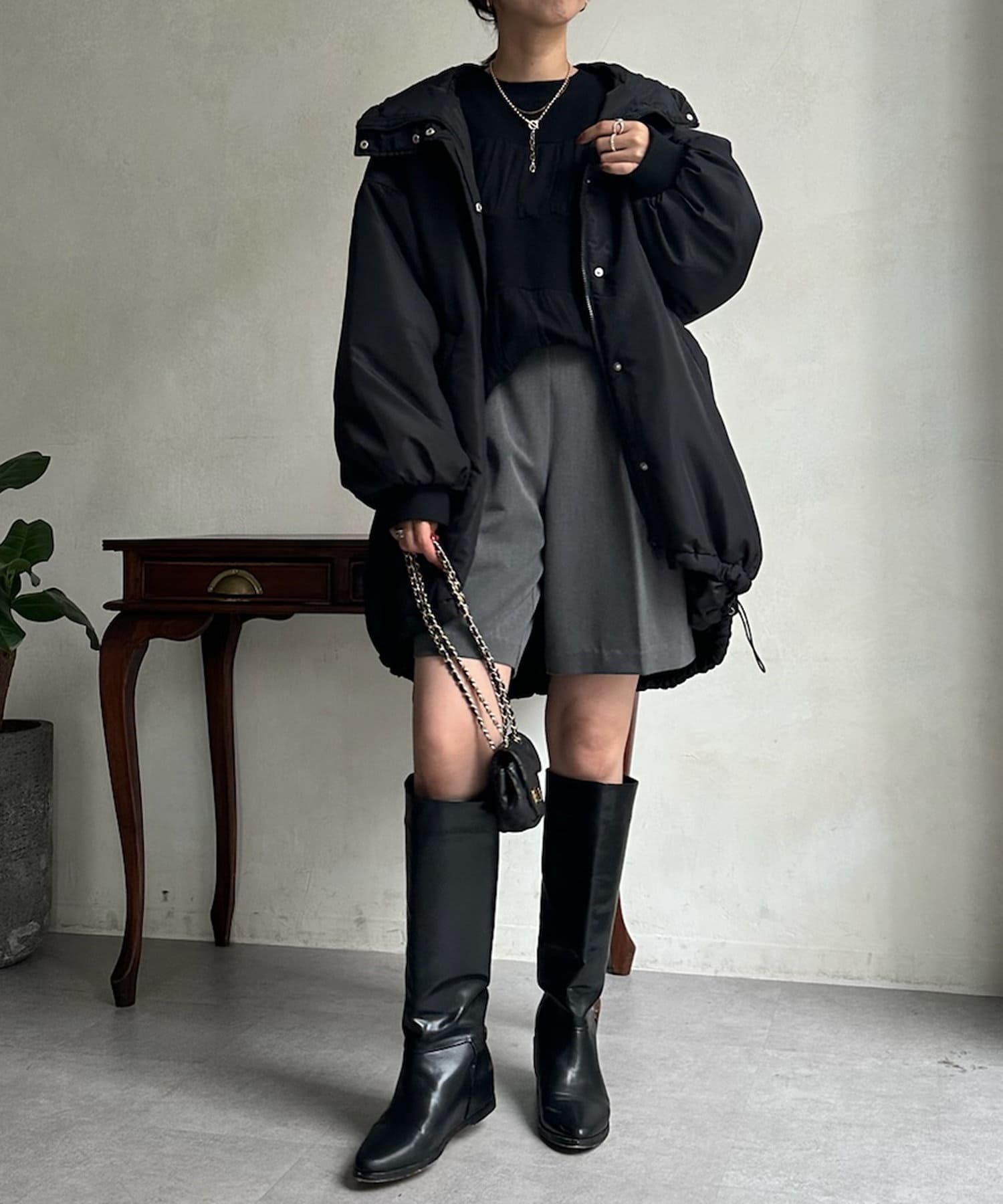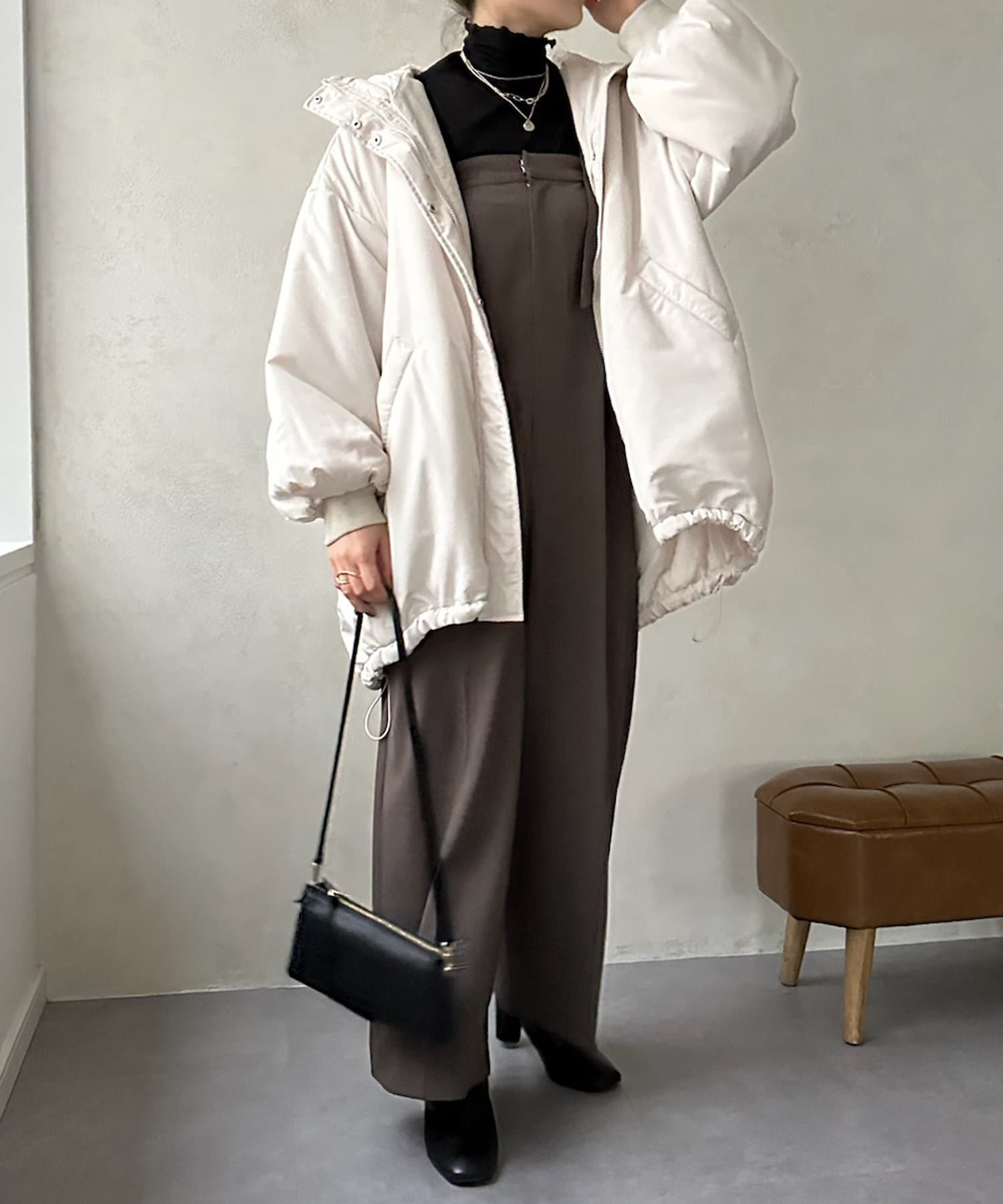 大きいシルエットですが、中綿なので軽く肩が凝らずに着ていただけますよ。