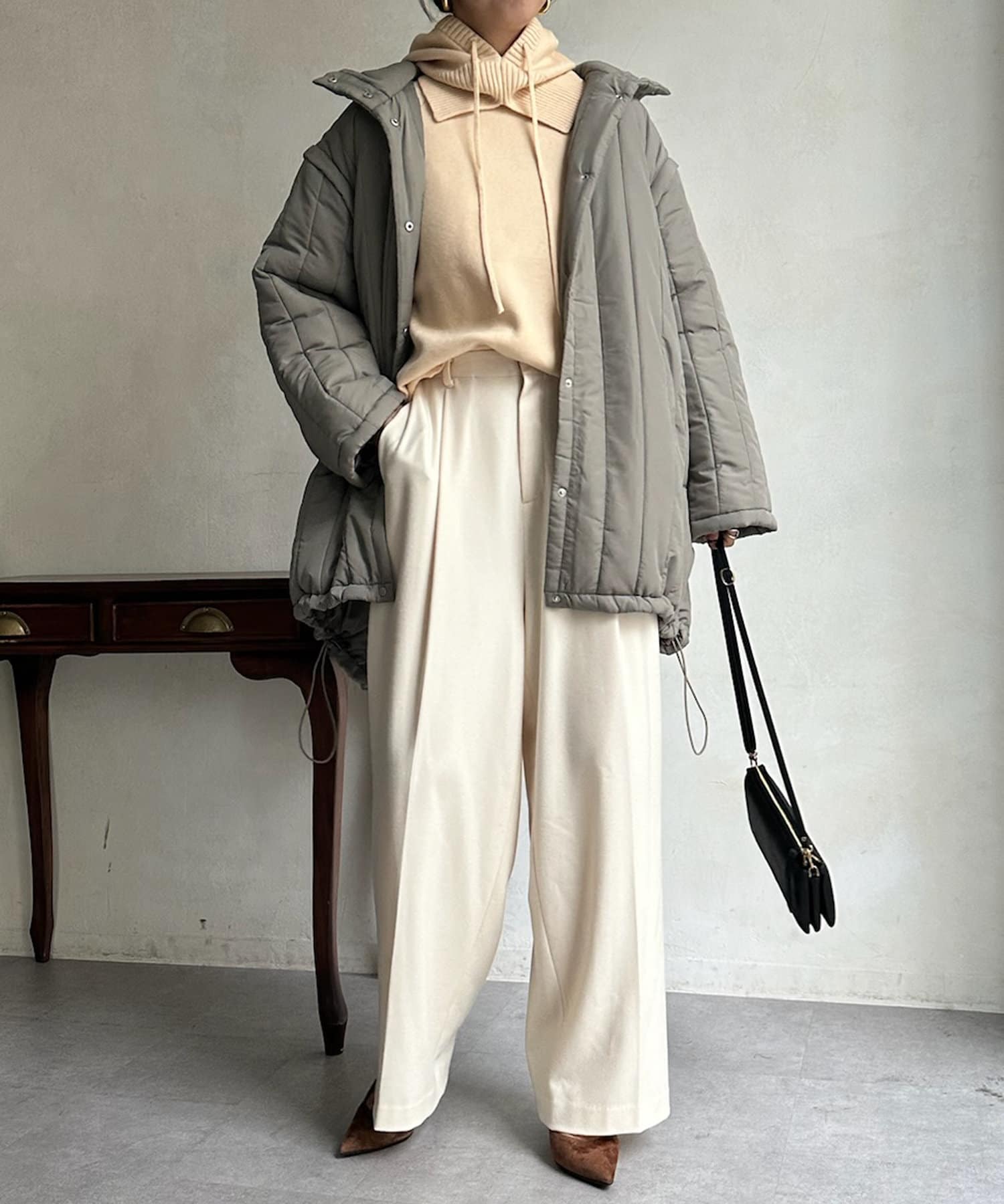 オーバーサイズのシルエットが可愛く裾のドロストでさらにシルエット変化が楽しめます。