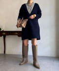 • DOUDOU(ドゥドゥ) FURウール深Vチュニックワンピース