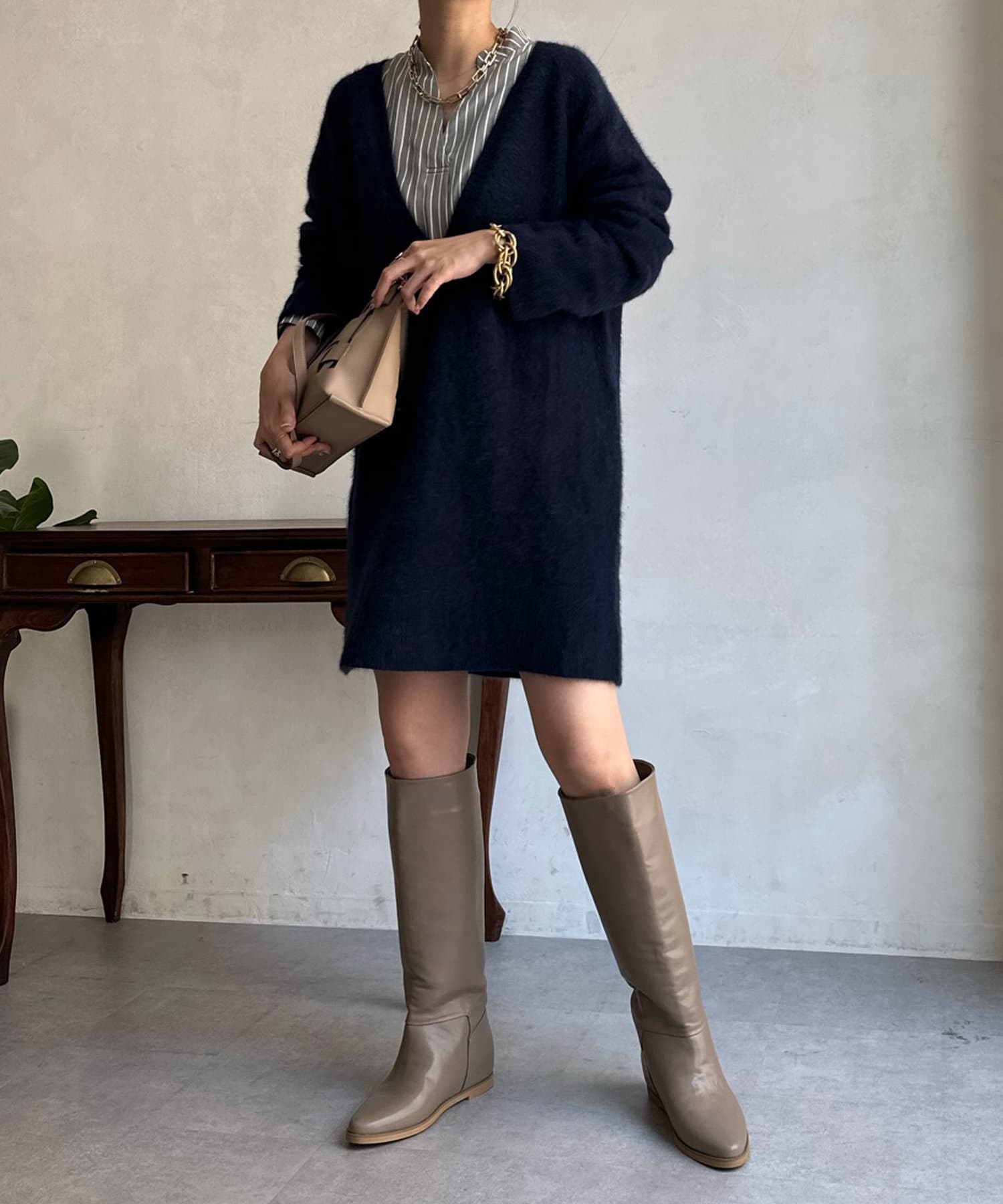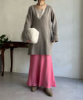 ヒップや腰回りをカバーしてくれるチュニック丈のため、ショートパンツなどを仕込んでロングブーツを合わせたり、ボトムを合わせてスタイリングするのも◎