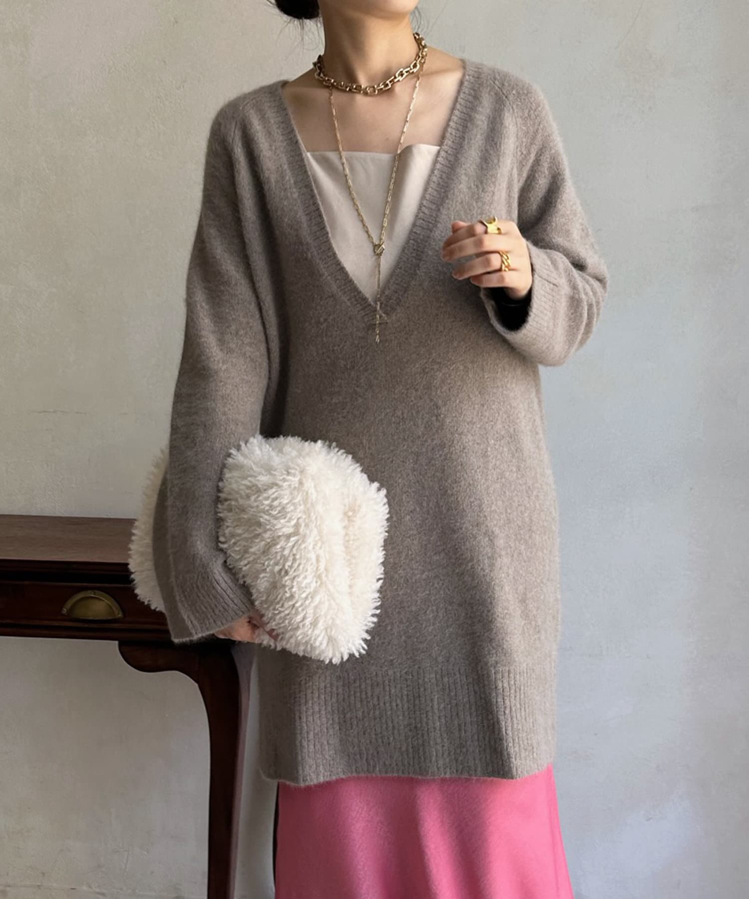DOUDOU(ドゥドゥ) FURウール深Vチュニックワンピース