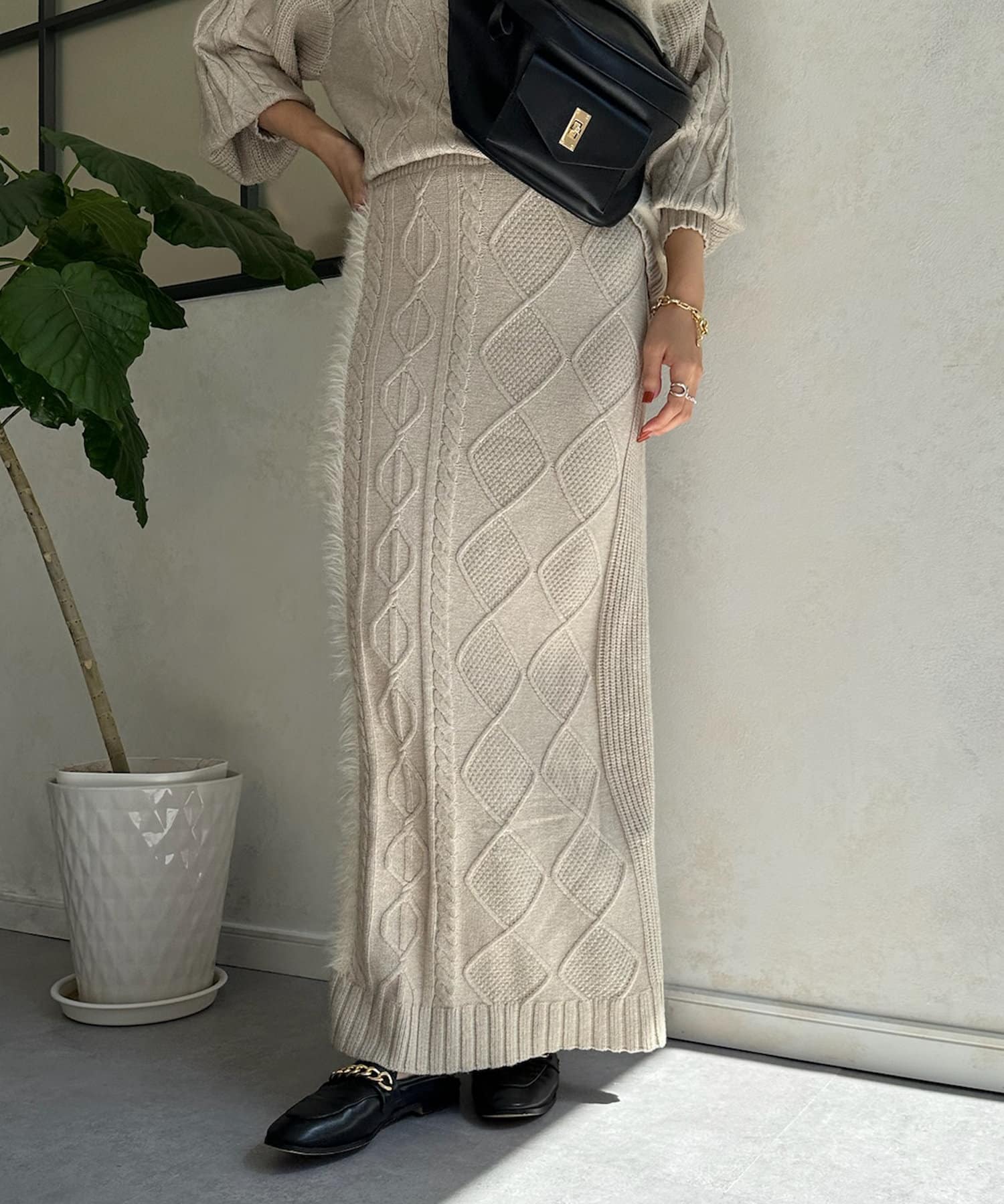 【WEB限定】 ケーブルフェザーニットスカート