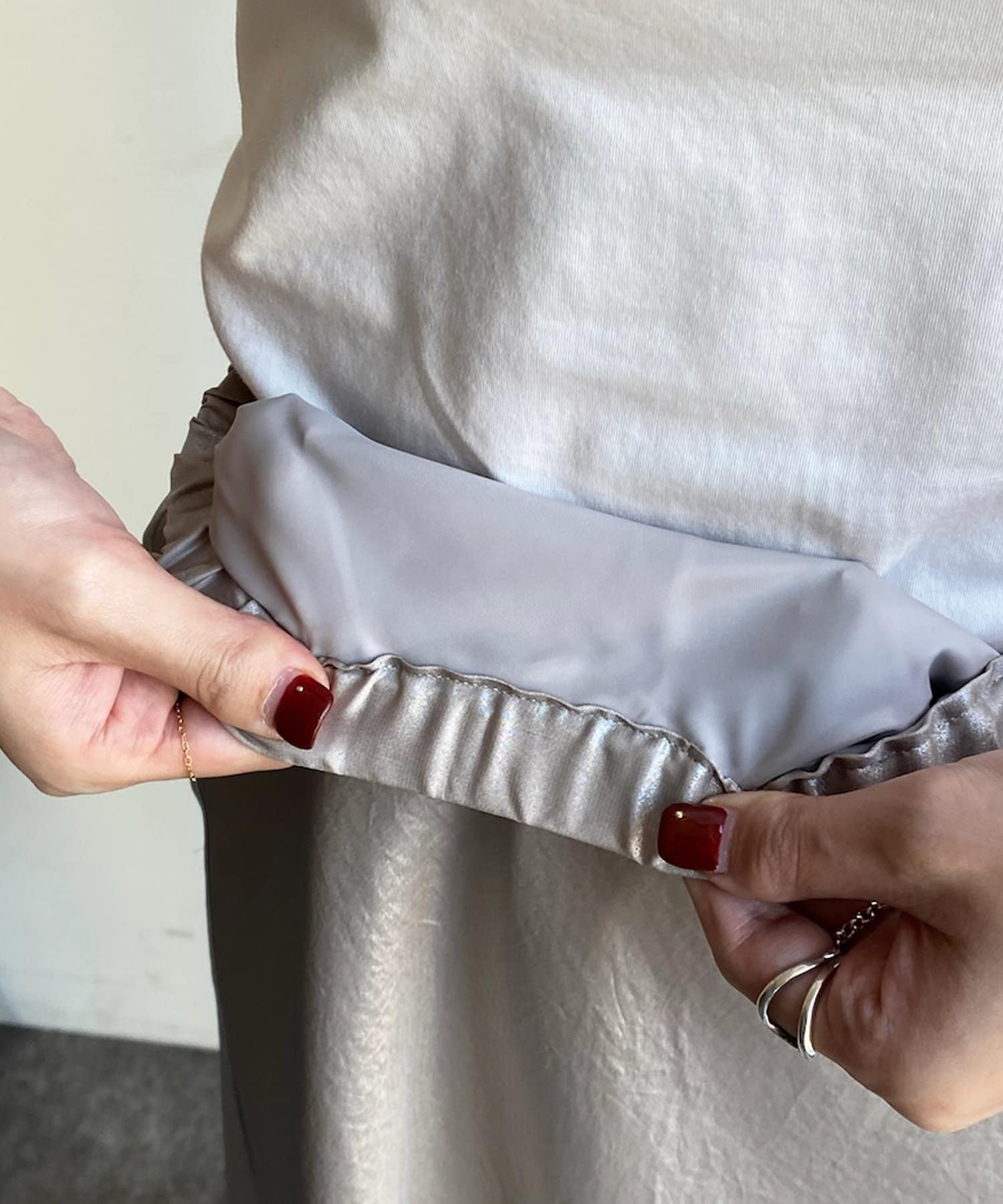 光沢感のある素材とひらっと揺れる軽いシルエット。