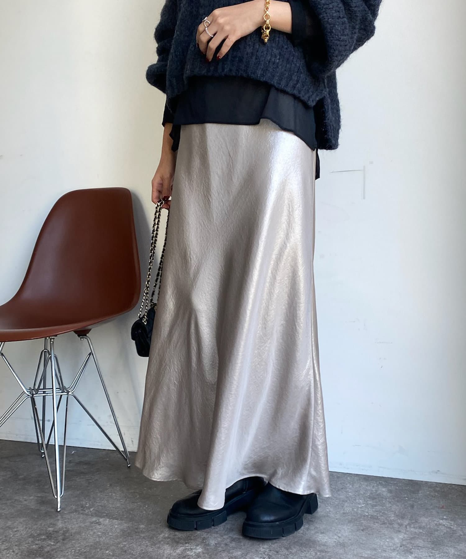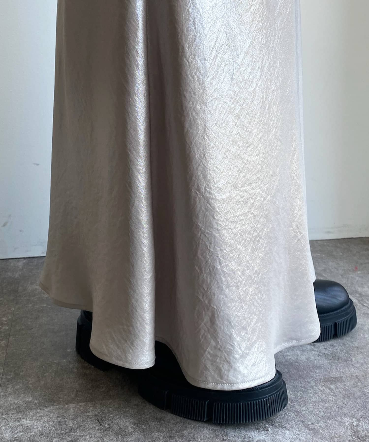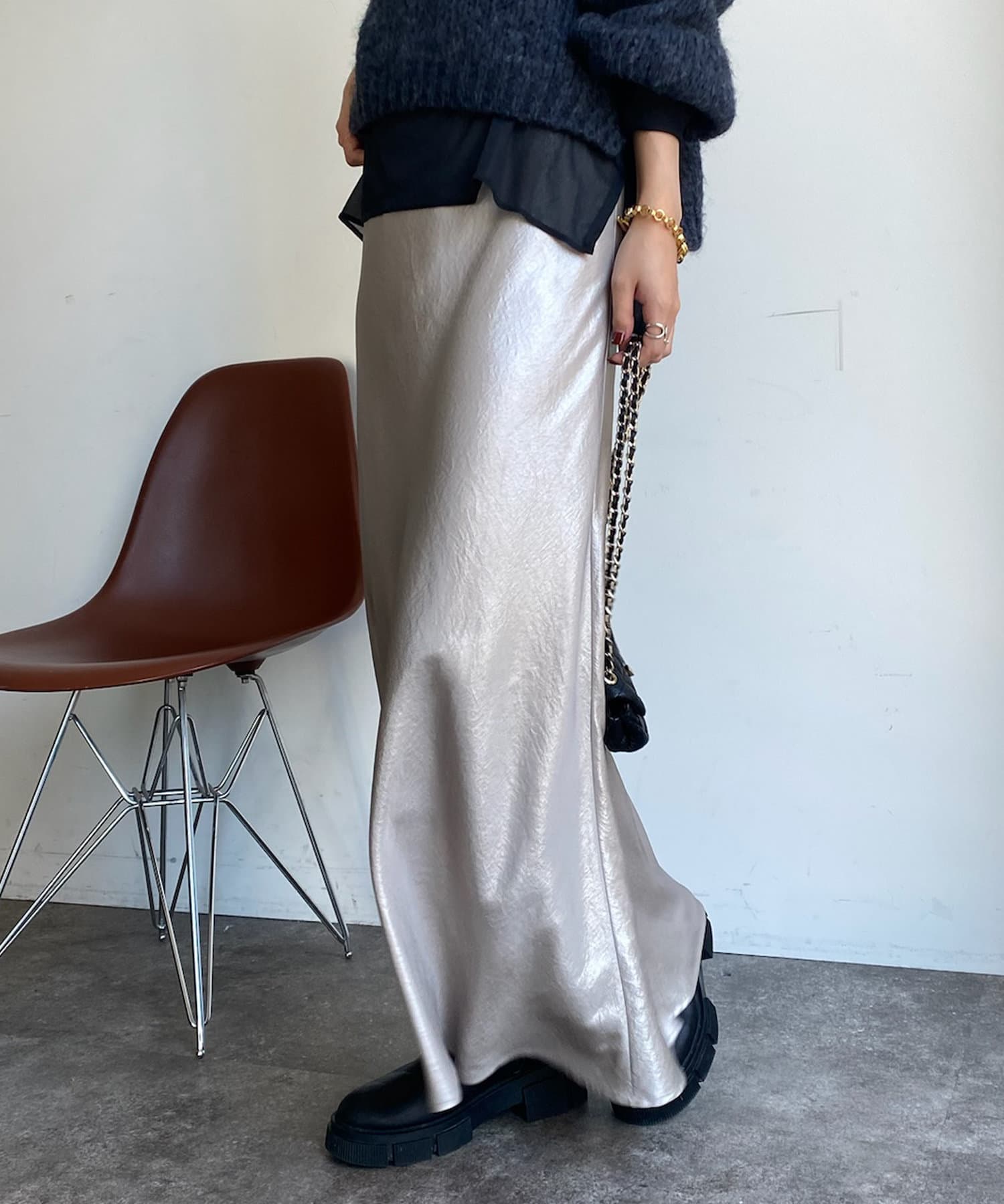 歩くたびにひらひらと揺れる光沢感のある素材がコーディネートをワンランクアップさせてくれます。