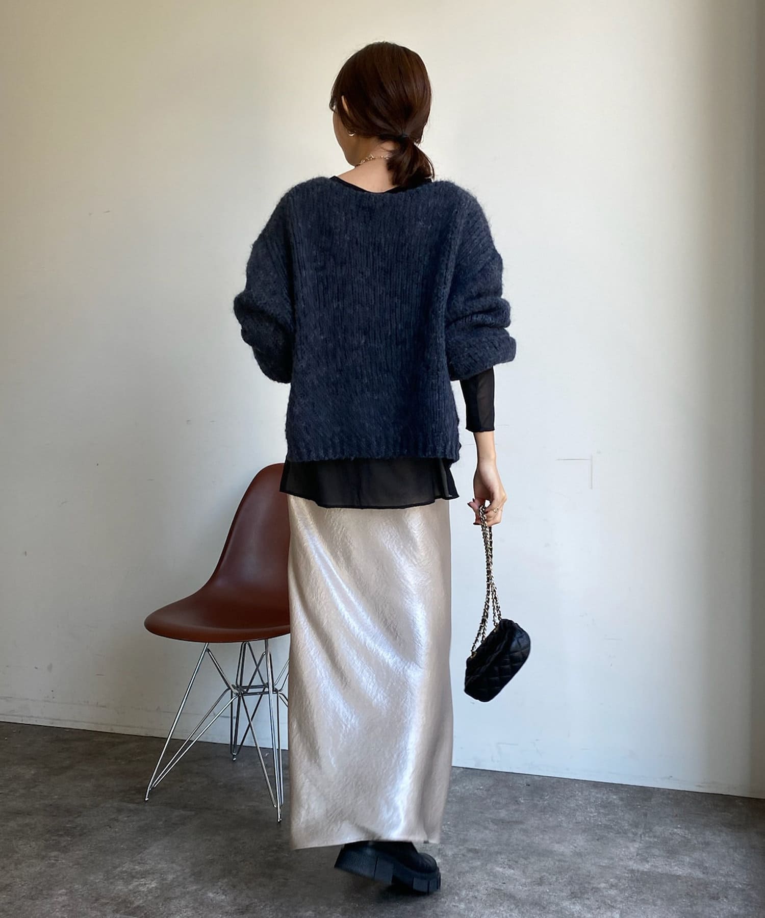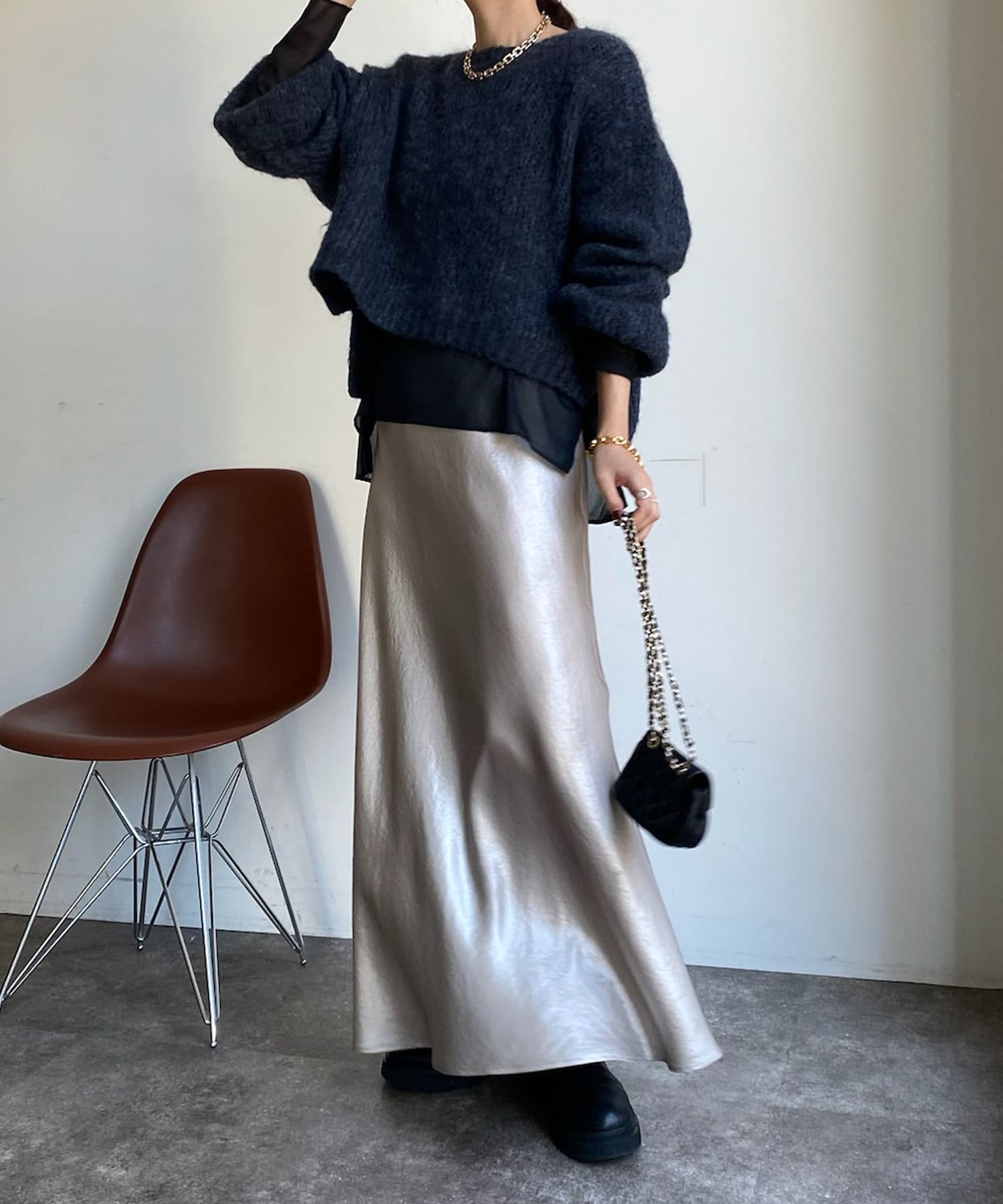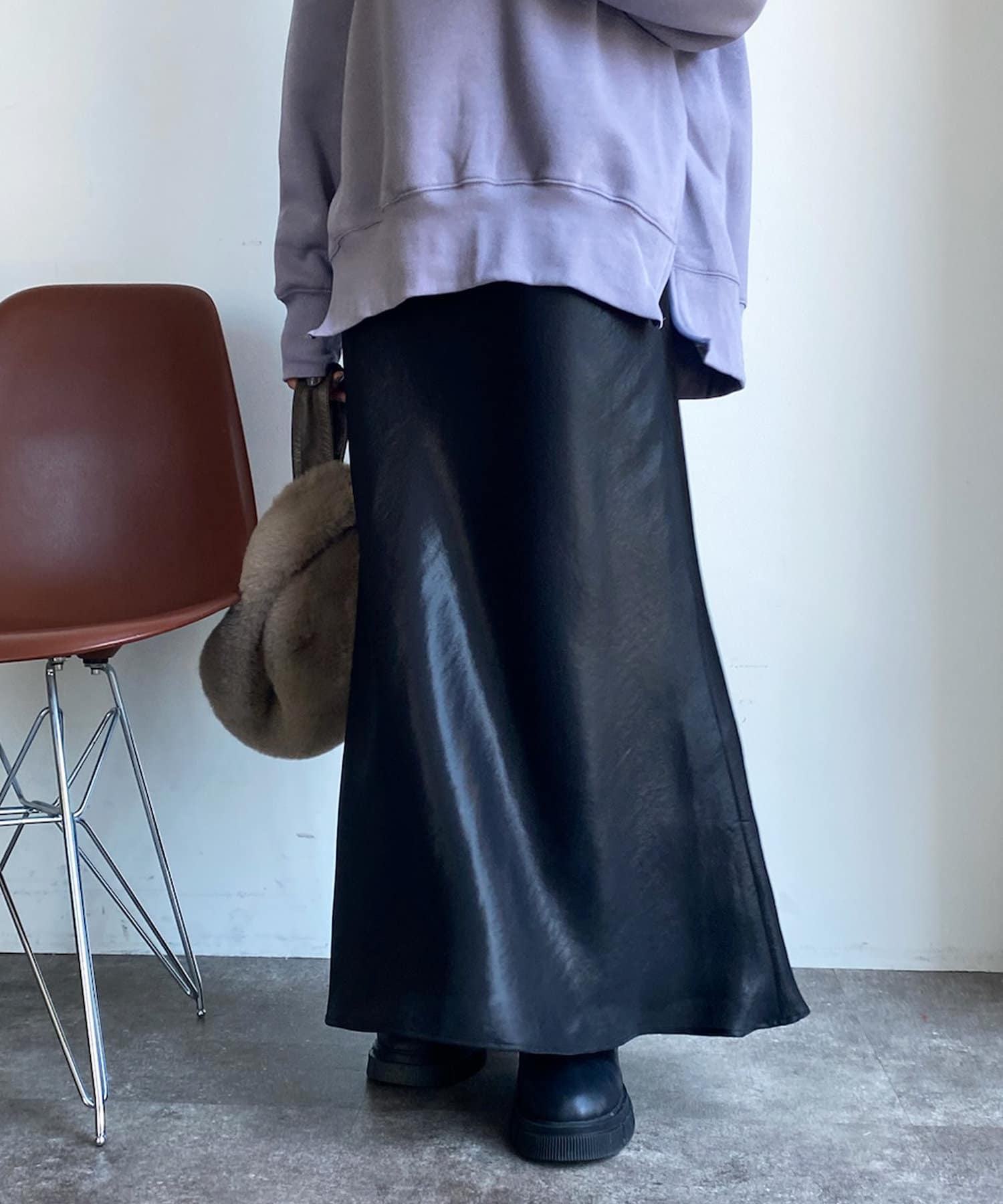 歩くたびにひらひらと揺れる光沢感のある素材がコーディネートをワンランクアップさせてくれます。