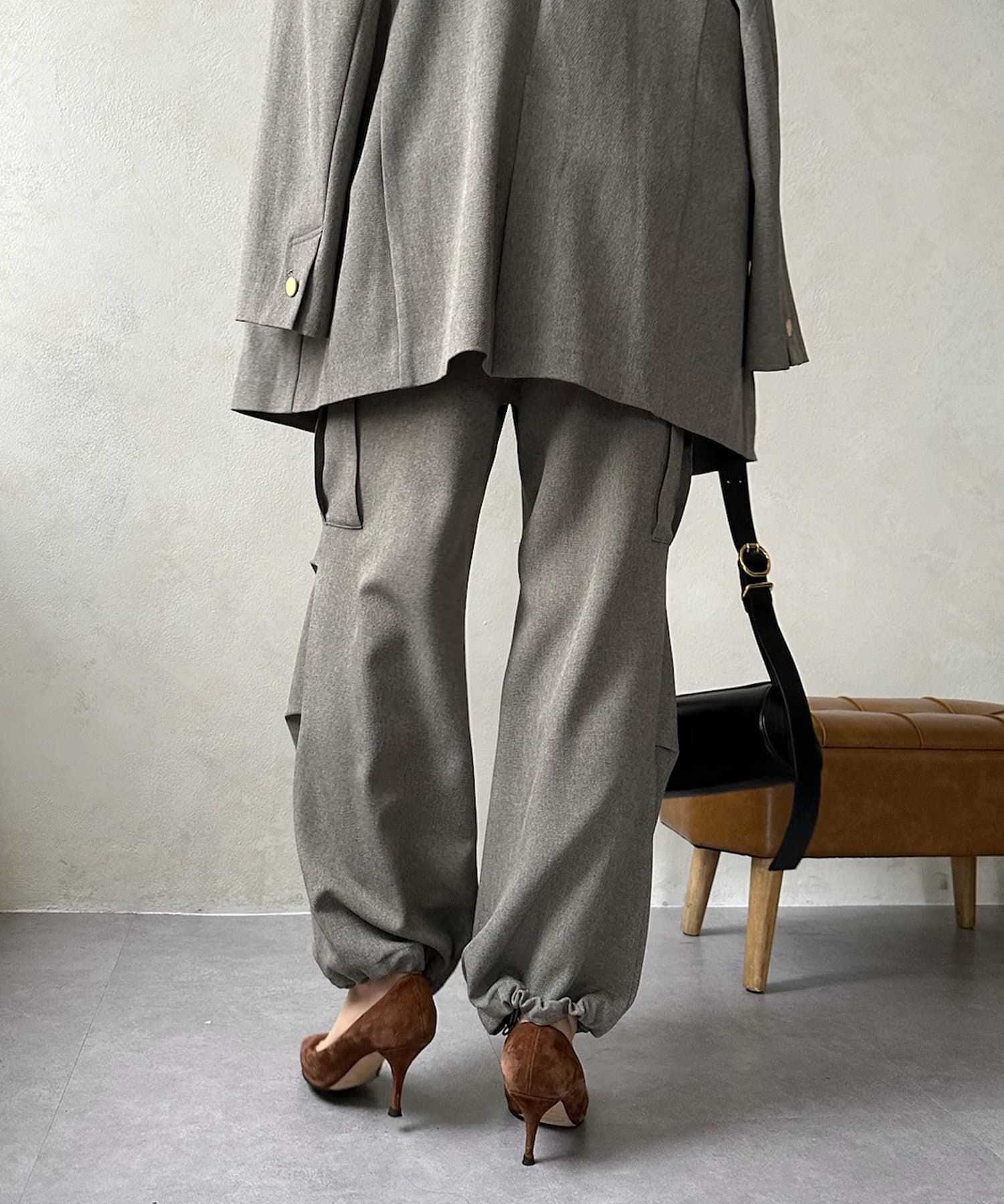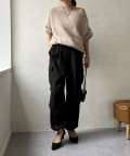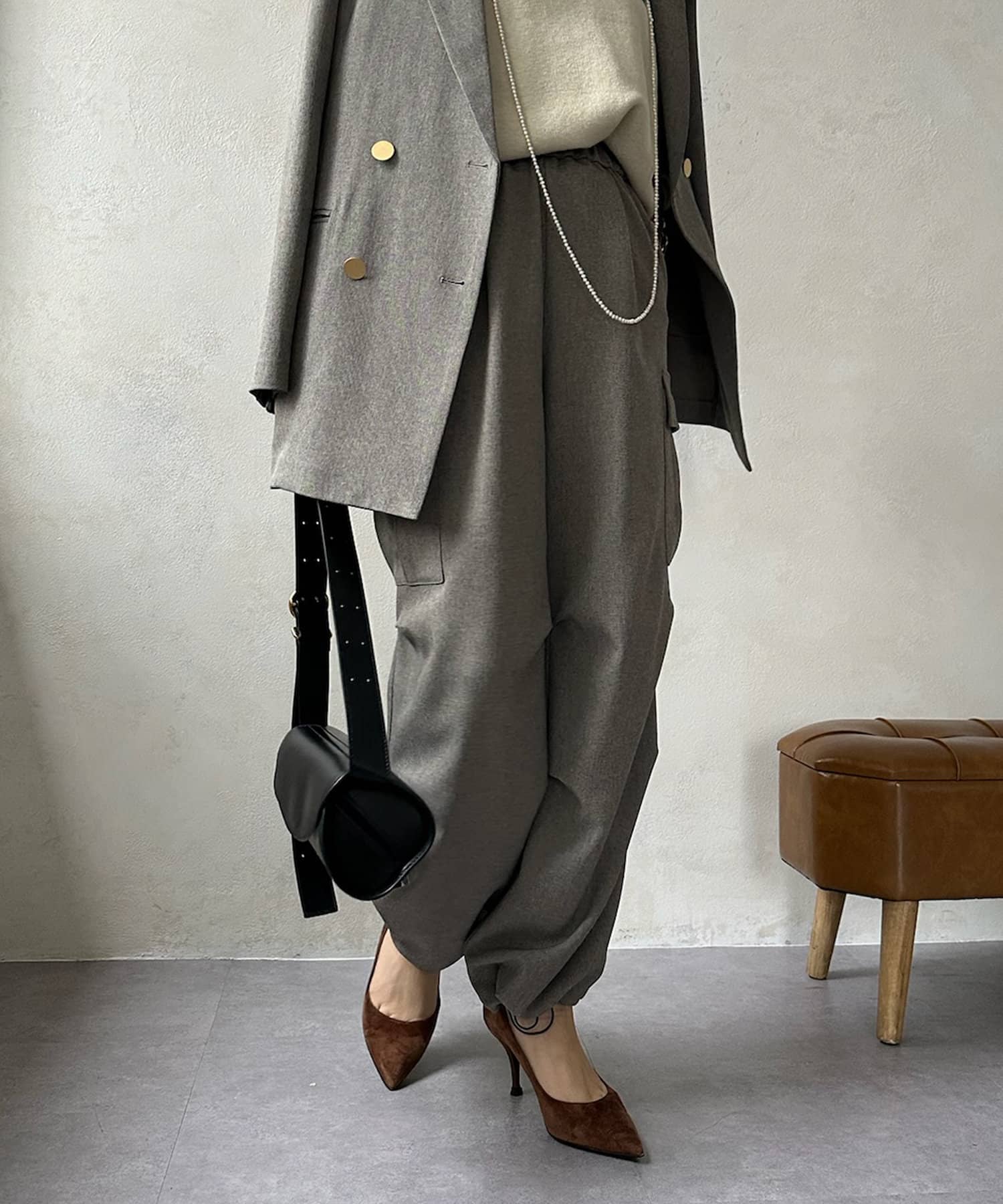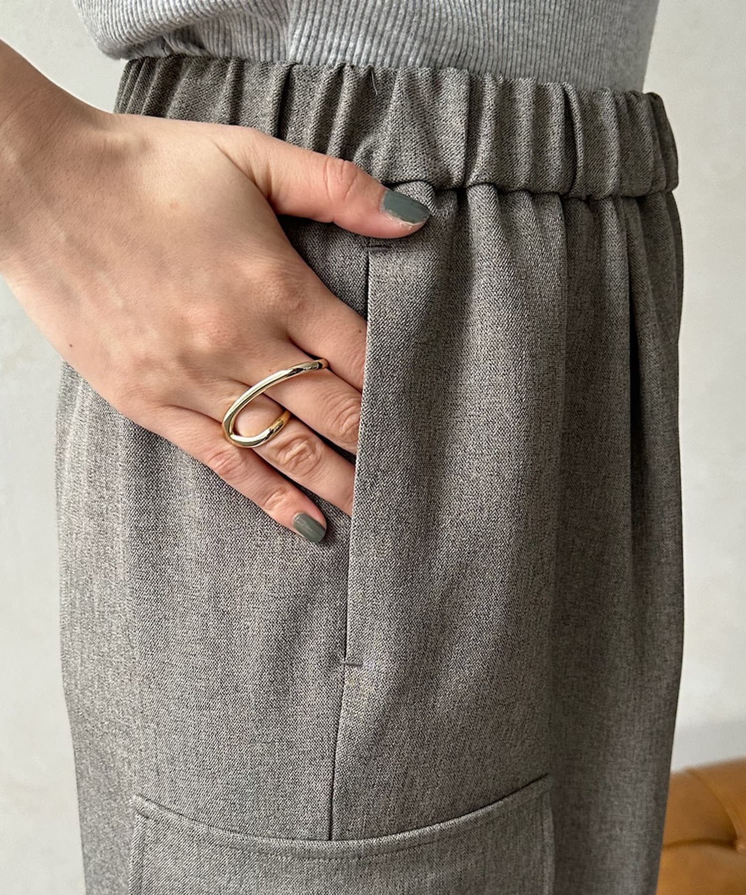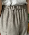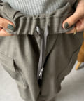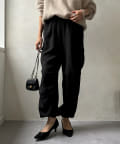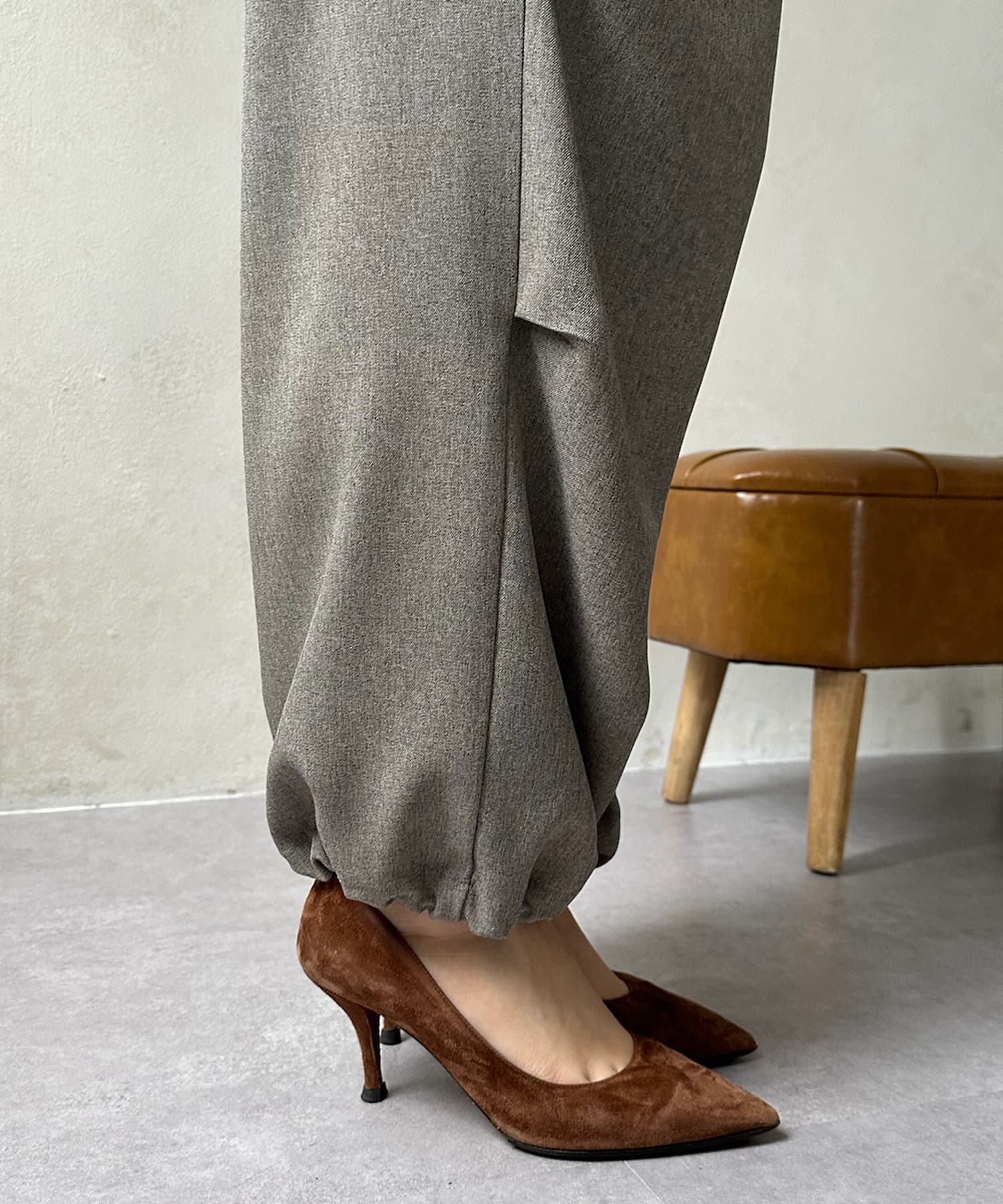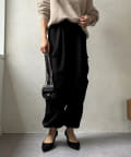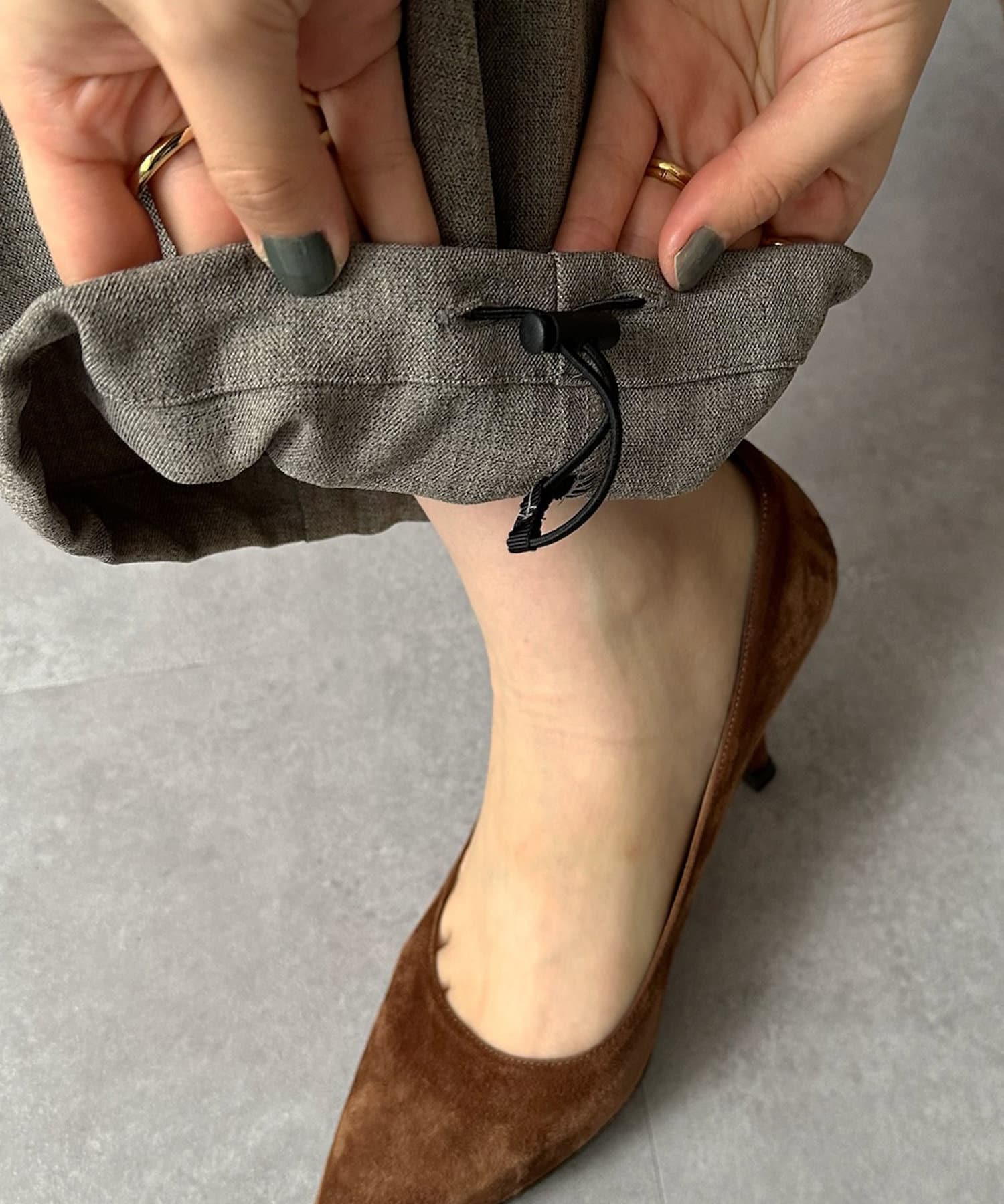 裾はドロストコードをつけているため、お好みの絞り具合で調節していただけます。そして、ウエストはオールゴム仕様のため、とっても楽々!