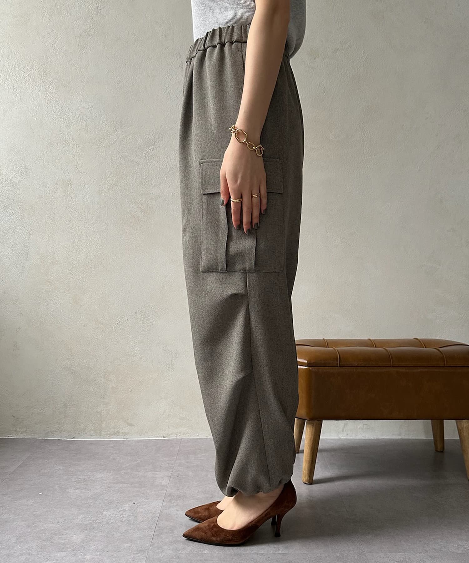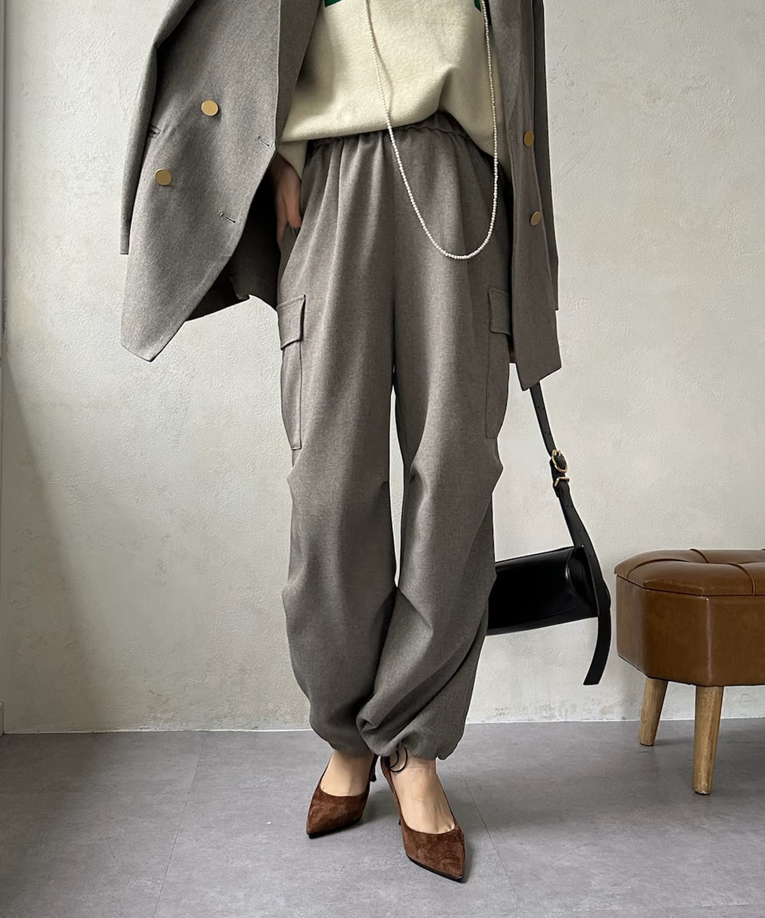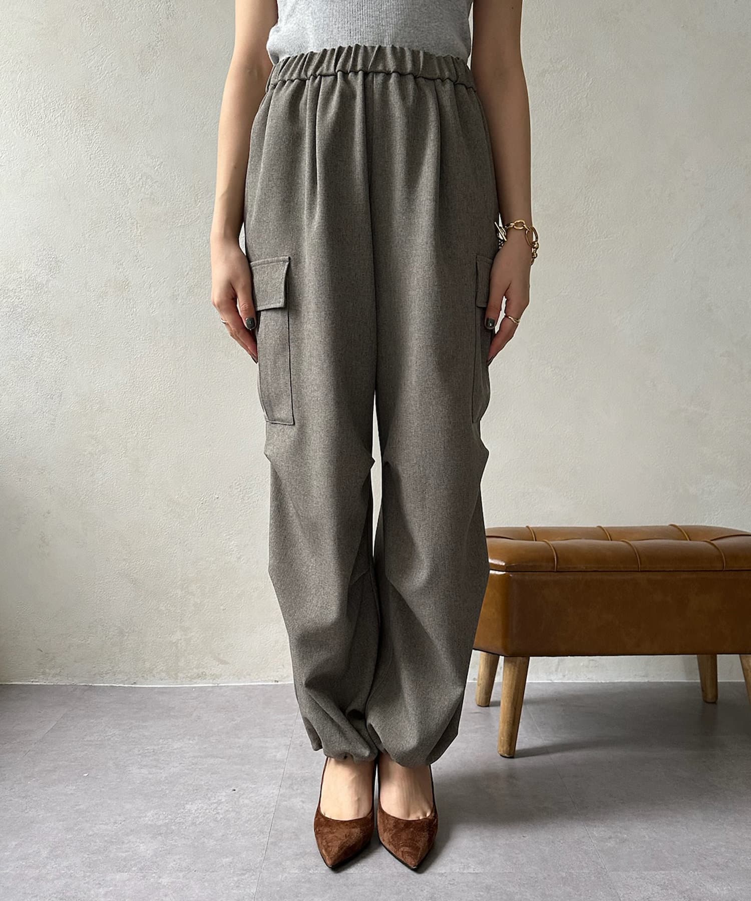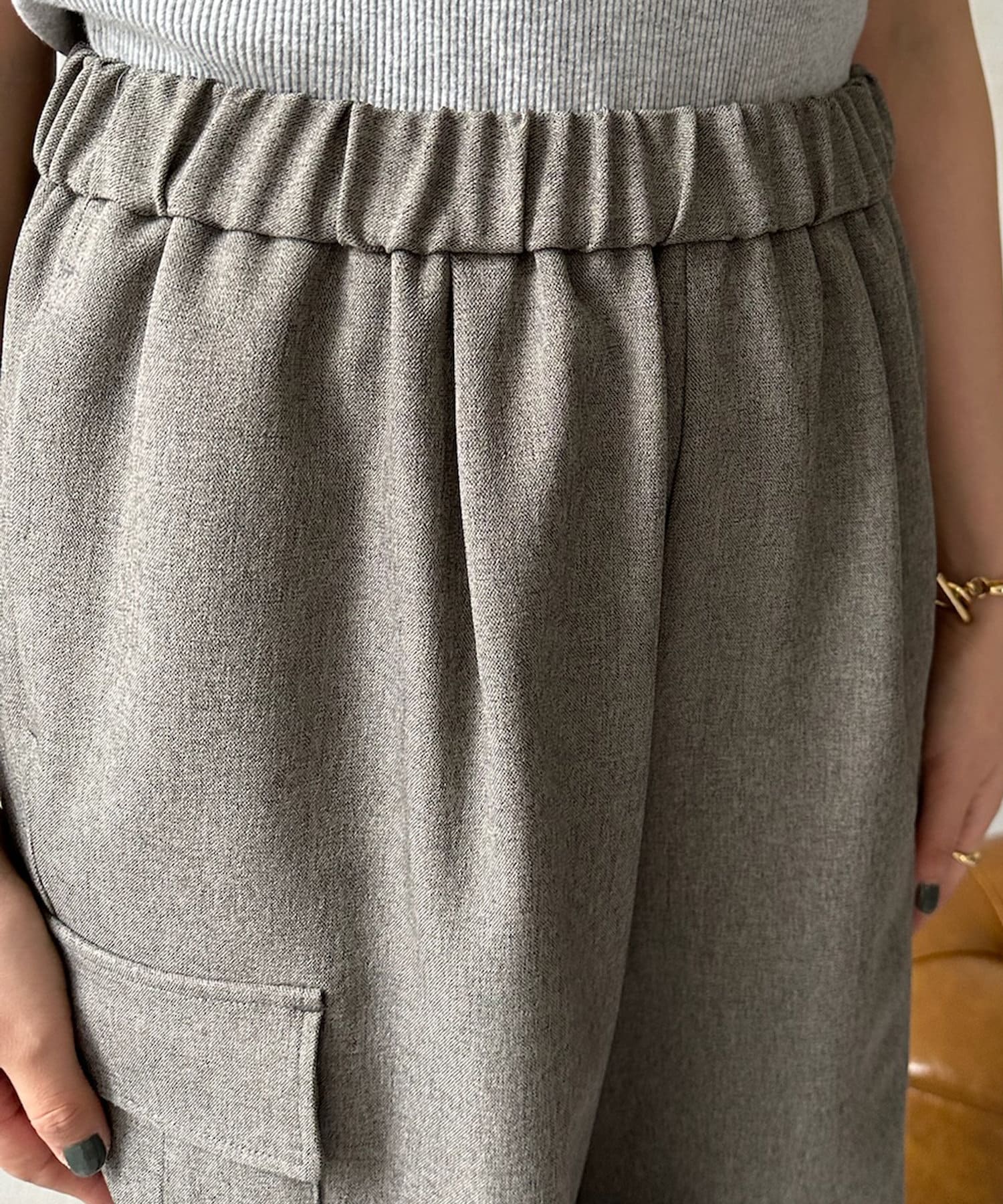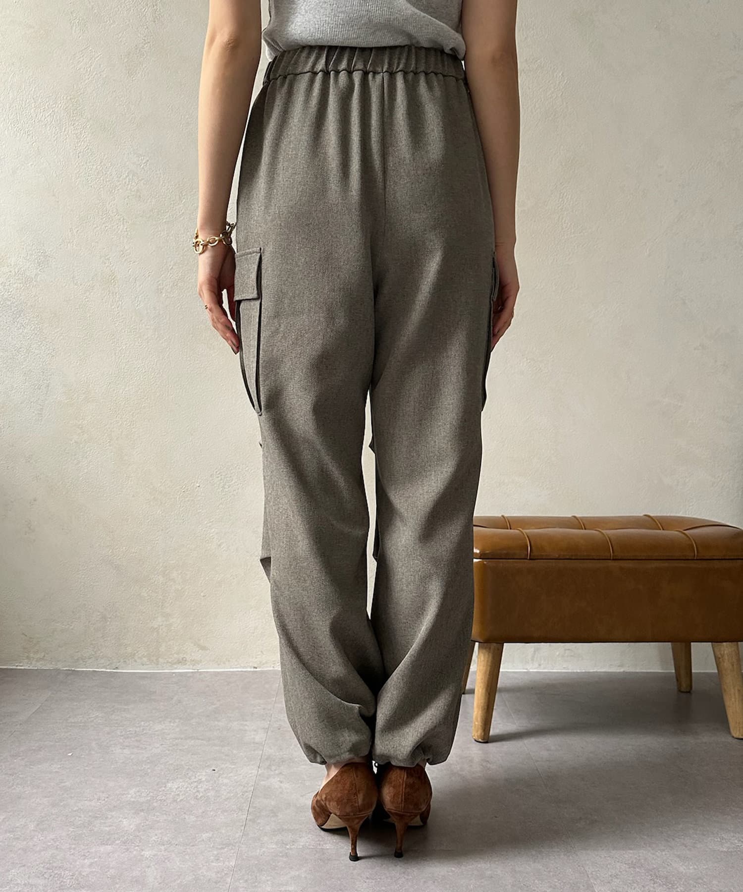 裾はドロストコードをつけているため、お好みの絞り具合で調節していただけます。そして、ウエストはオールゴム仕様のため、とっても楽々!