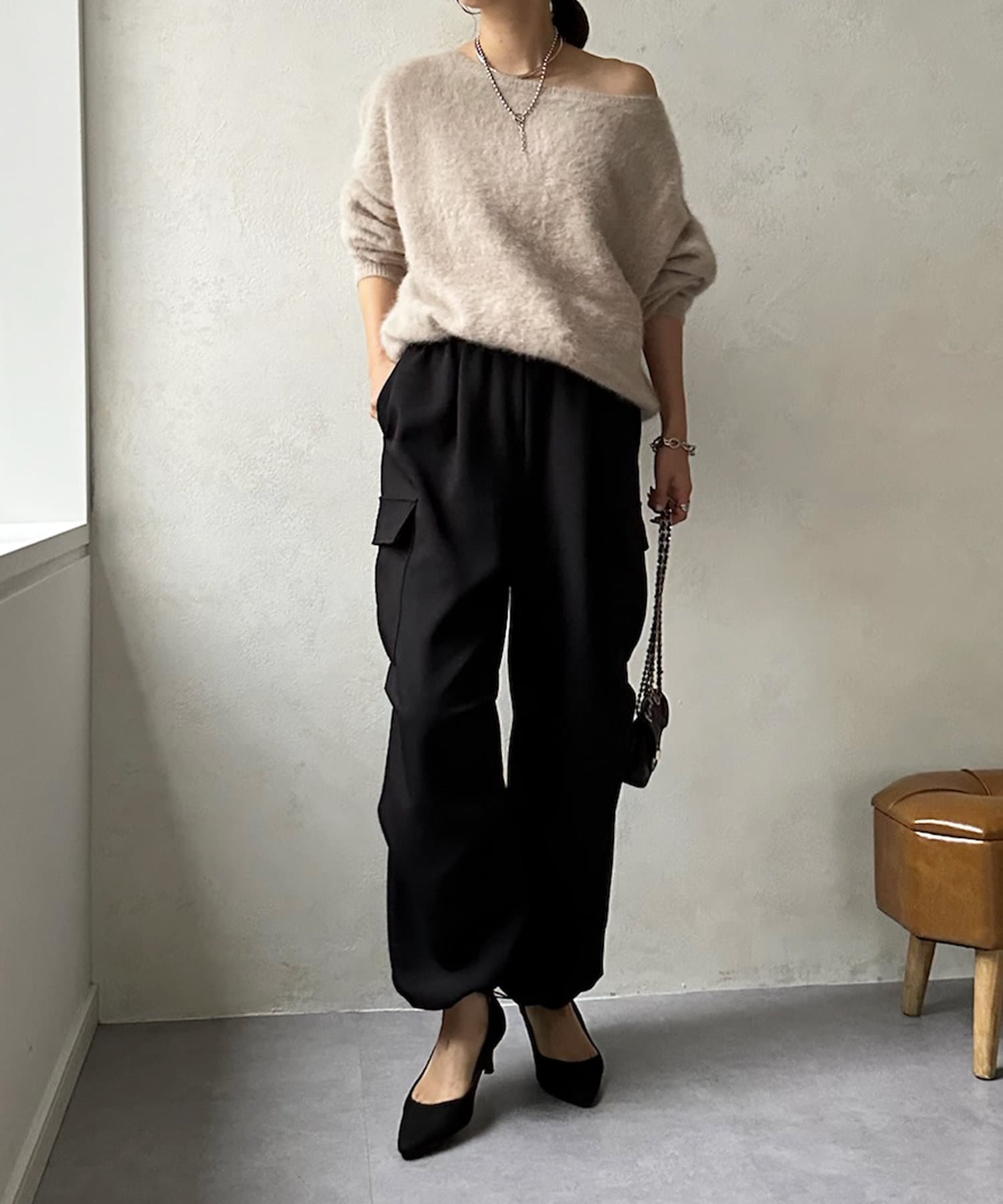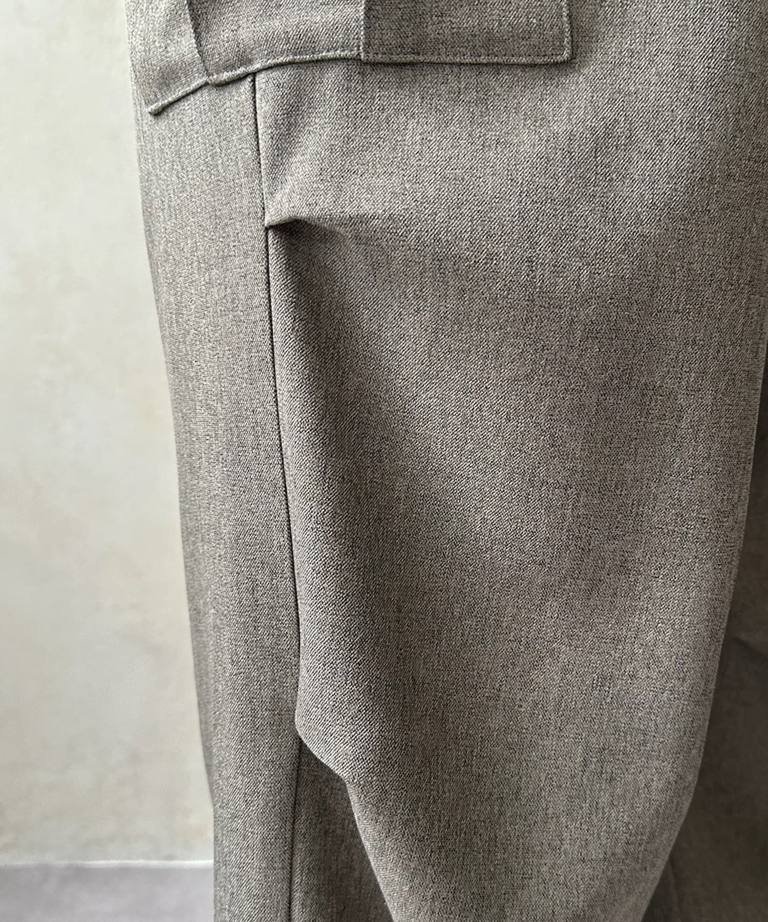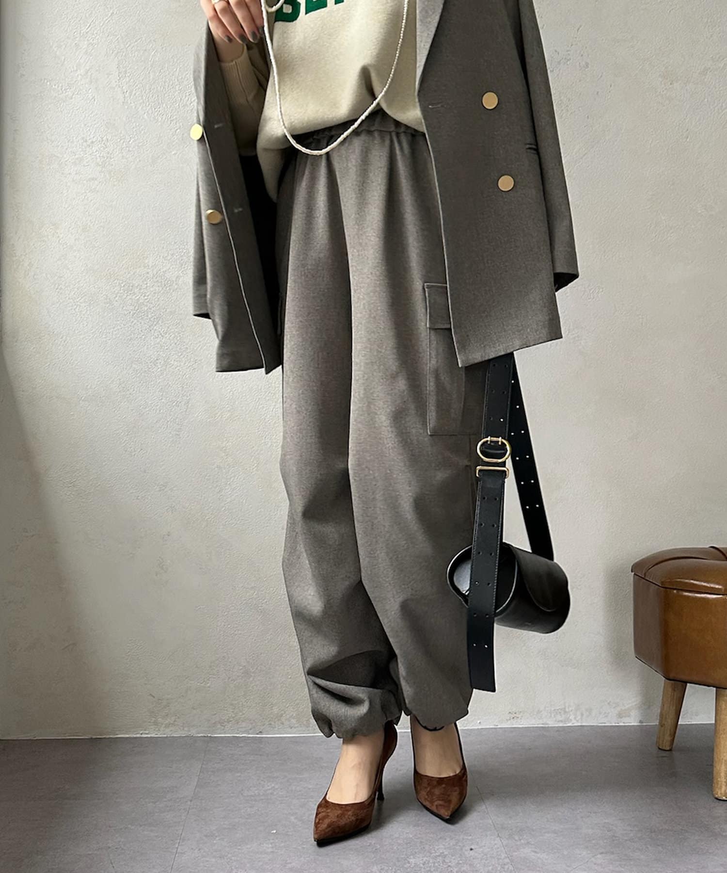 カーゴパンツのワークテイストを取り入れながらも、シャンブレーの素材を使用することで、カジュアルになりすぎない1着に。