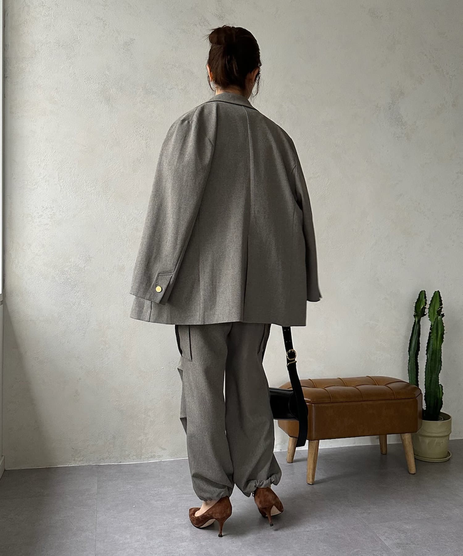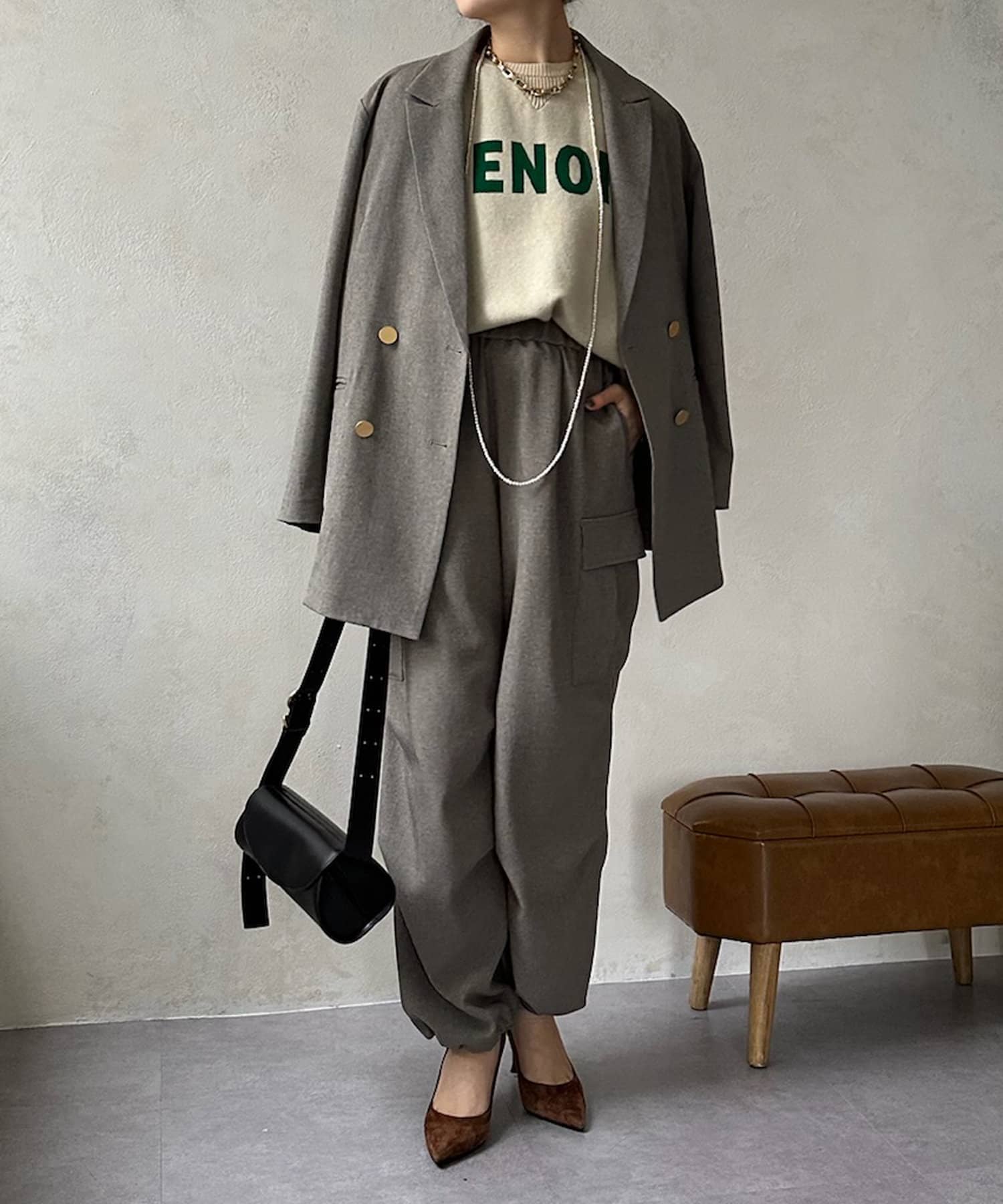 同素材のシャンブレーダブルジャケットとのセットアップスタイルも素敵に決まりますよ!