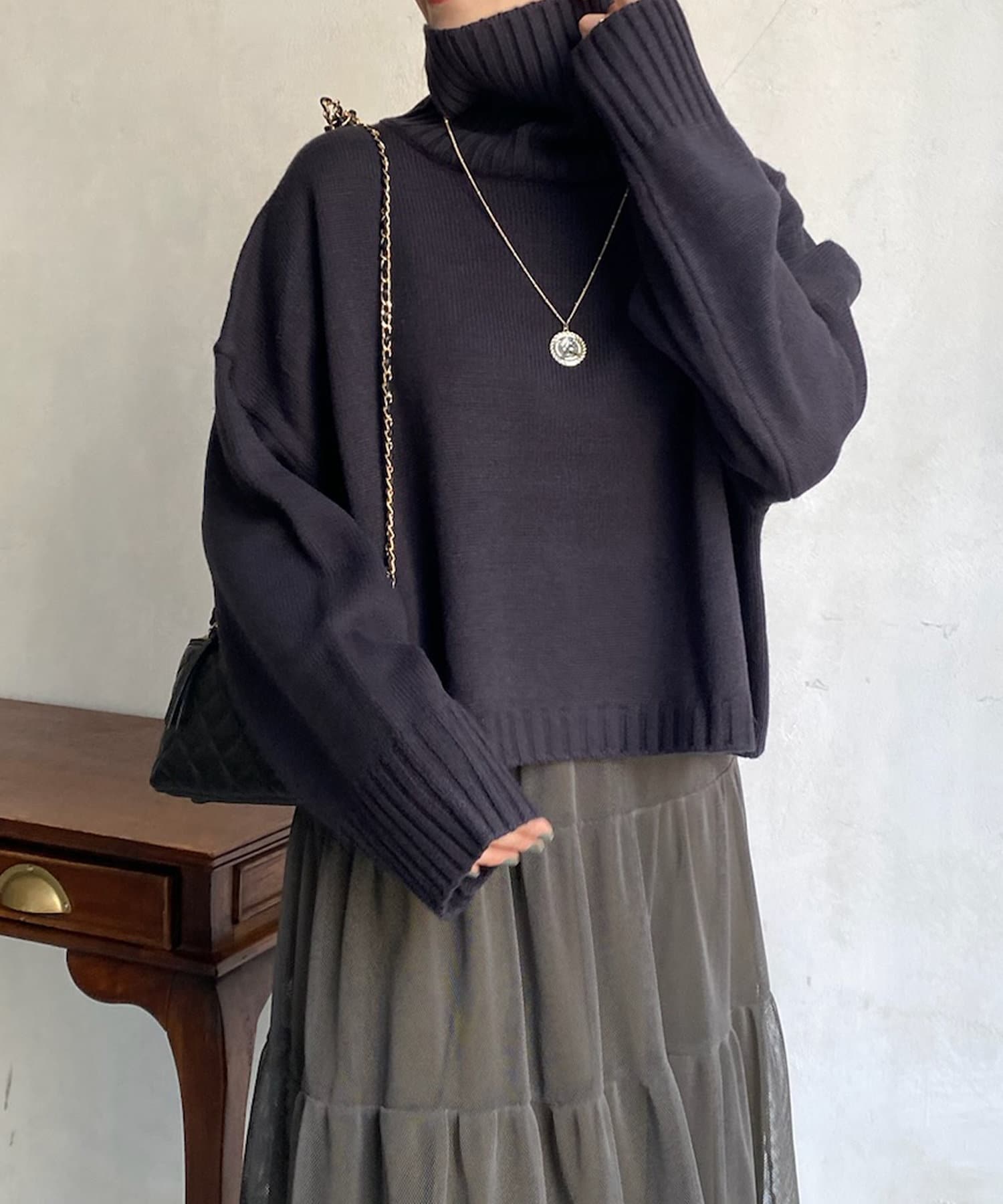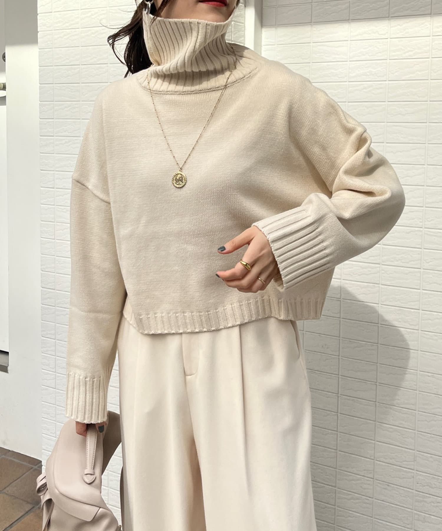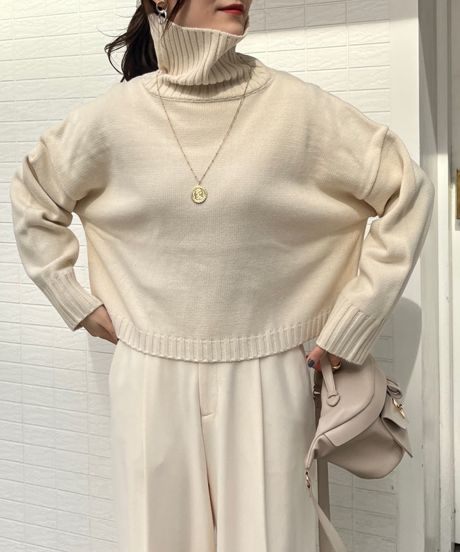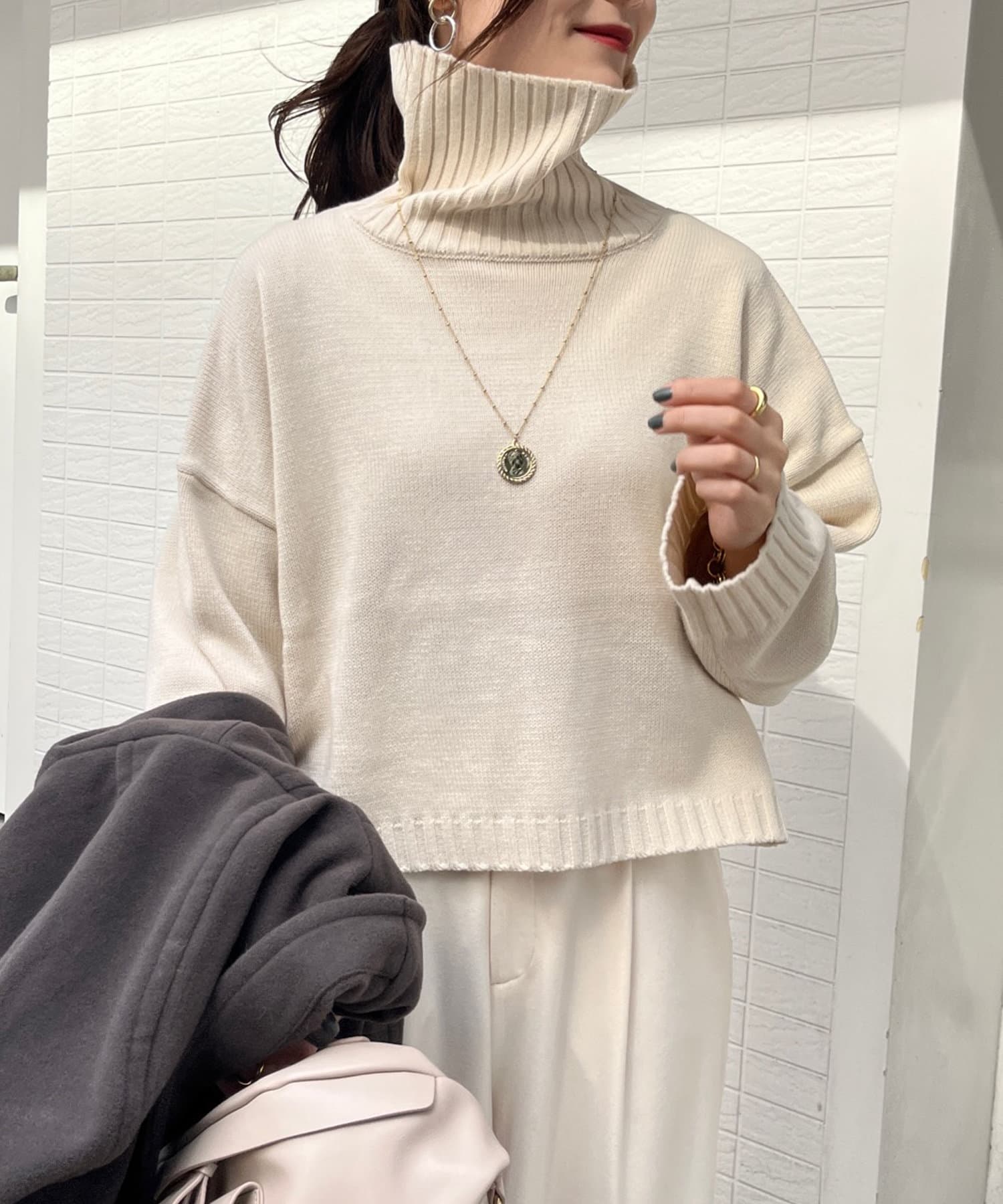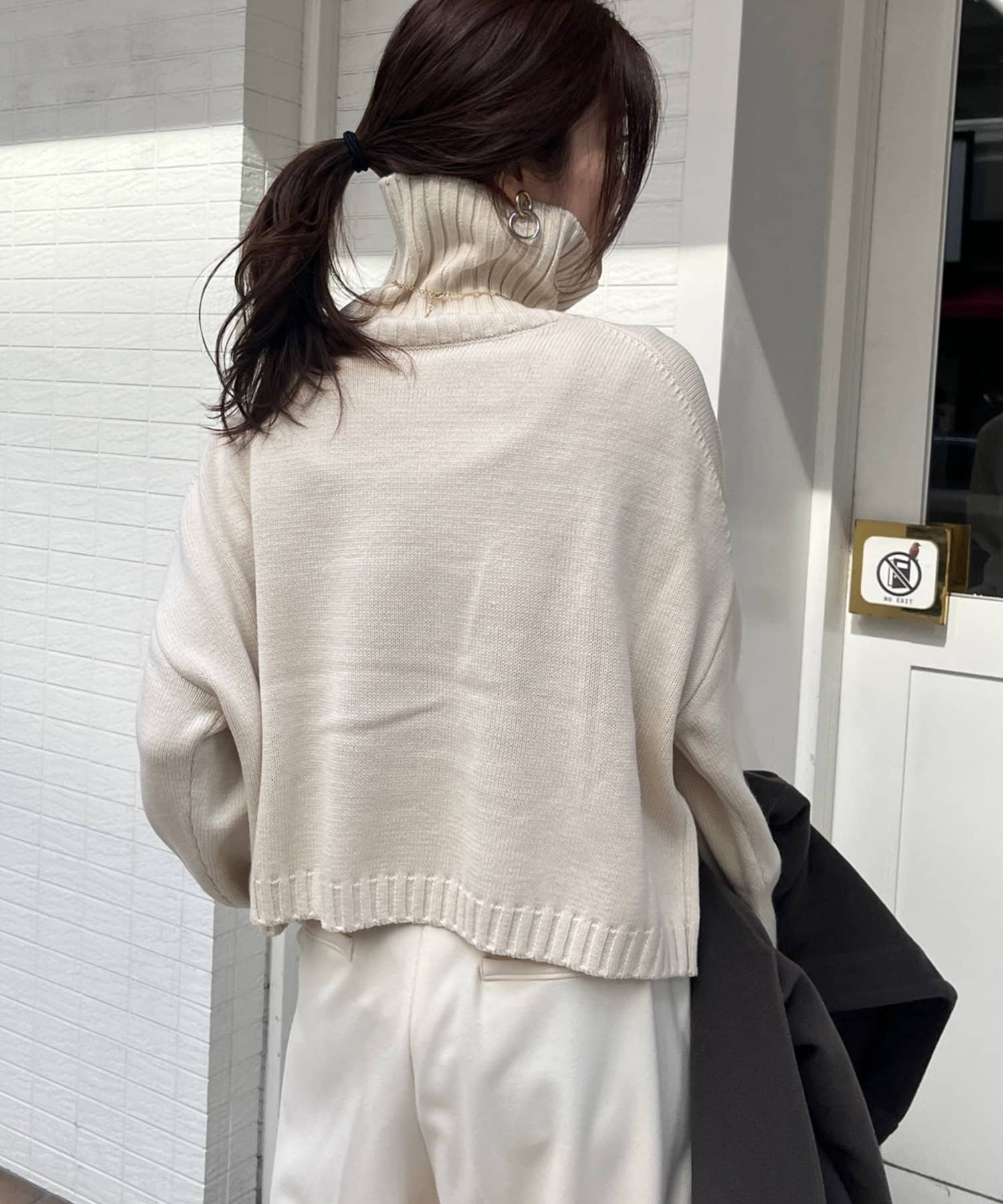 サイズ感や着た時のシルエットに拘ったタートルネックのニット。