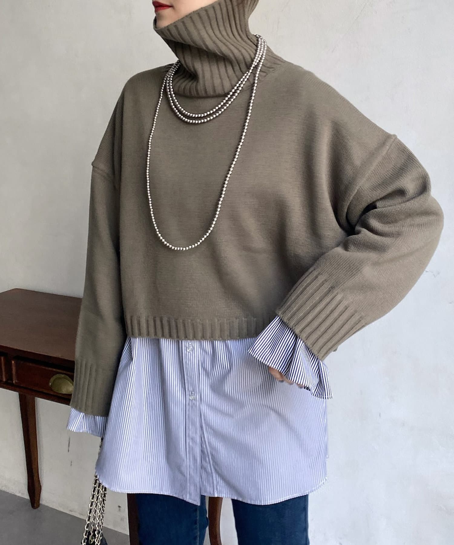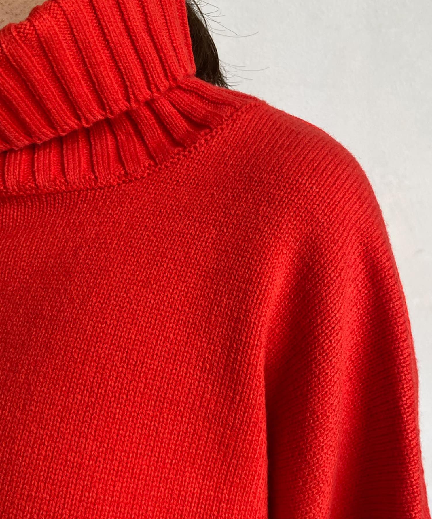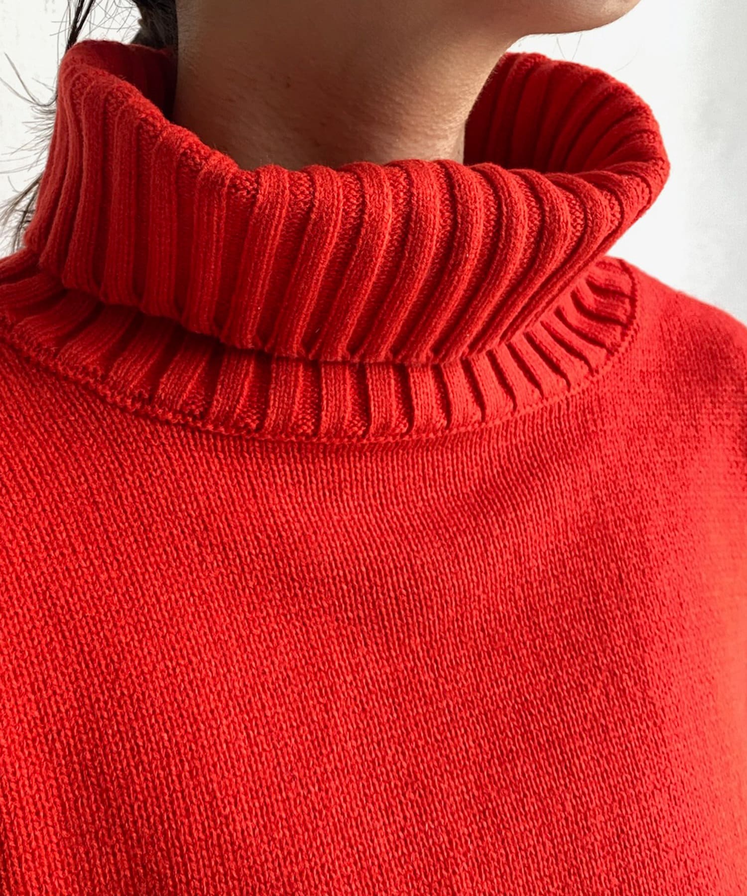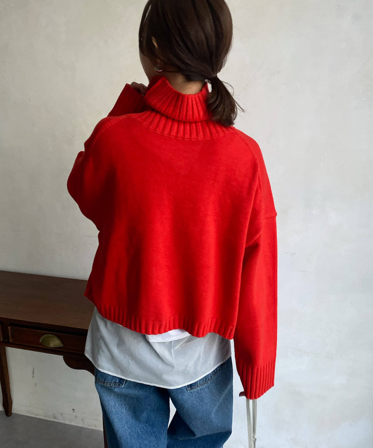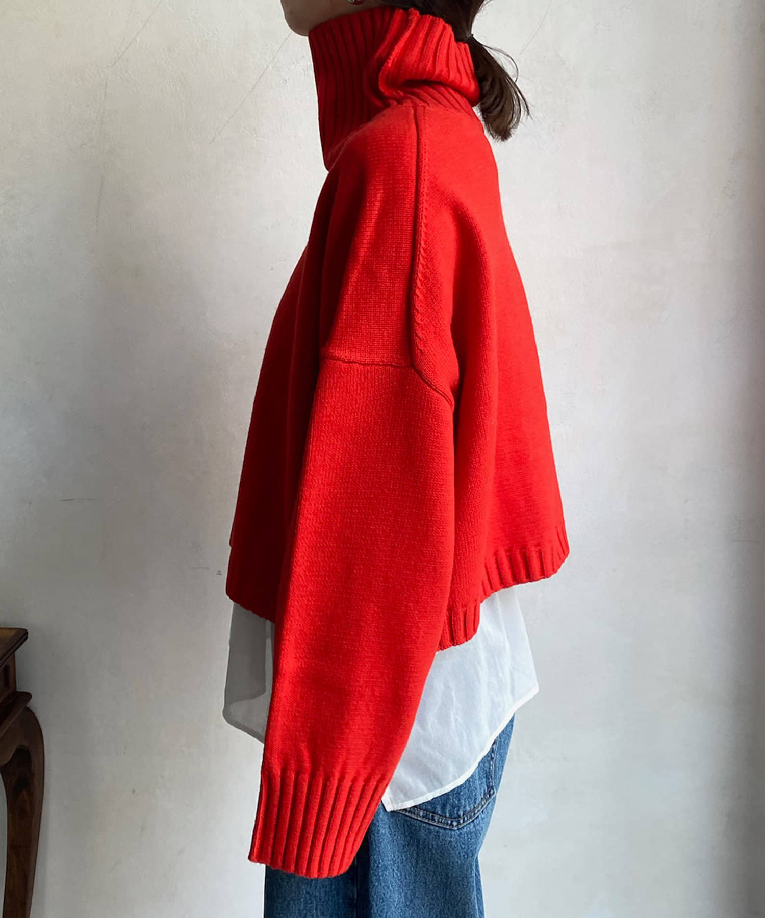 サイズ感や着た時のシルエットに拘ったタートルネックのニット。