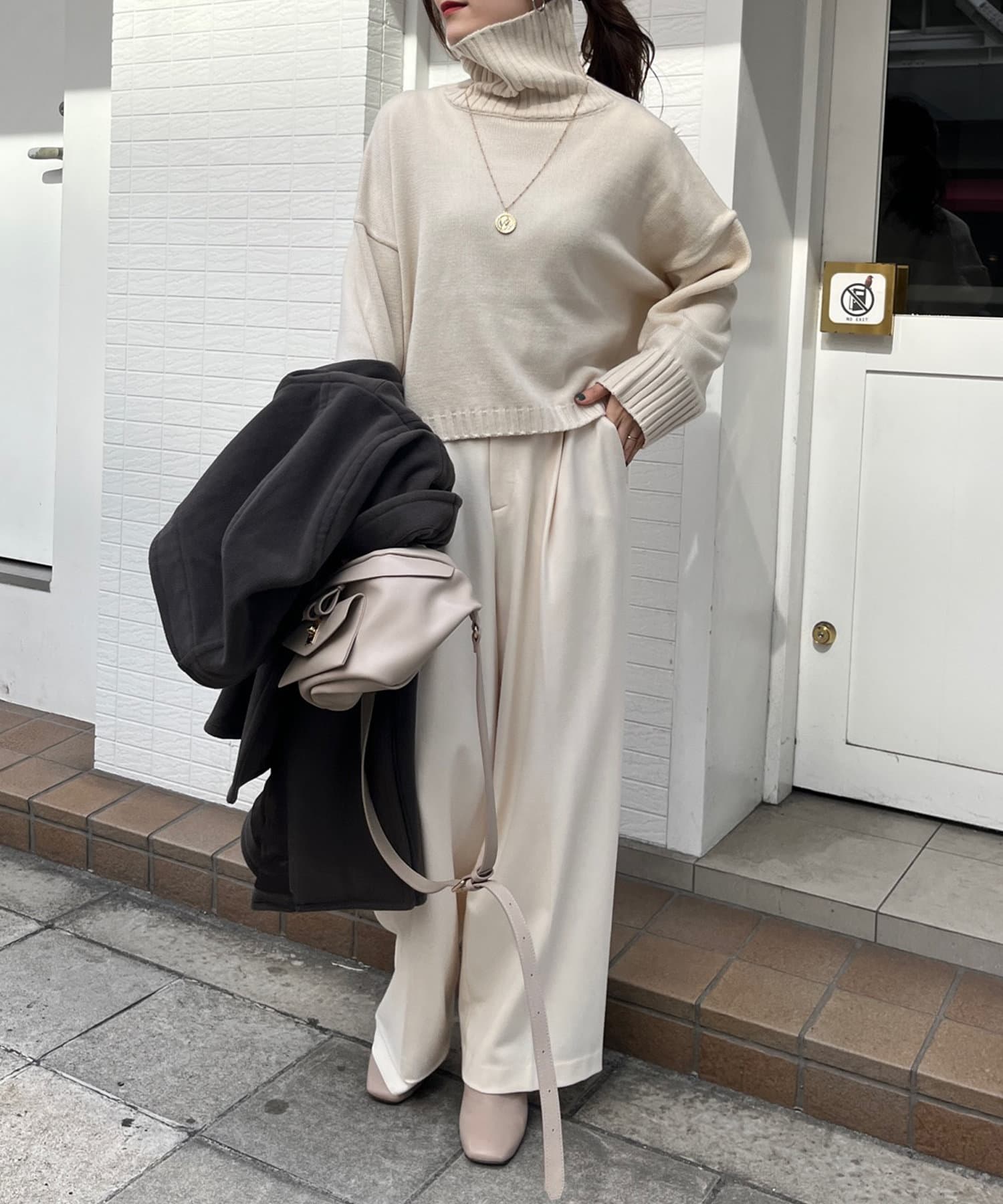 幅広いシルエットのボトムとマッチしてくれるので、この冬の着回しに活躍してくれること間違いなしです!