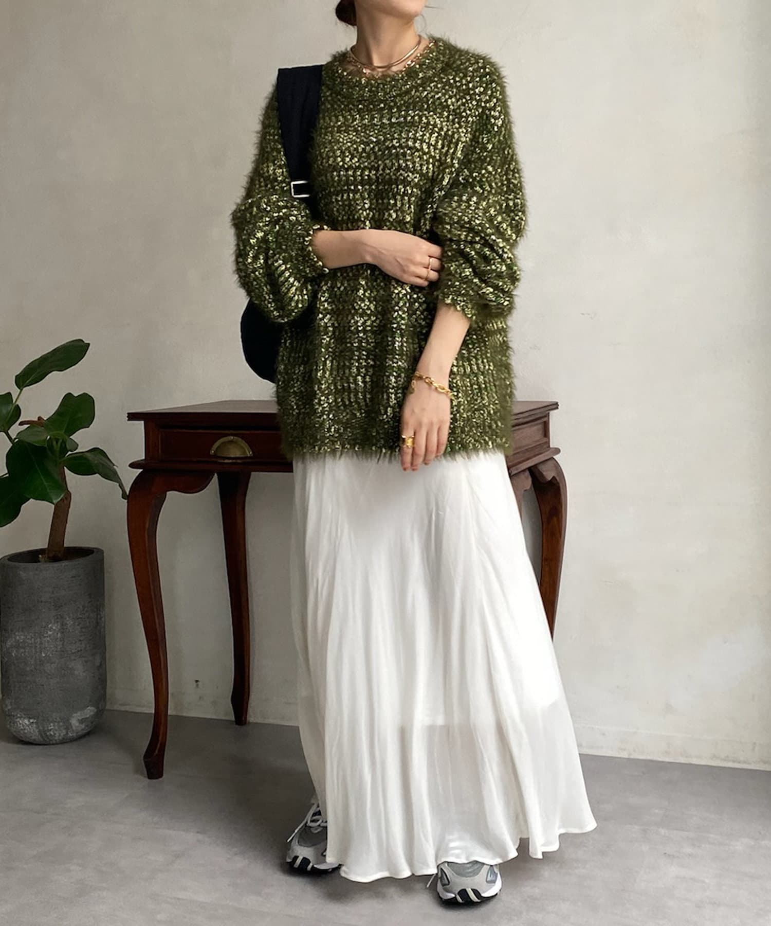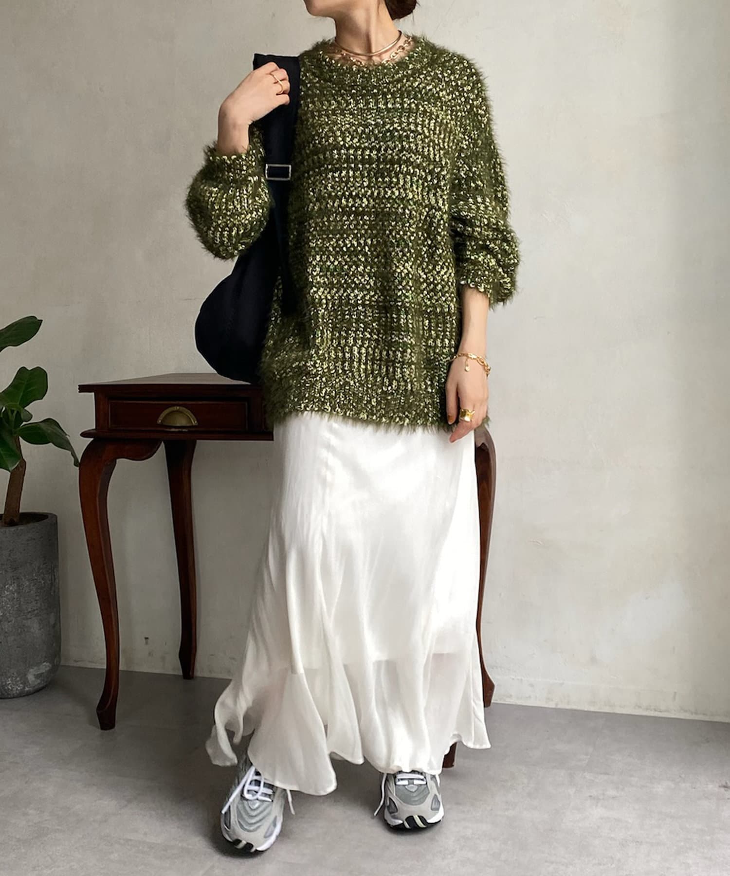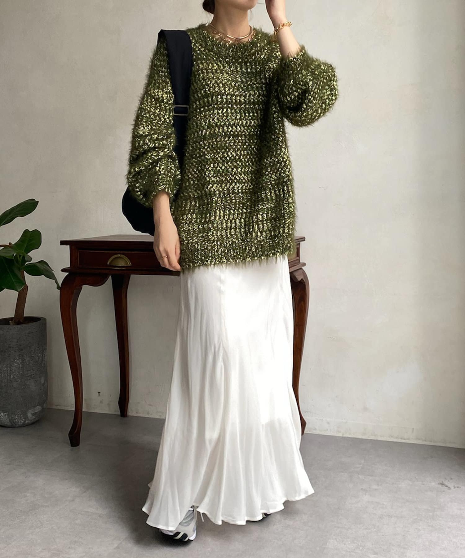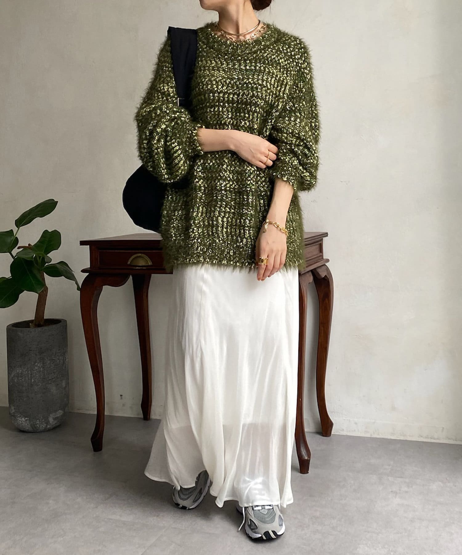 ファンシーヤーン素材を使ったふわふわシャギーニット!