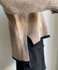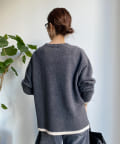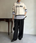 袖口と裾が配色デザインになっており、1枚で存在感のあるロゴのニットプルオーバーが登場!