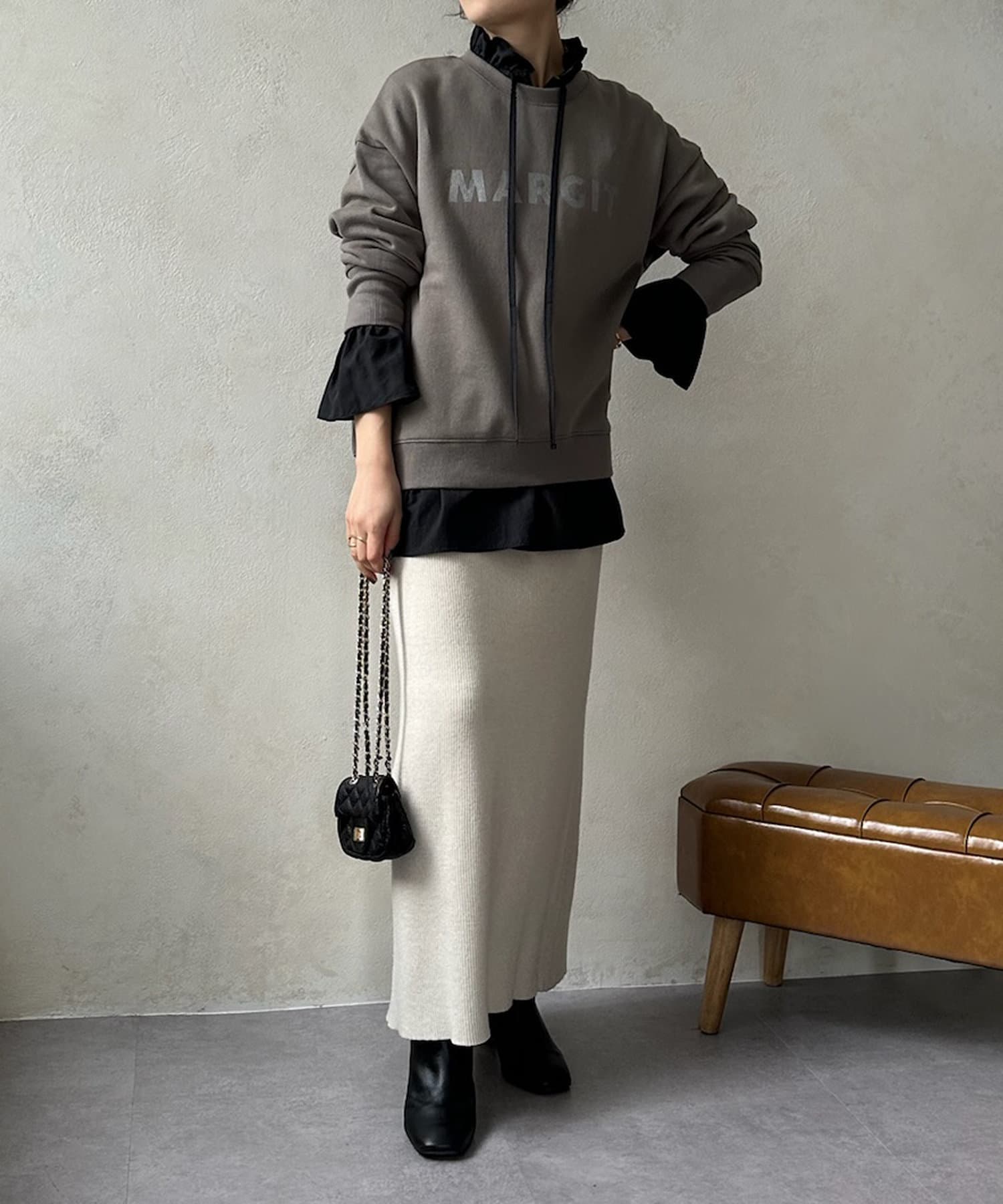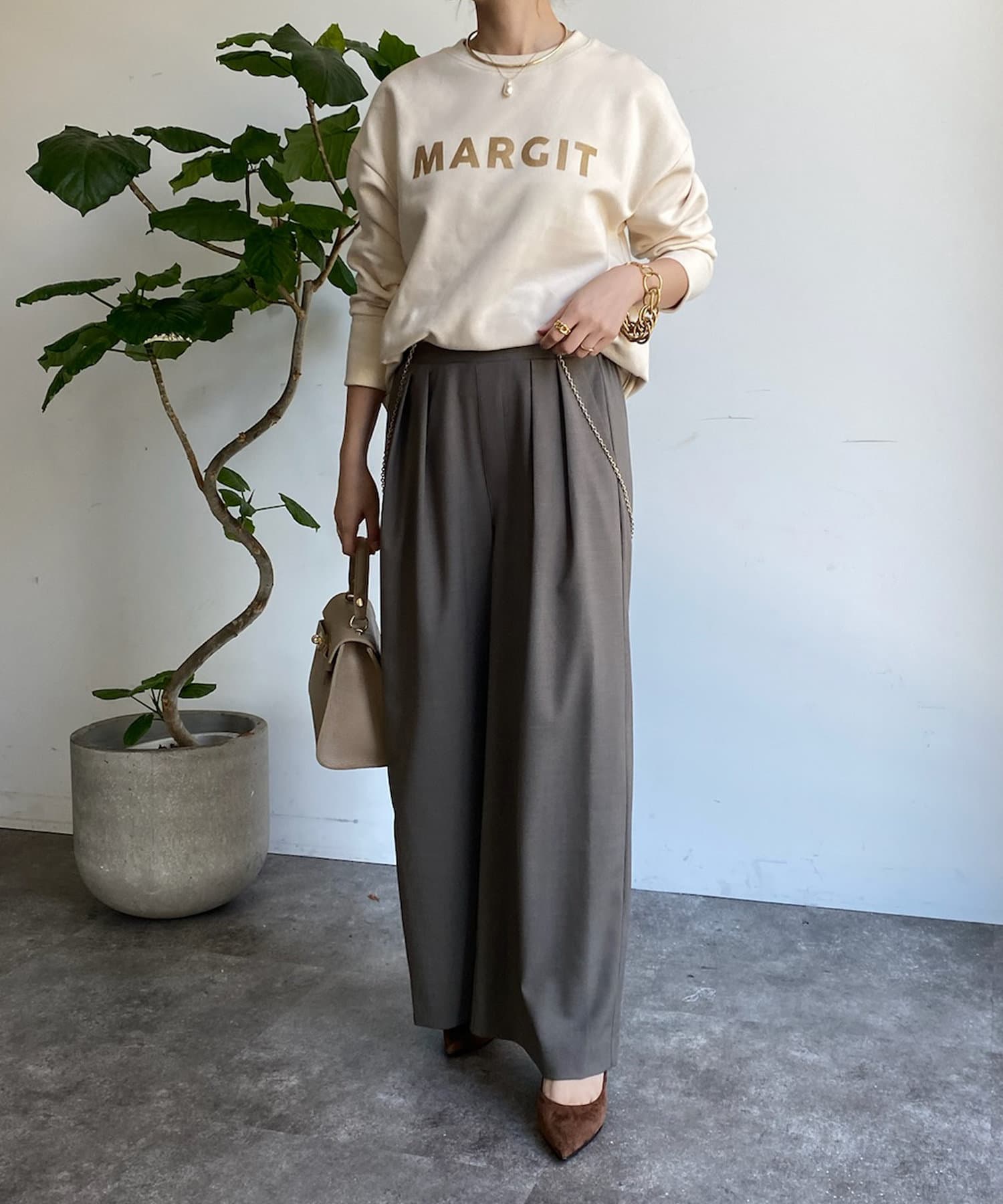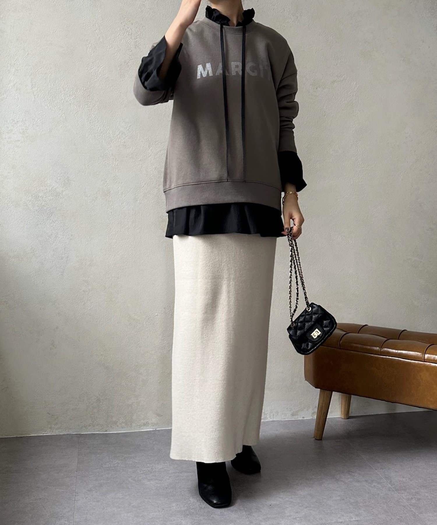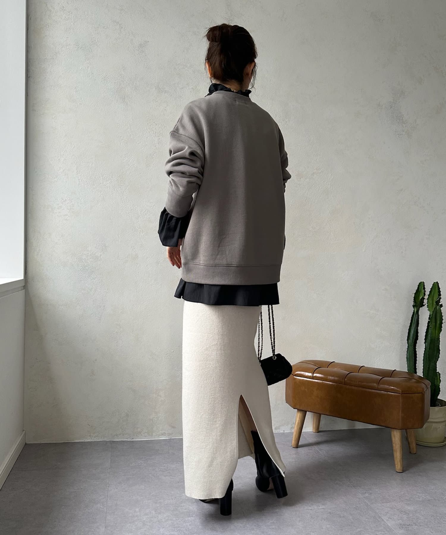オーバーサイズすぎないボディはボリューム感のあるボトムとの相性もばっちりです。