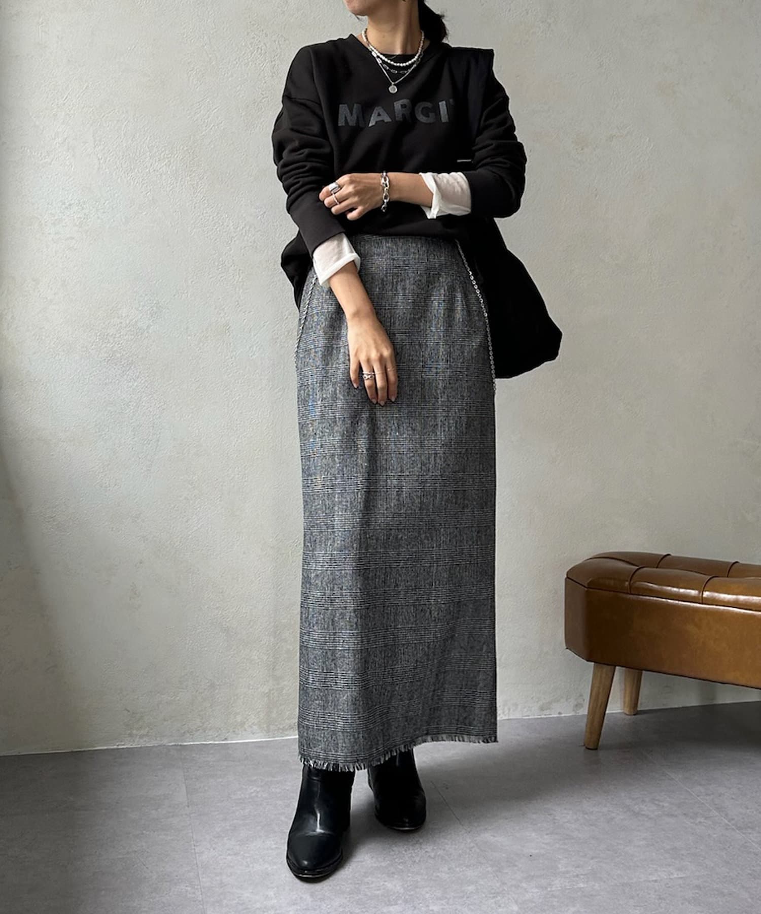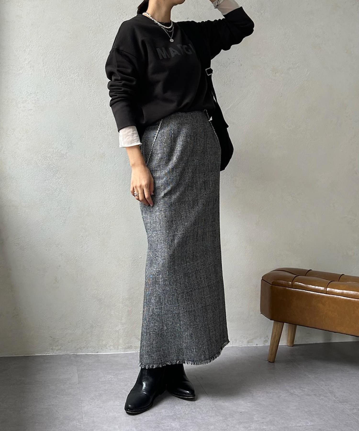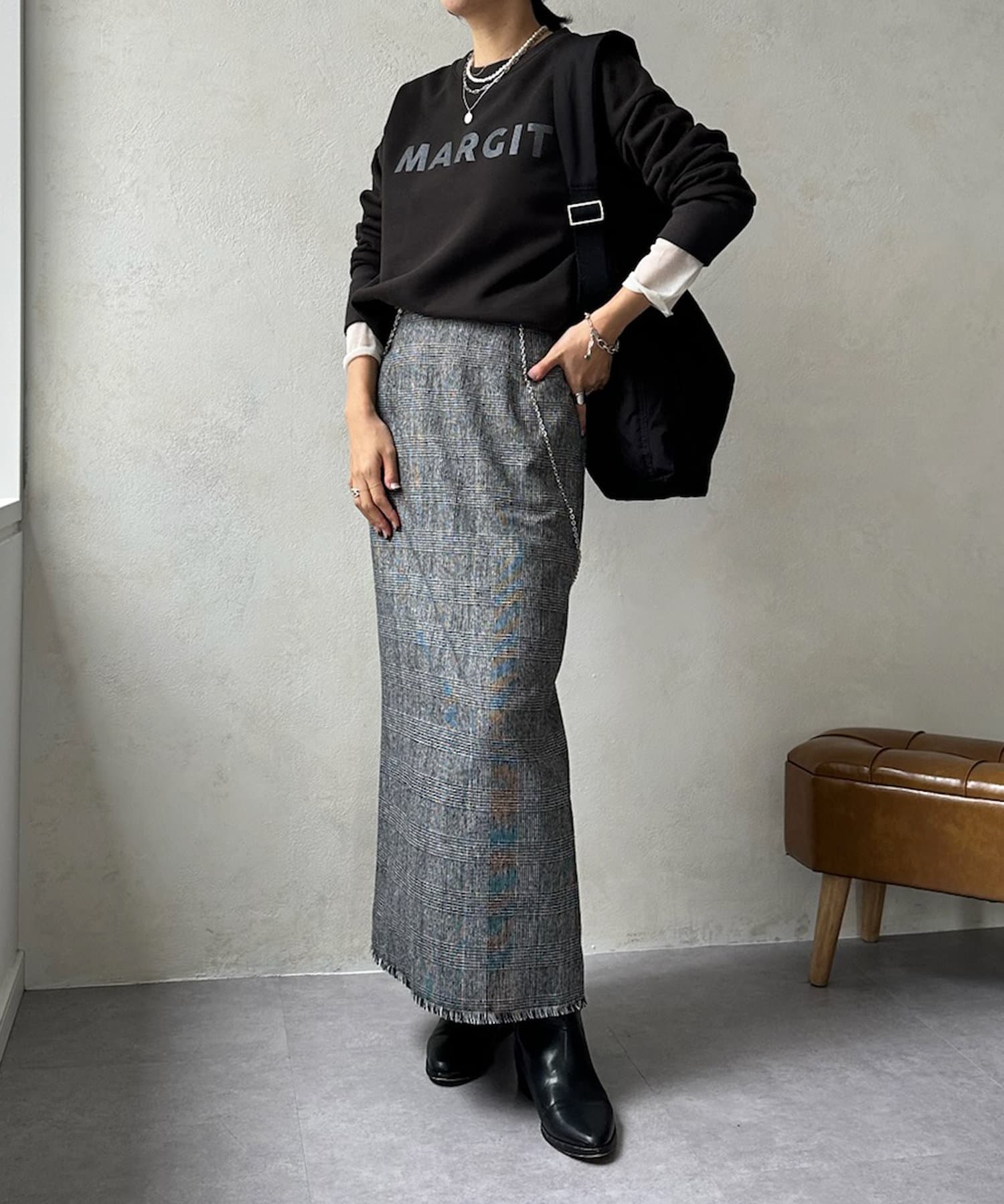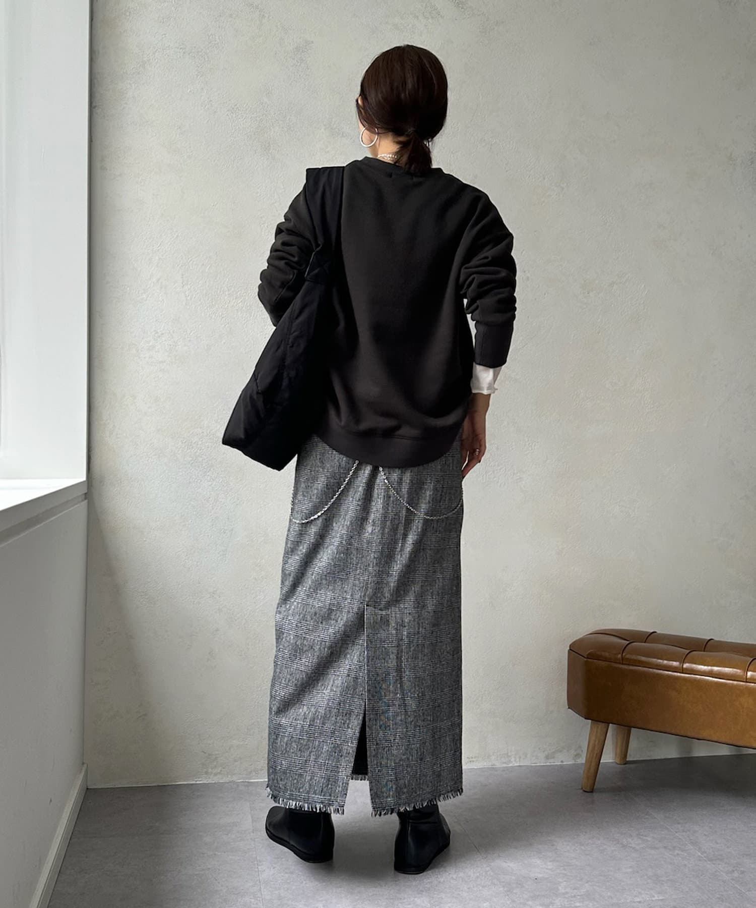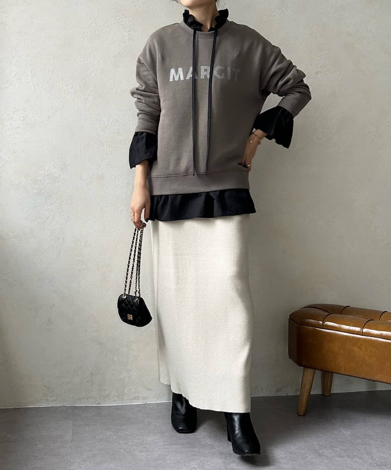 オーバーサイズすぎないボディはボリューム感のあるボトムとの相性もばっちりです。