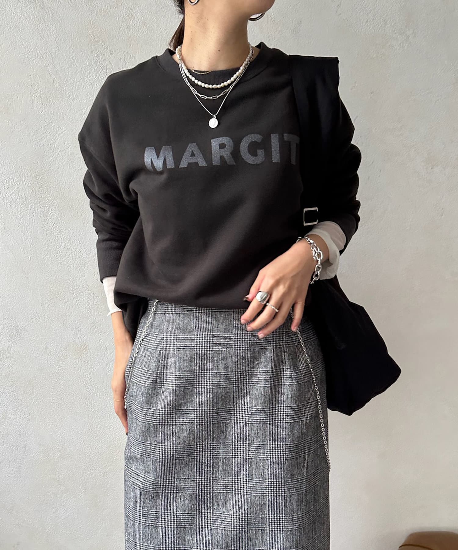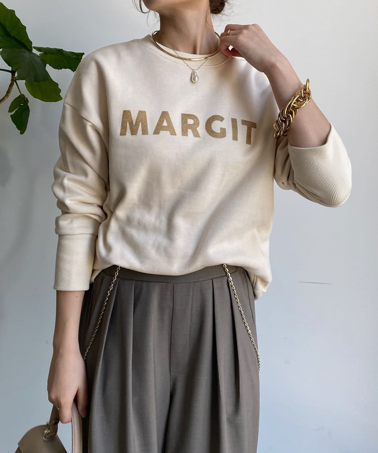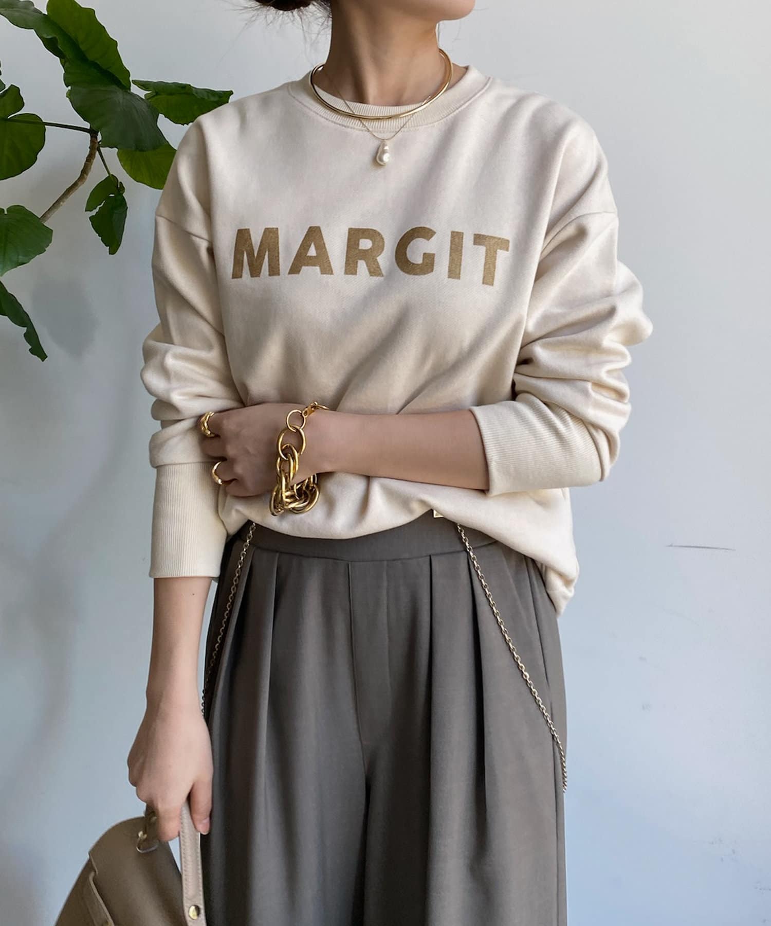 特徴的なラメが施されているロゴのプリントは、落ち着いた分量のラメで大人らしい印象に。