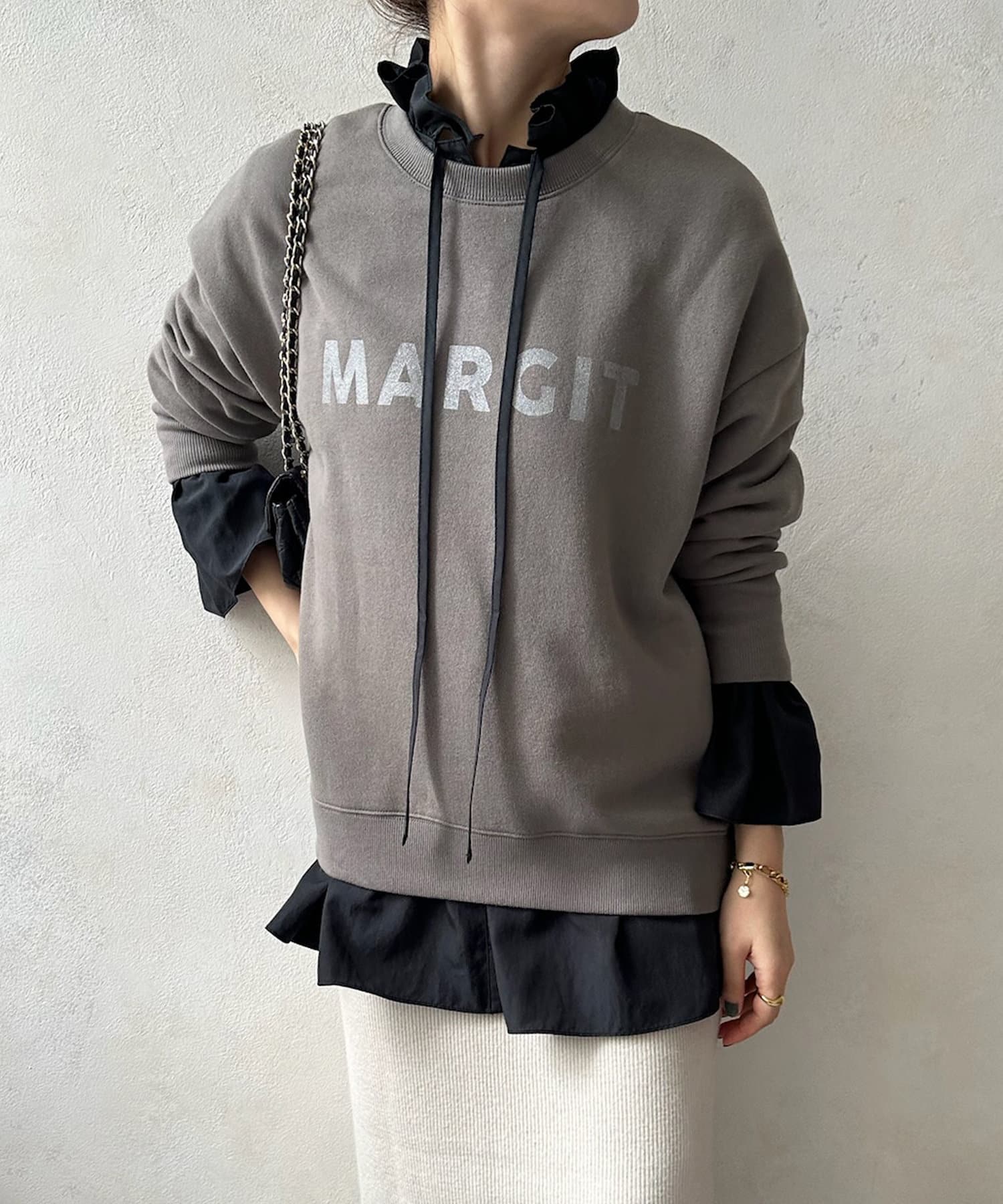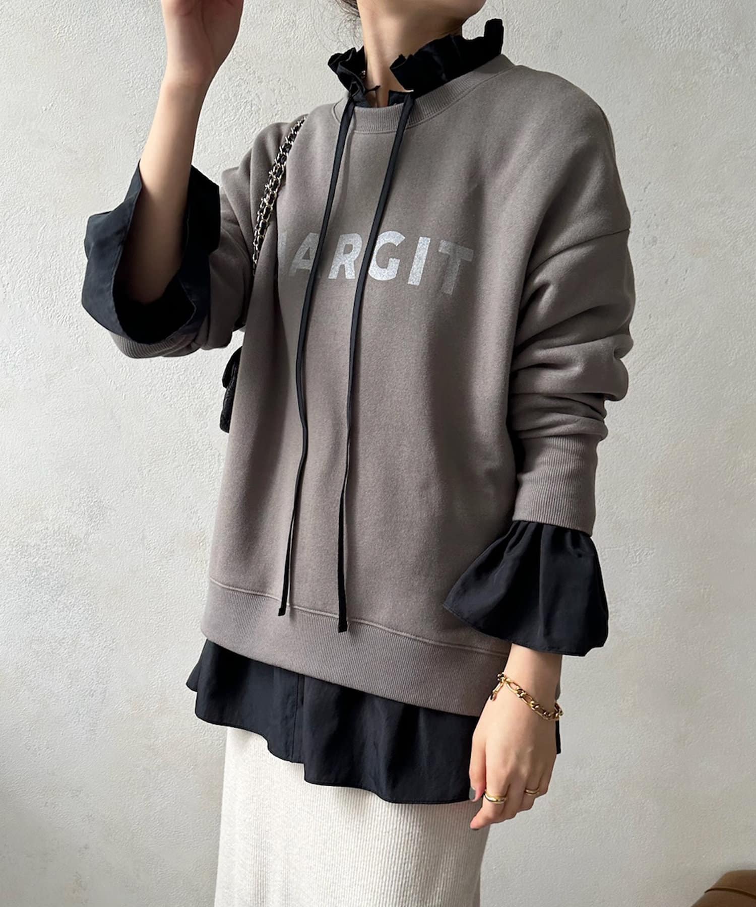 ラメグリッターのロゴが、華やかな印象のスウェット。