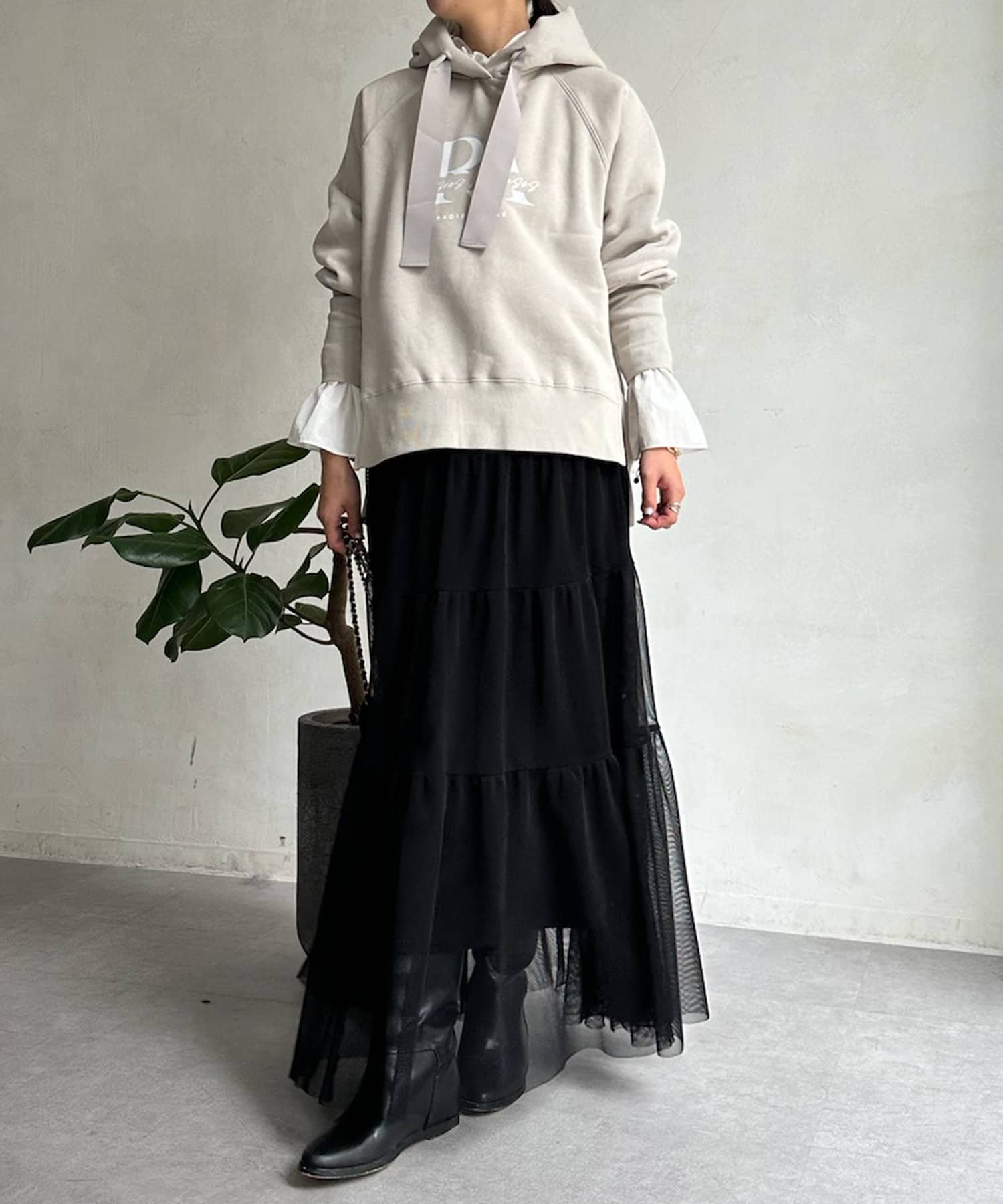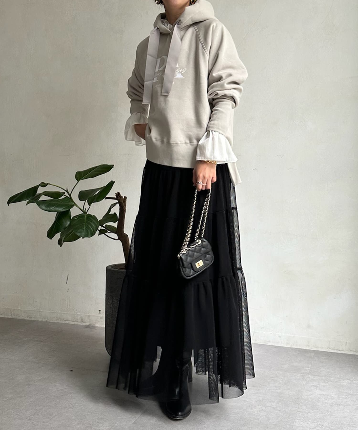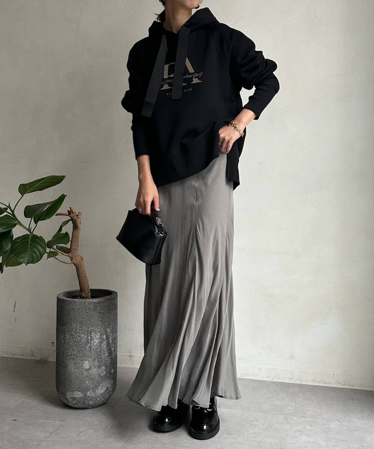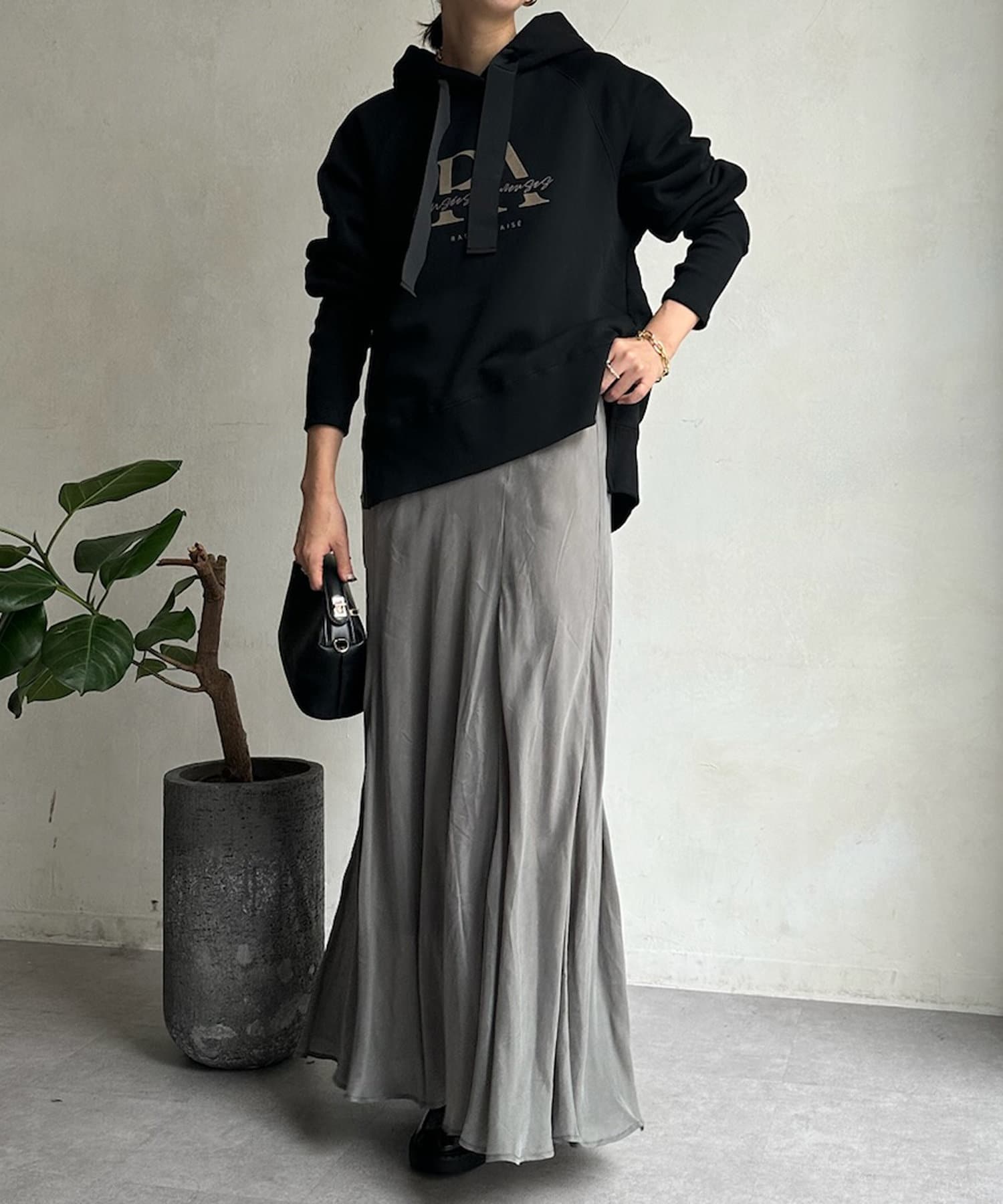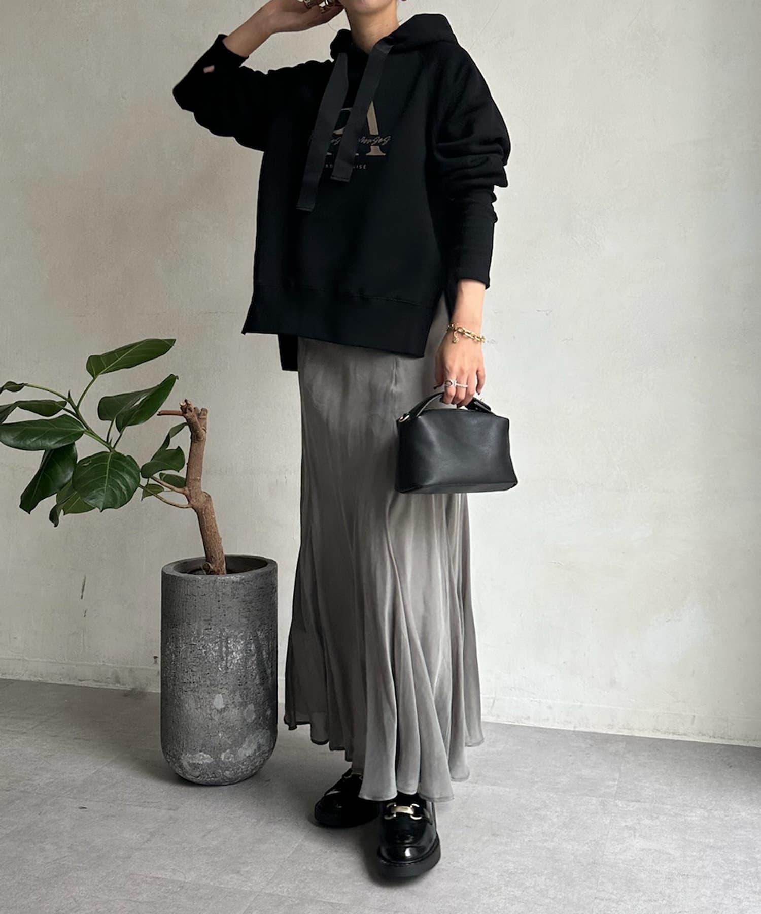 前後差がありゆるっと着れるシルエットで、裾にスリットが入っているため抜け感もプラスされます!
