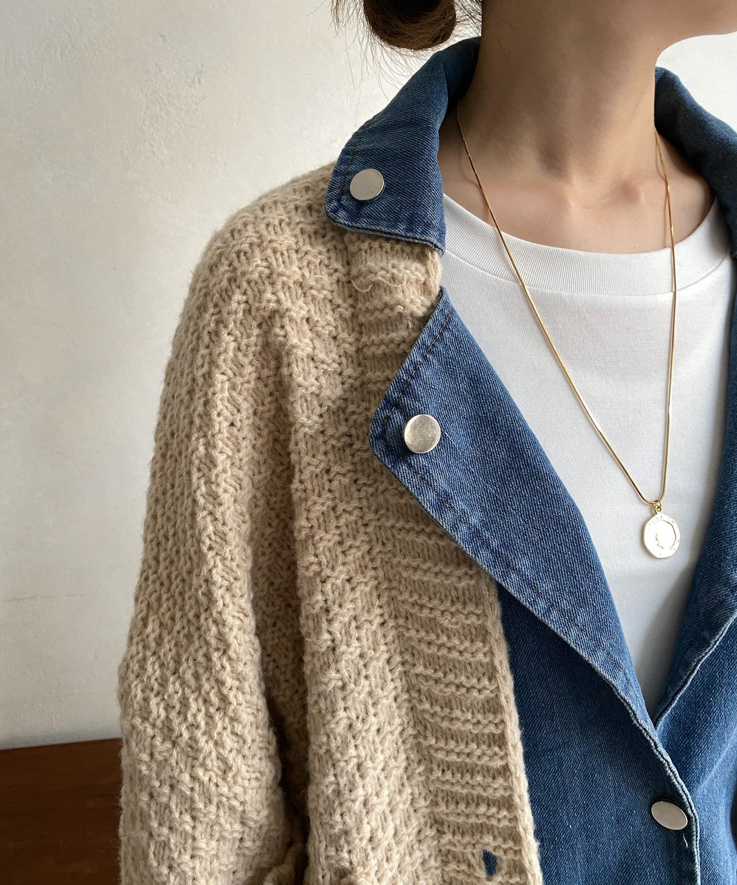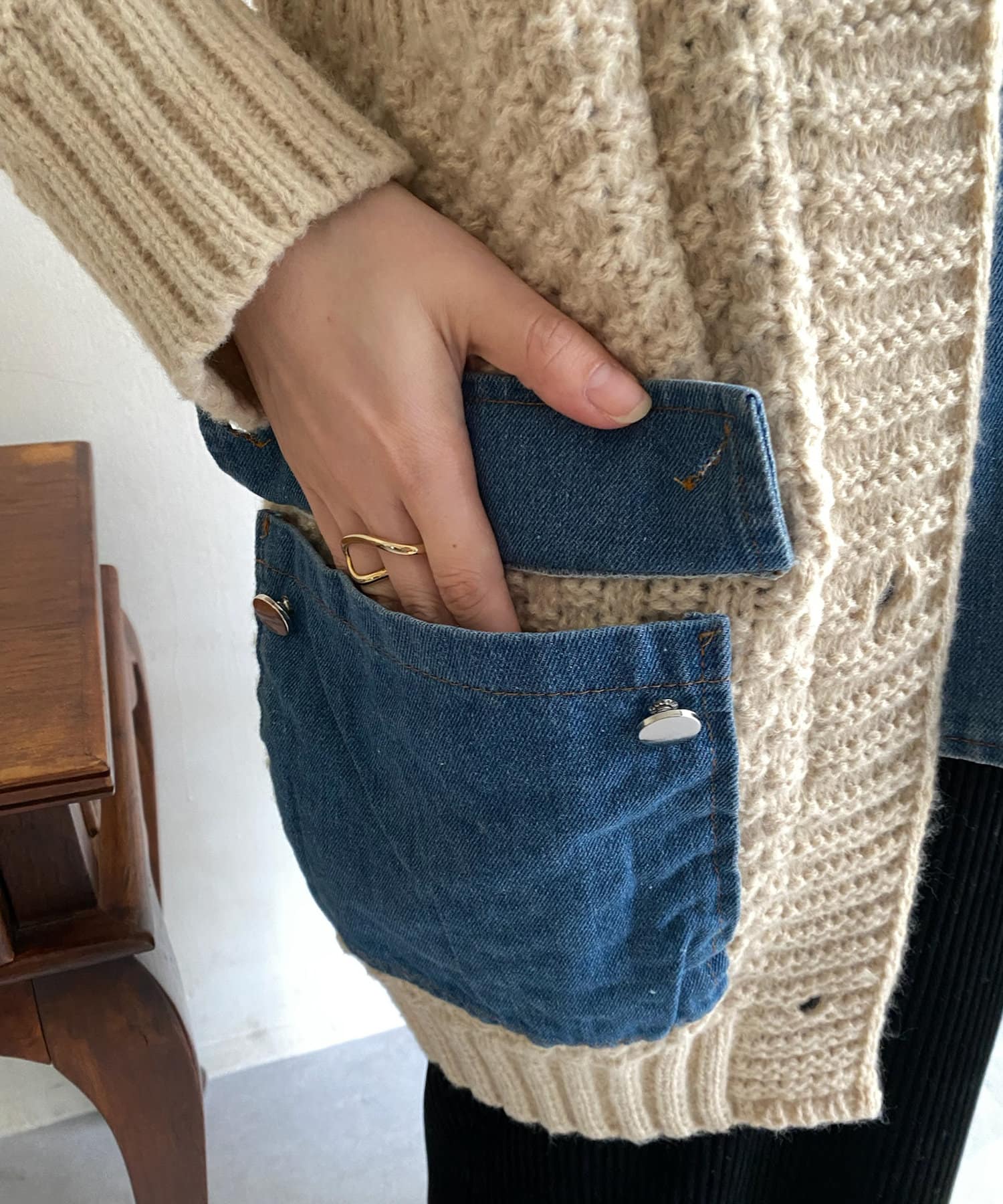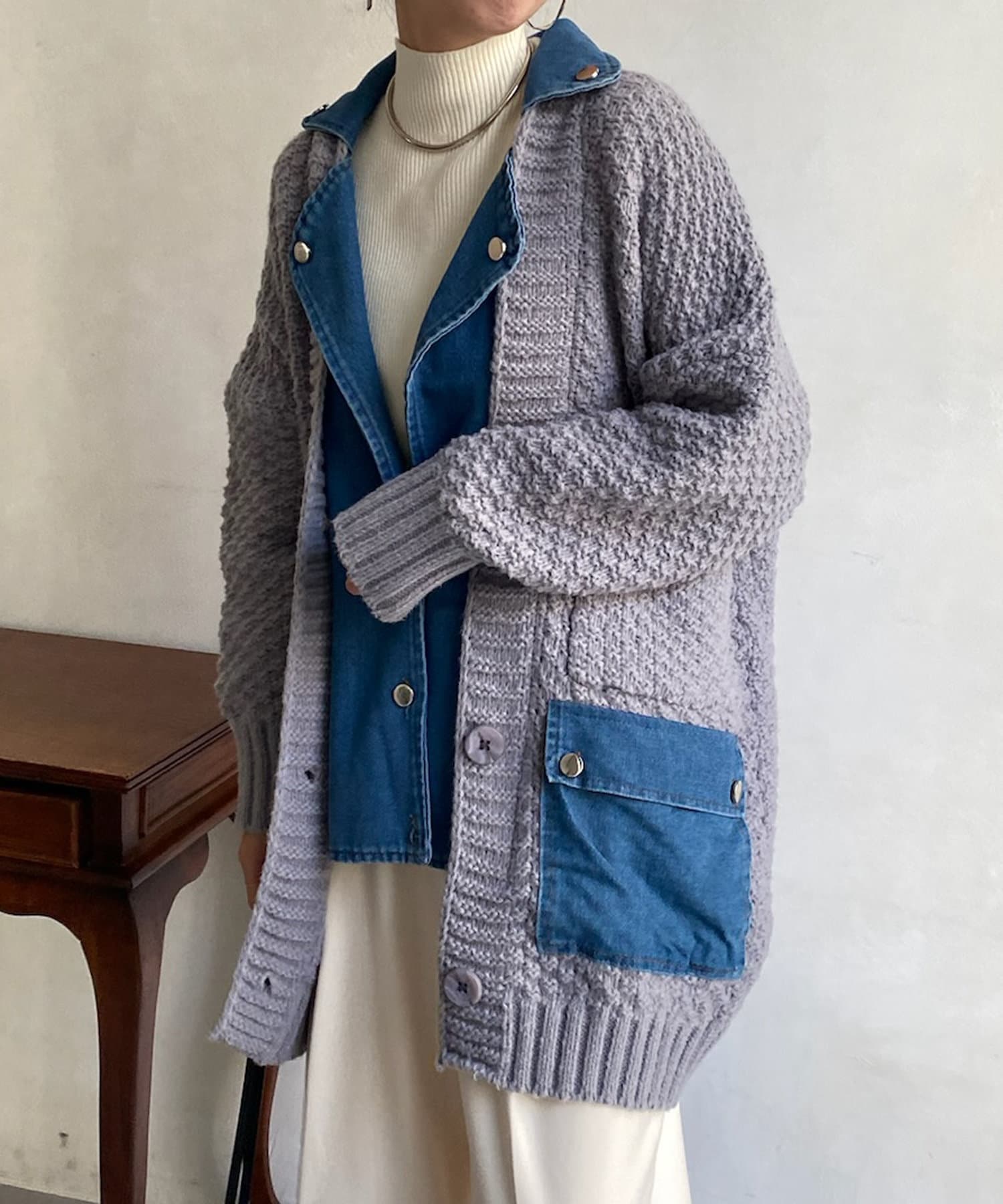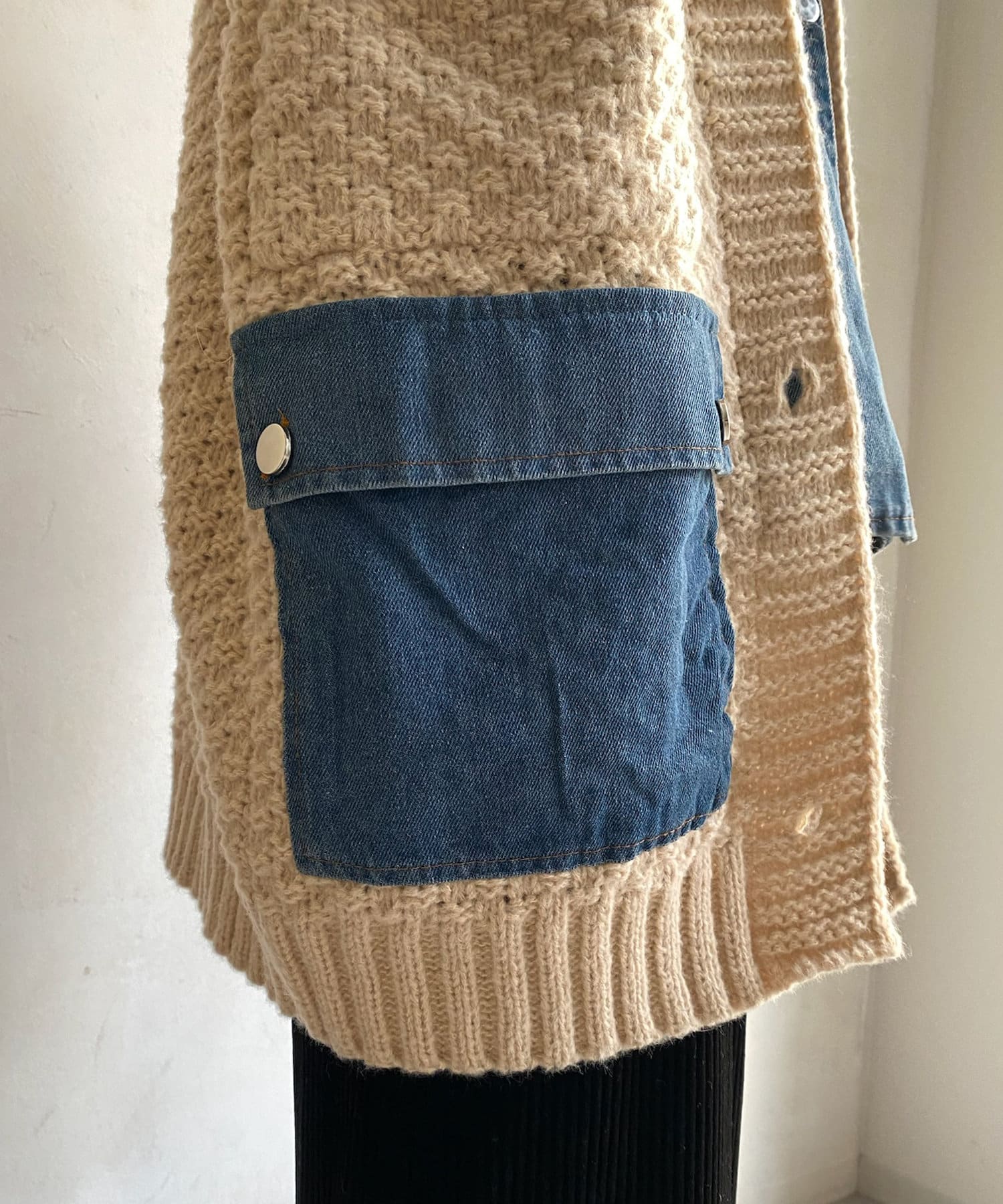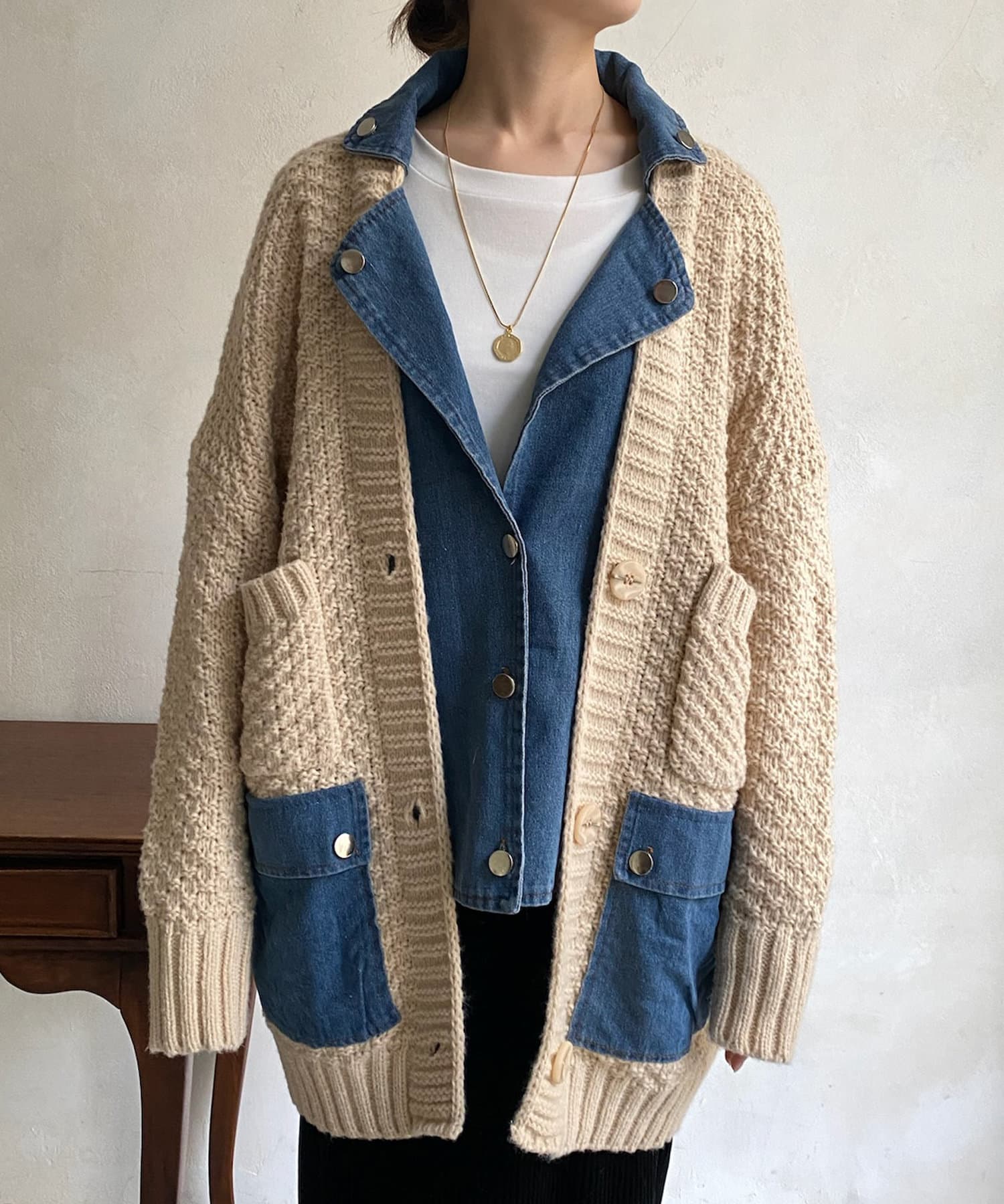 ニットカーデにデニムをドッキングしたカーデジャケット!
