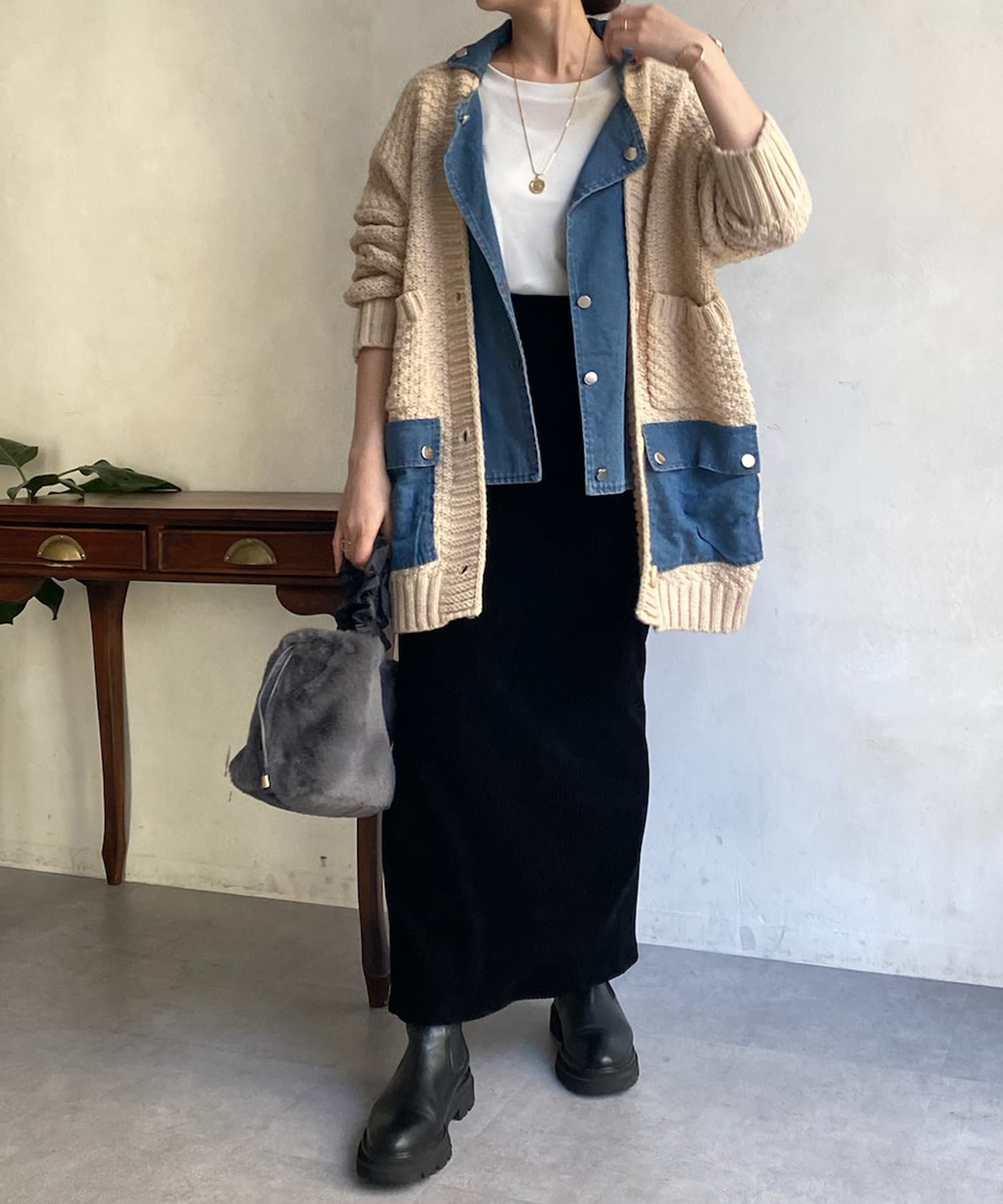 DOUDOU(ドゥドゥ) 【WEB限定】デニム切替ニットコート