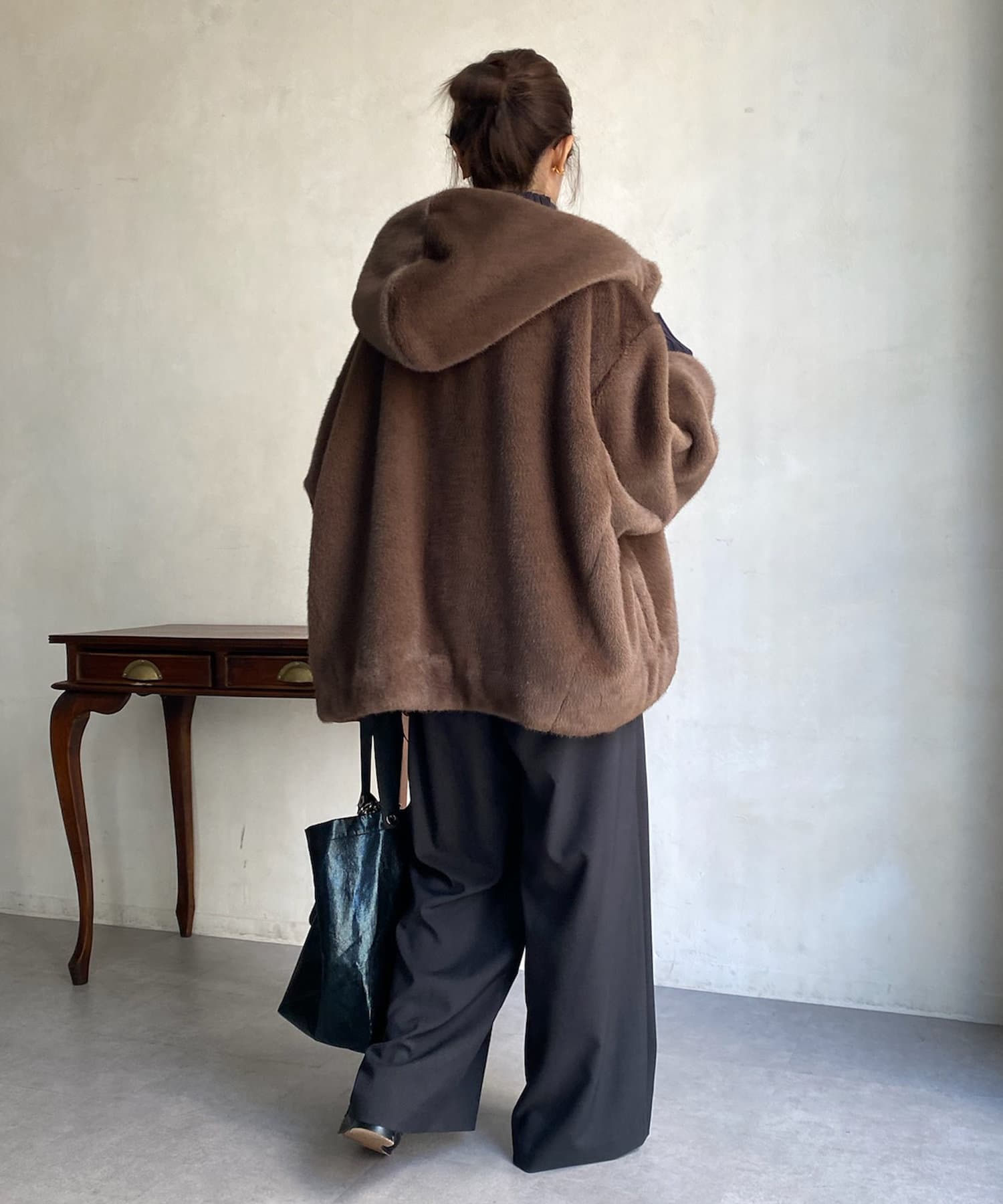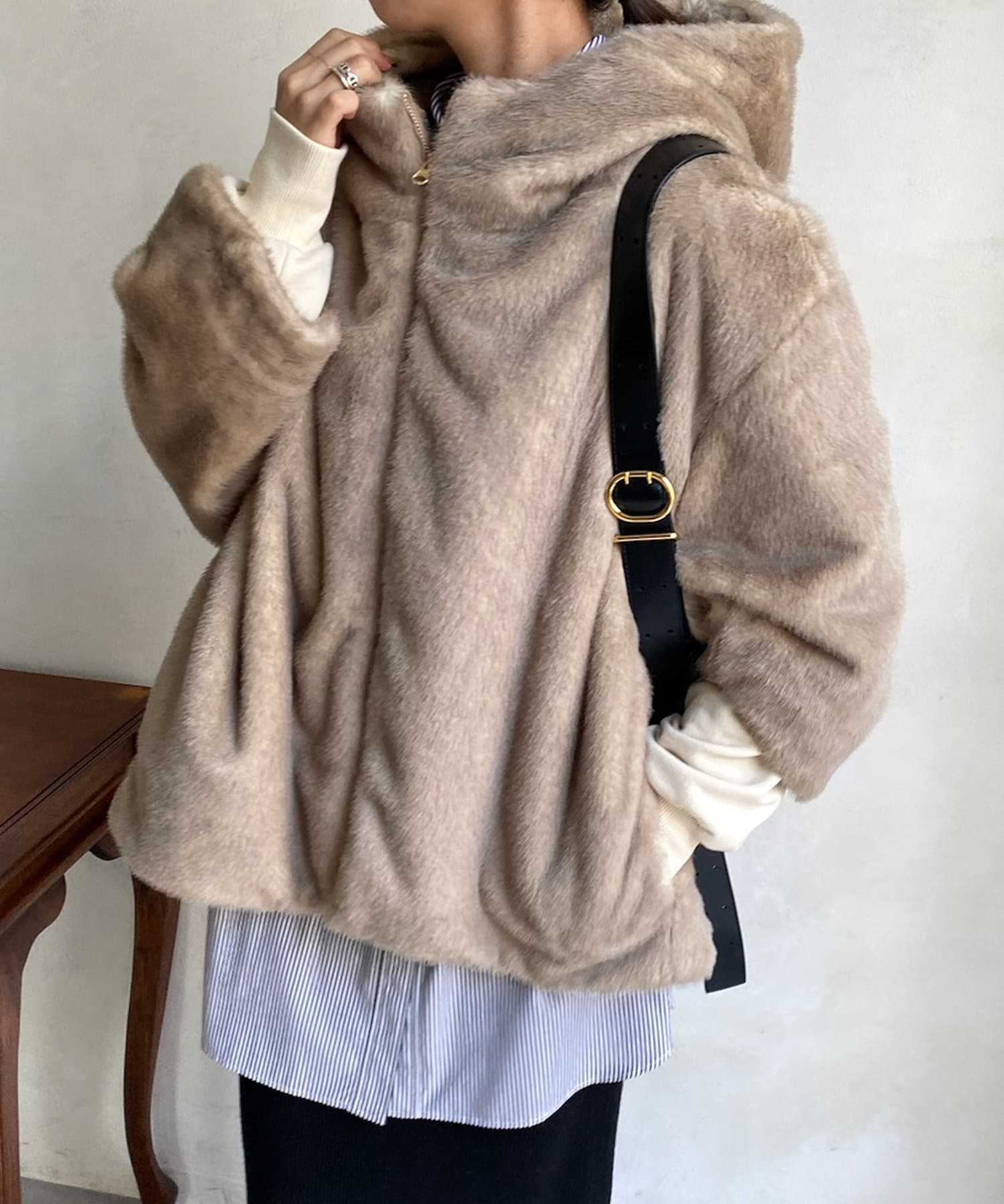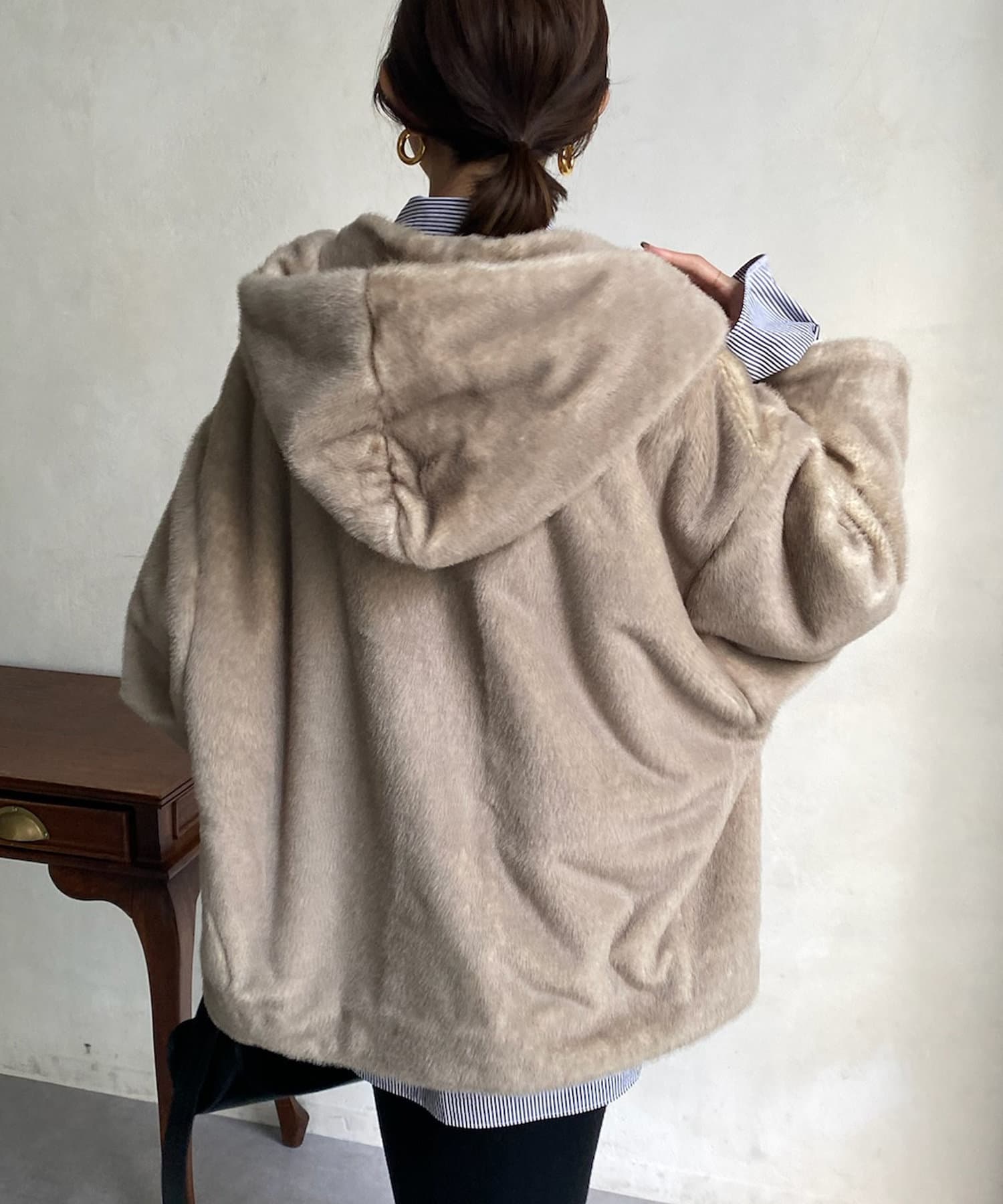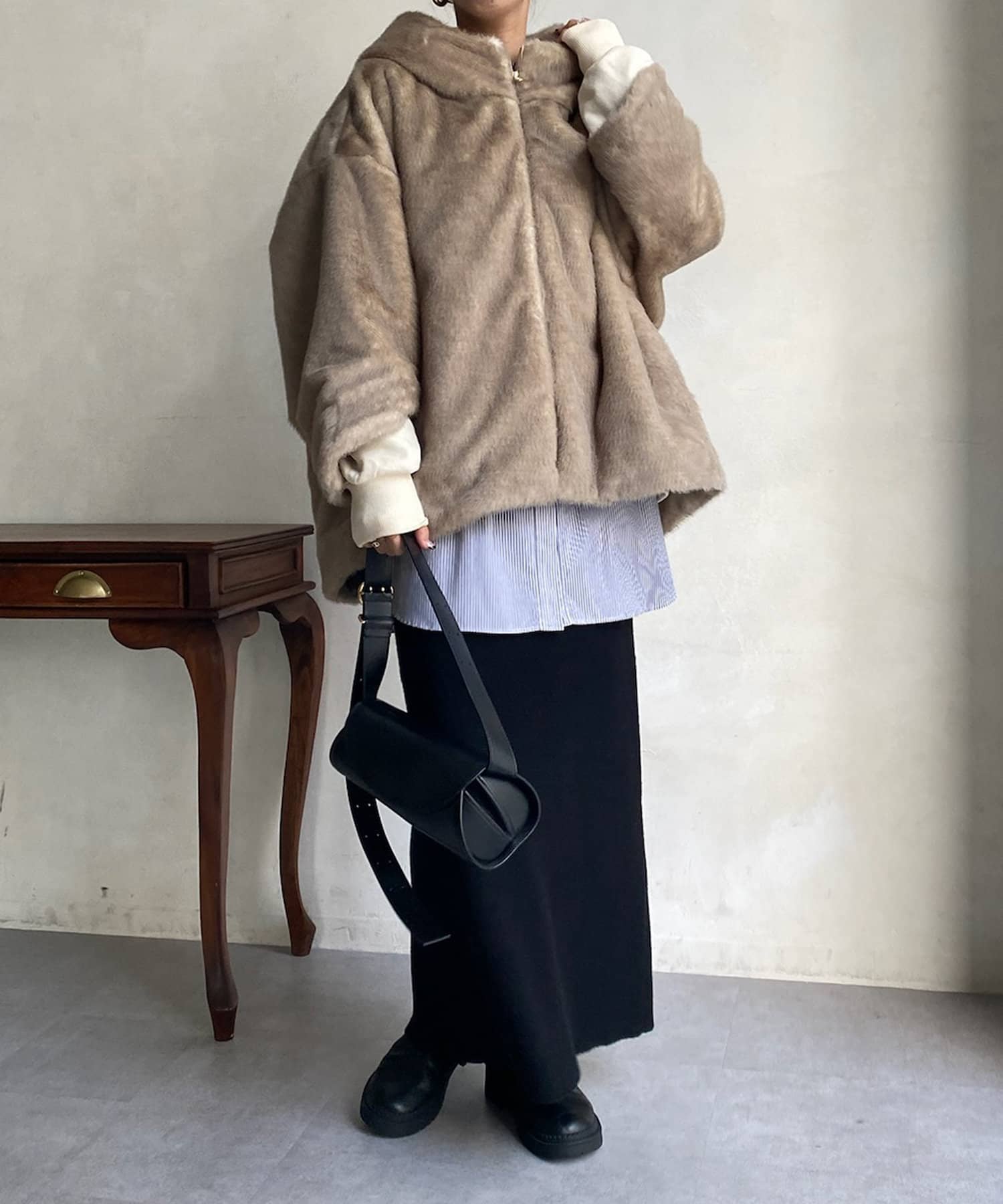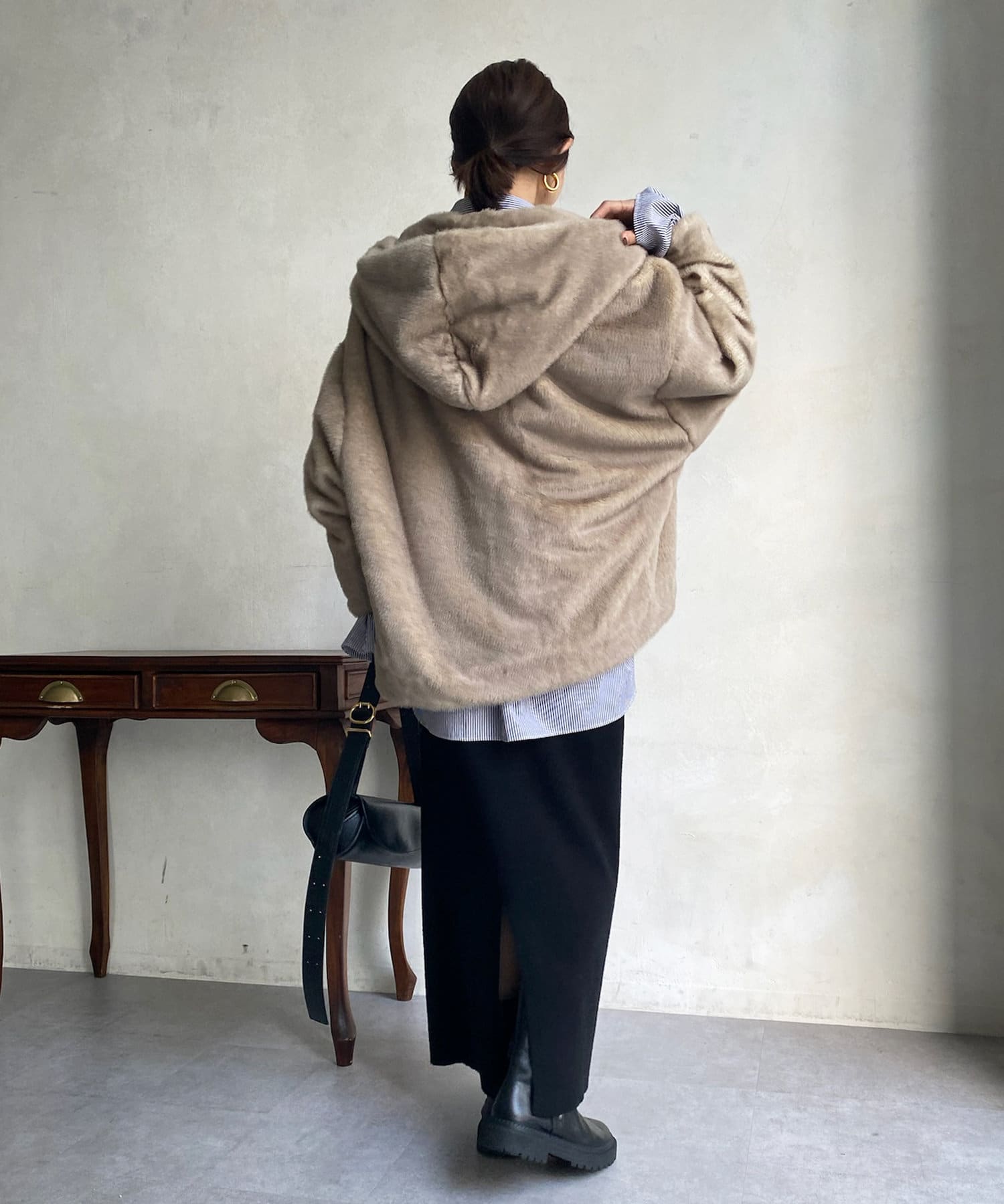ボリューム感のあるフードは小顔効果をサポートしてくれます。
