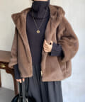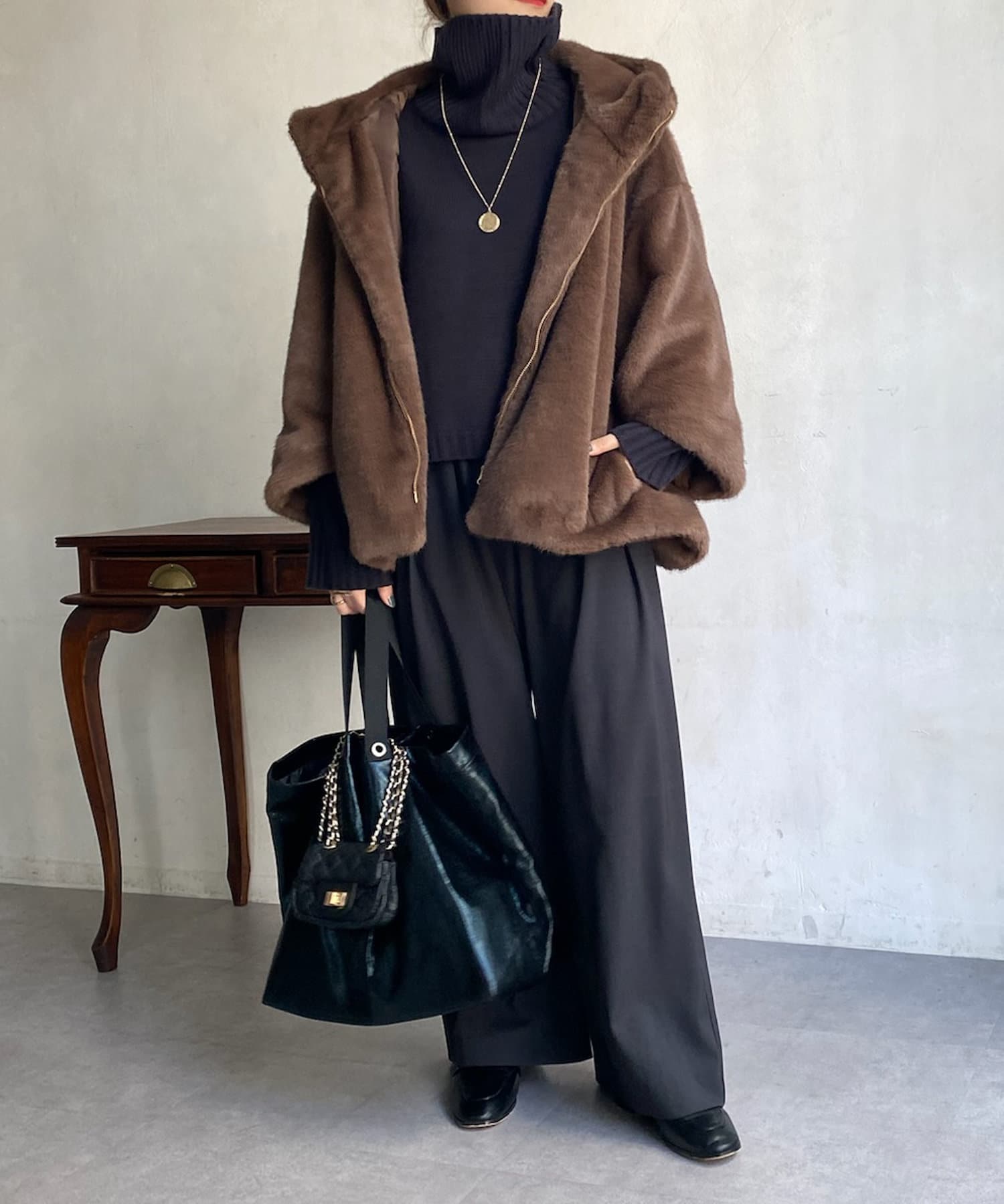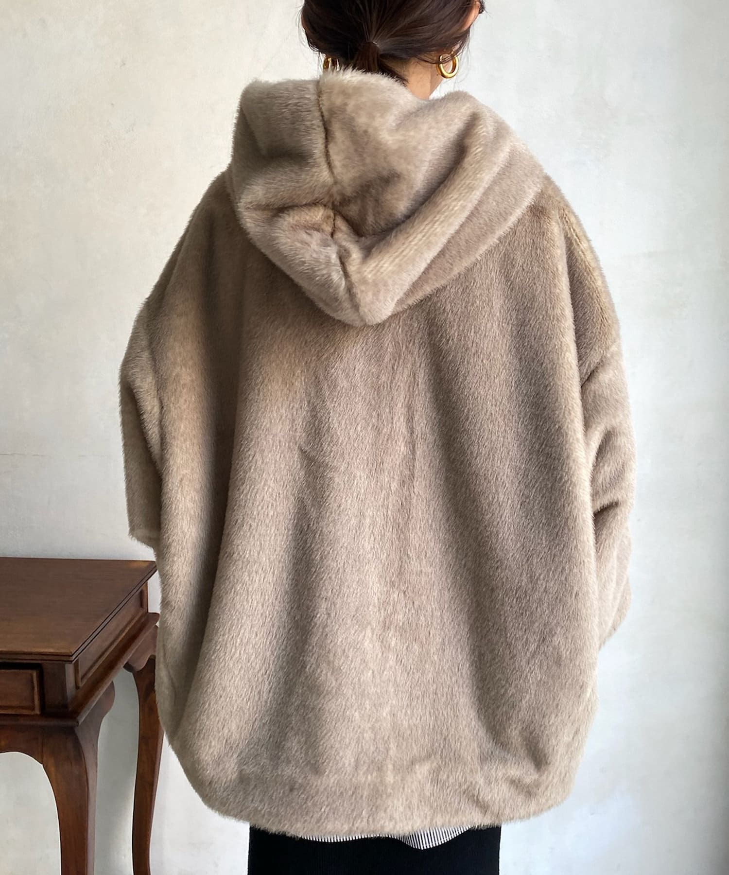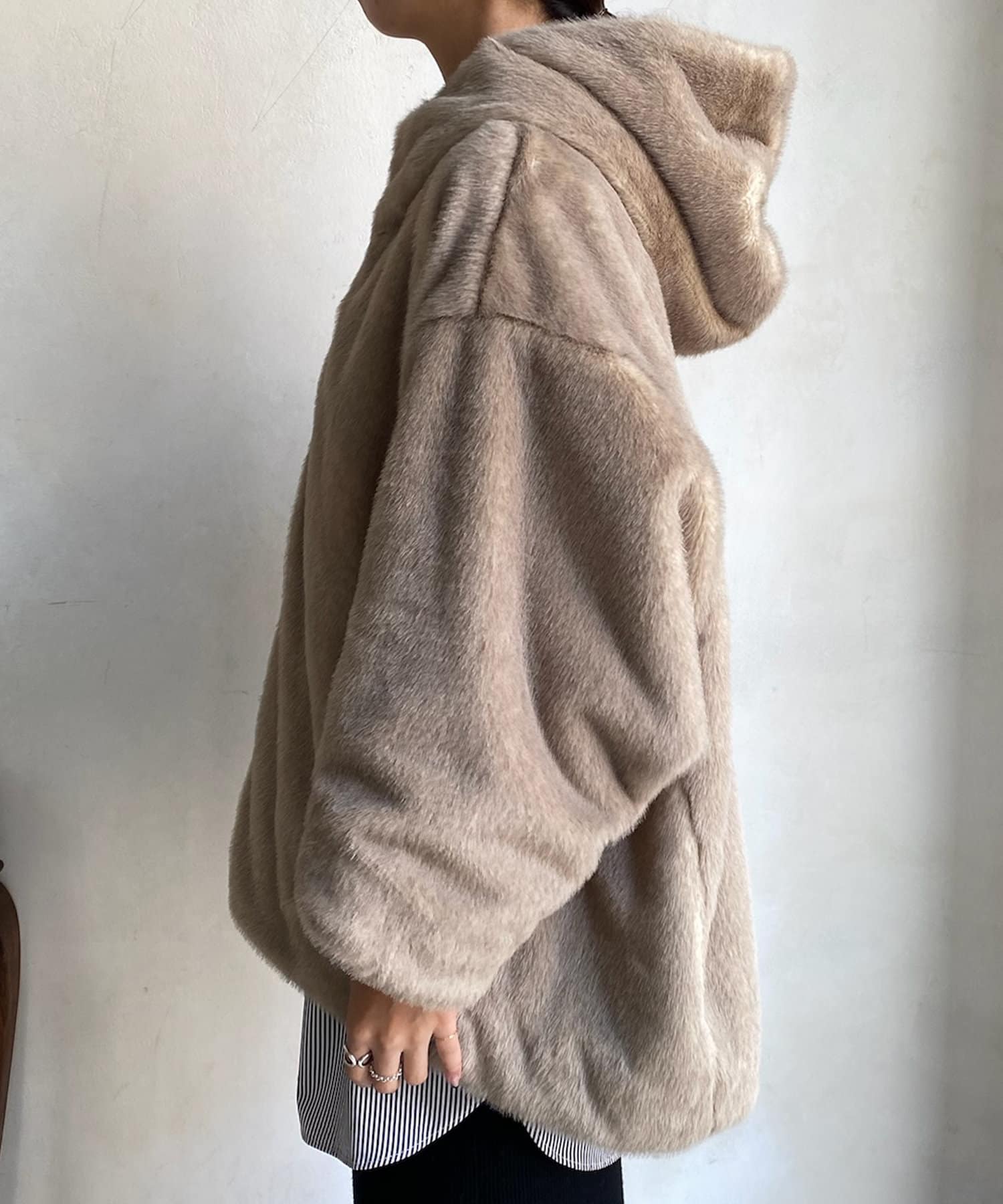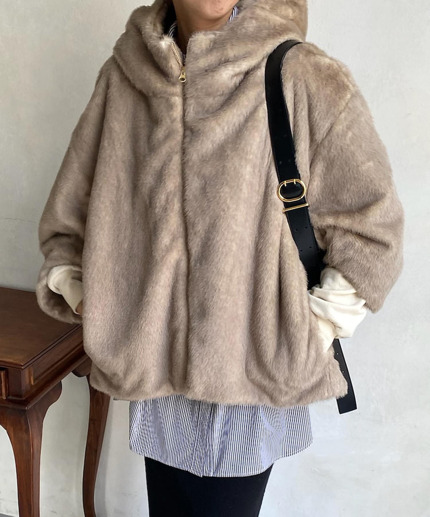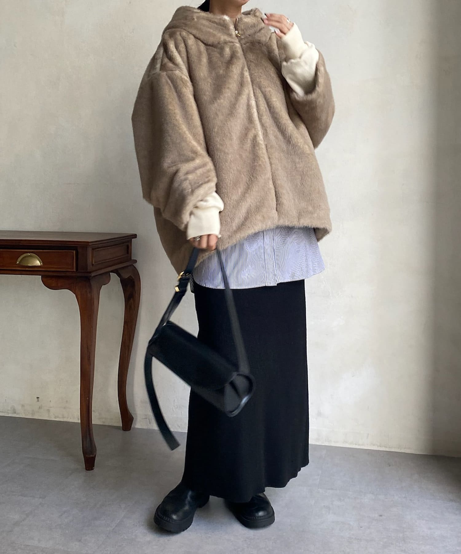 ボリューム感のあるフードは小顔効果をサポートしてくれます。