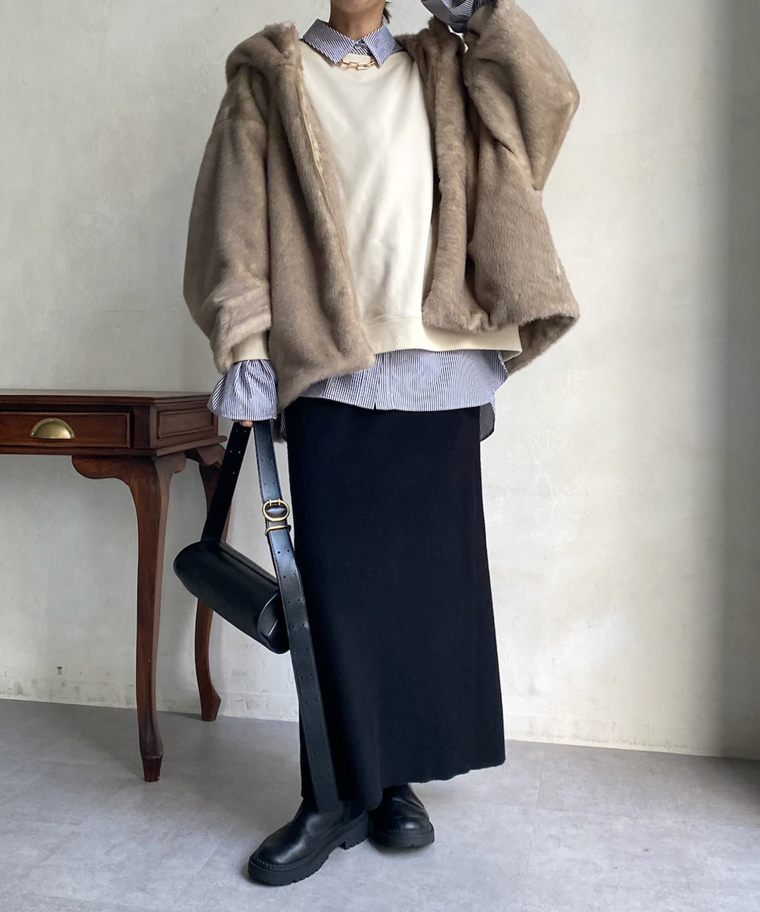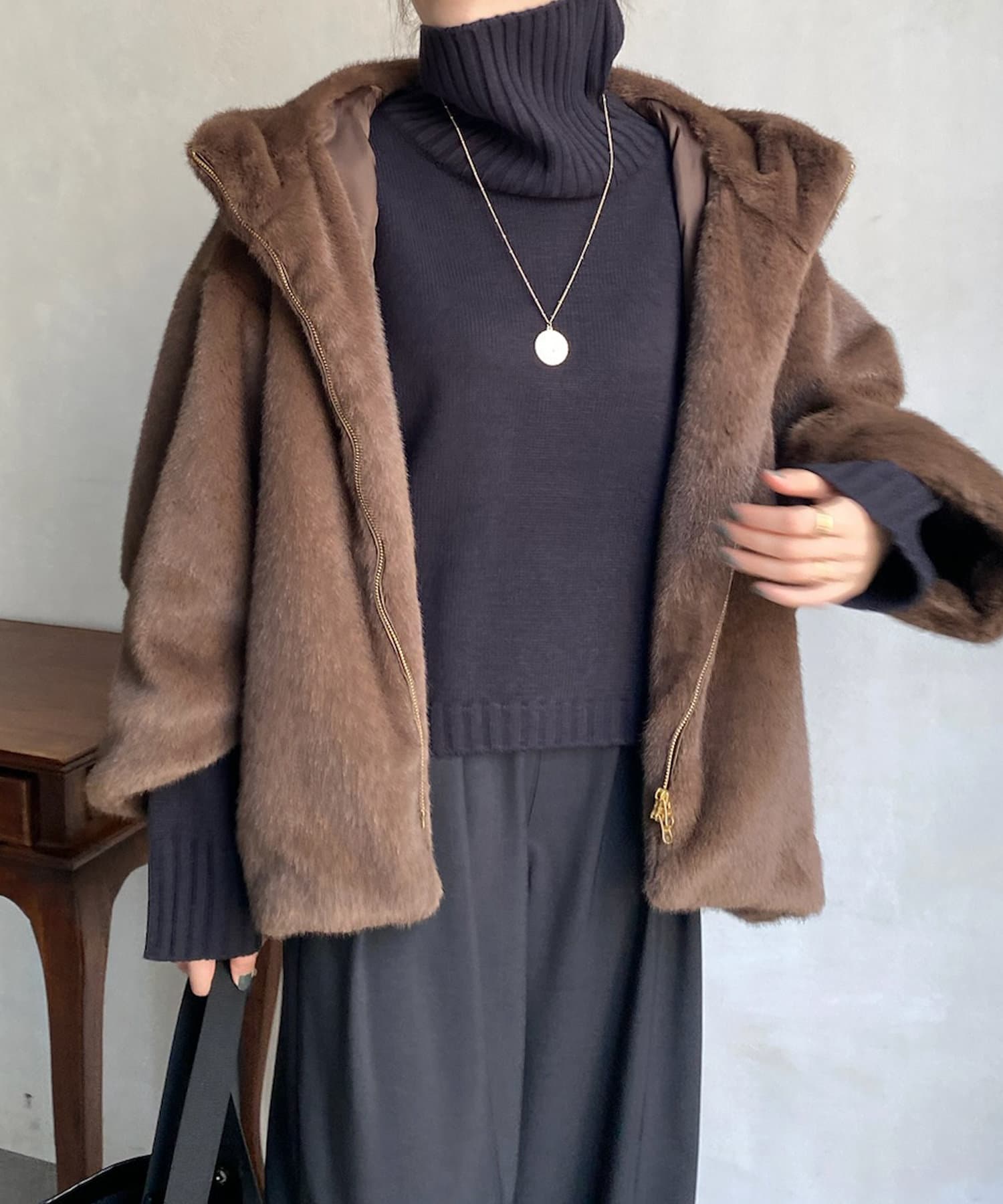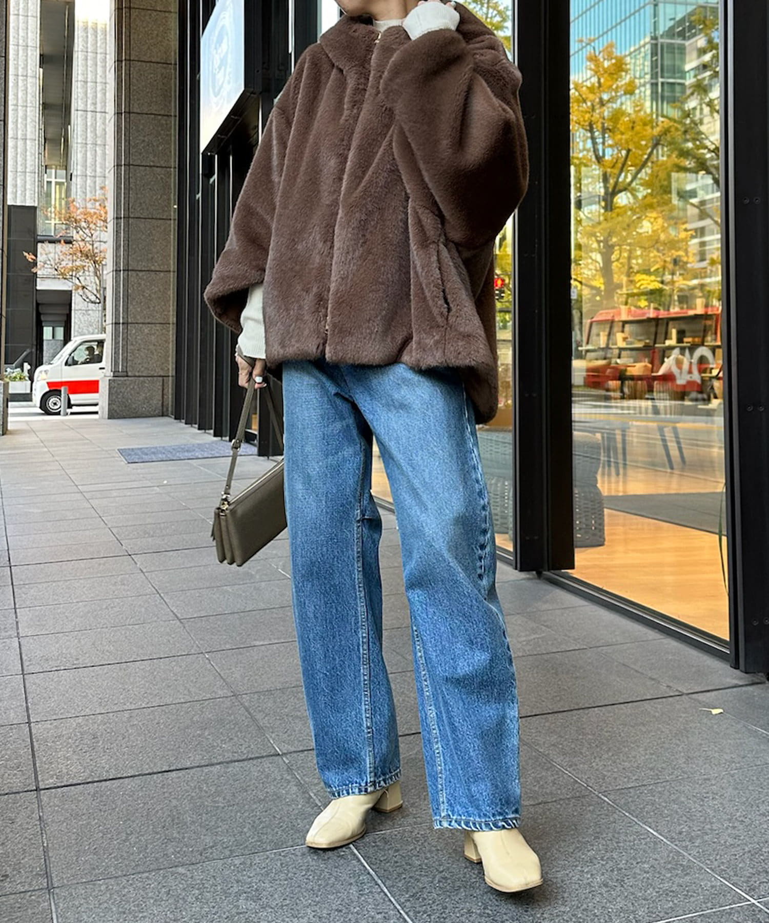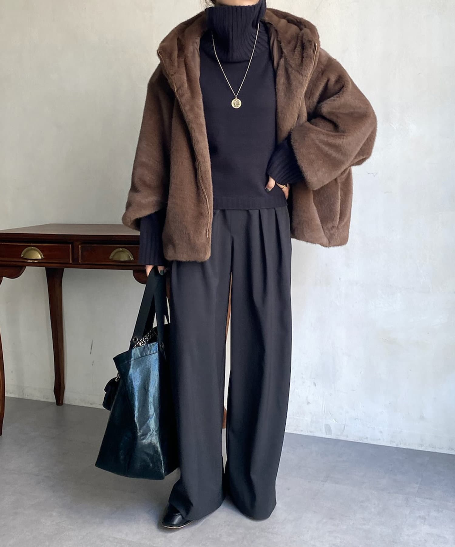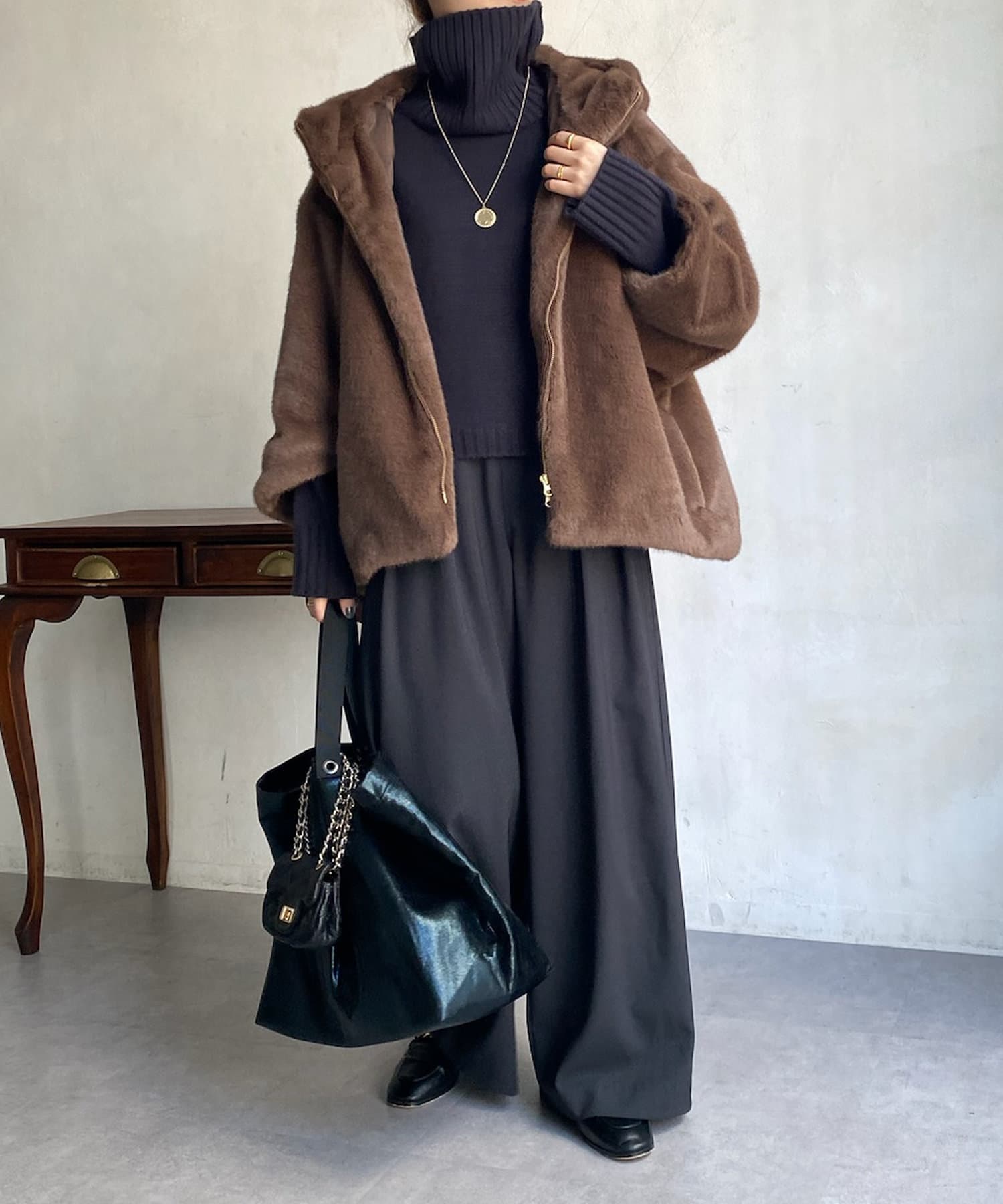 ボリューム感のあるフードは小顔効果をサポートしてくれます。