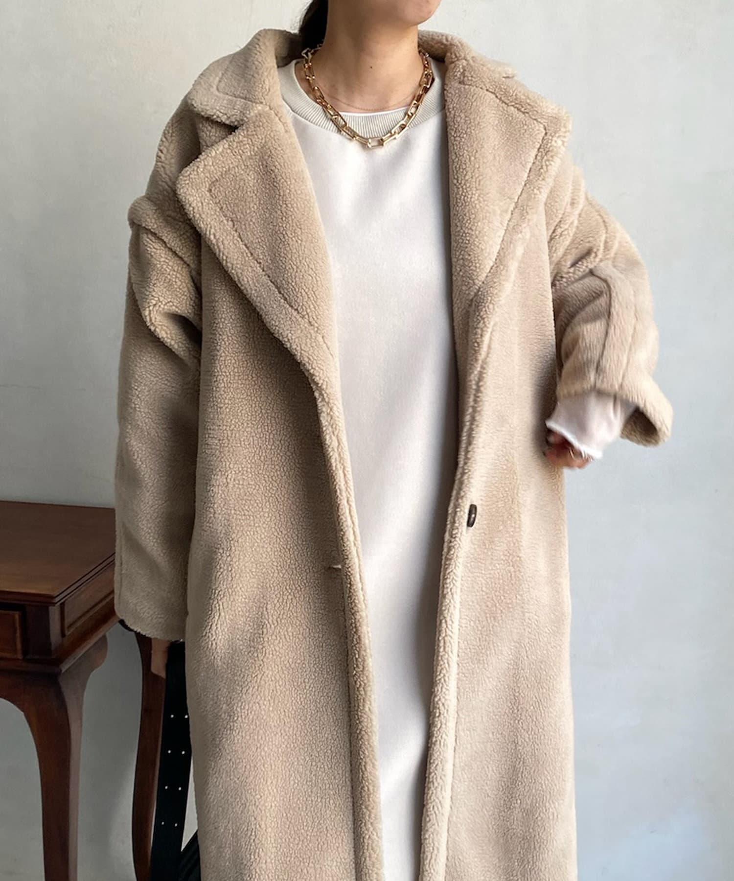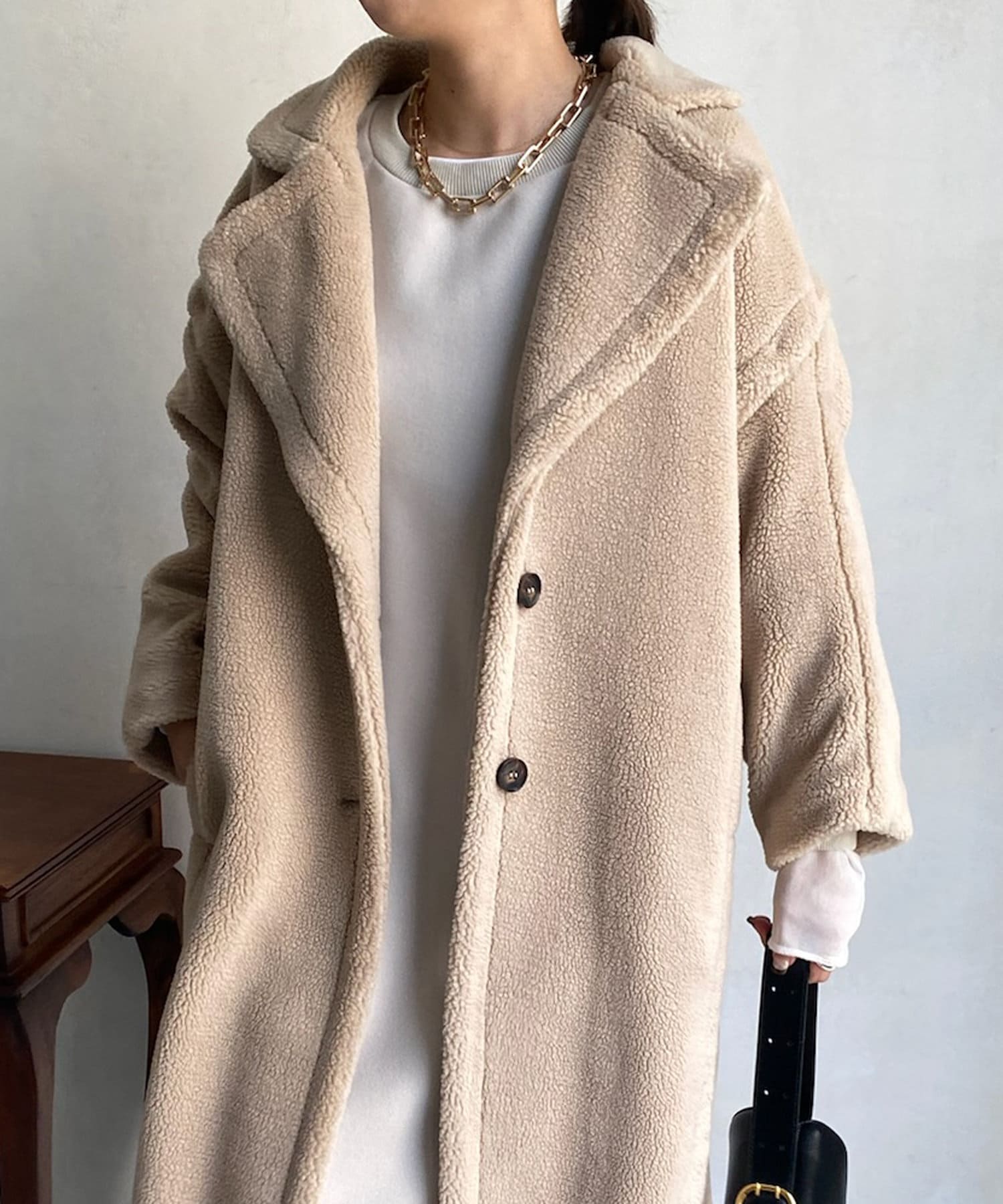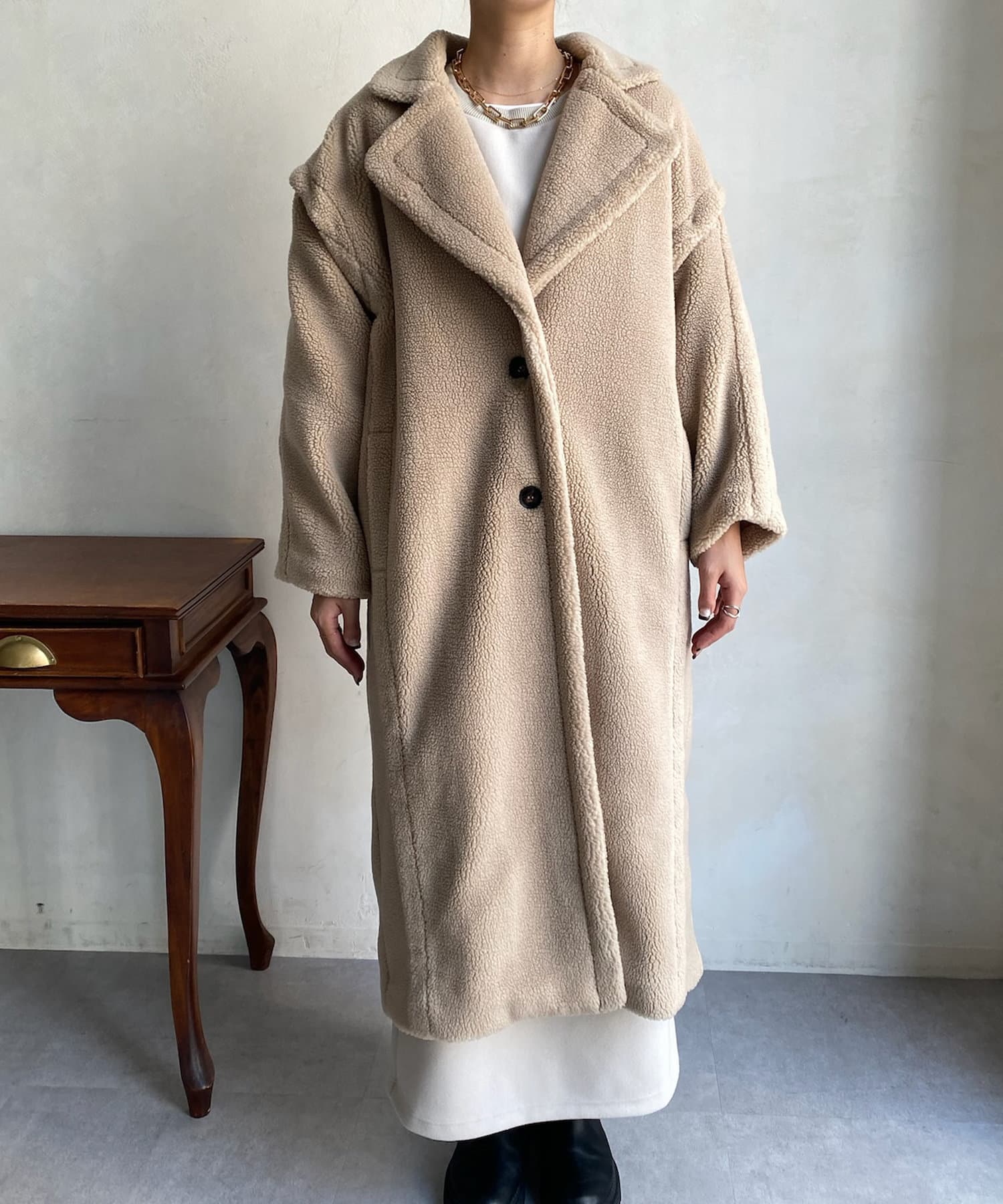 さっと気軽に羽織りやすく、 カジュアル、綺麗め、様々なスタイリングに気軽に合わせる事ご出来るボアコートですよ!