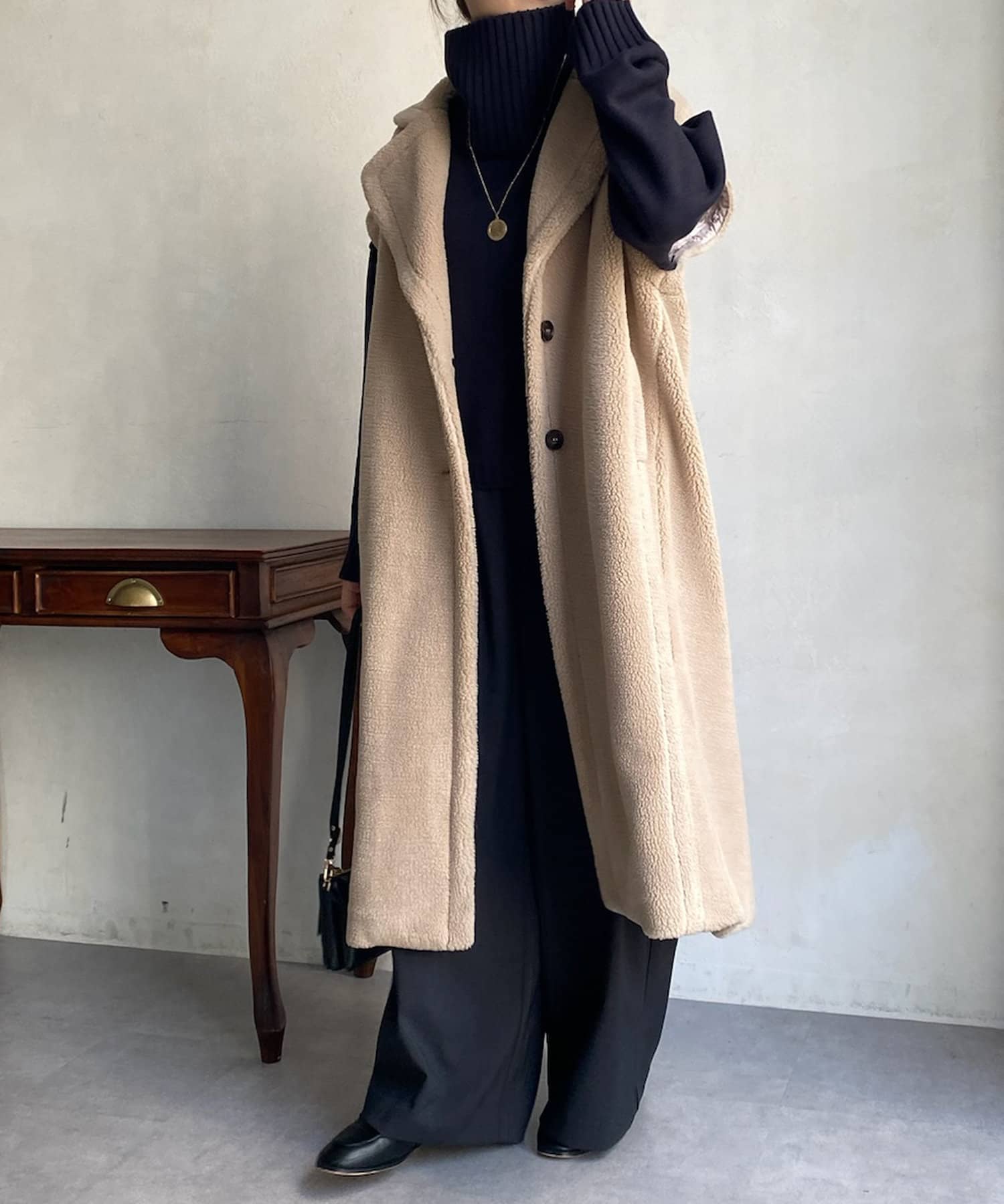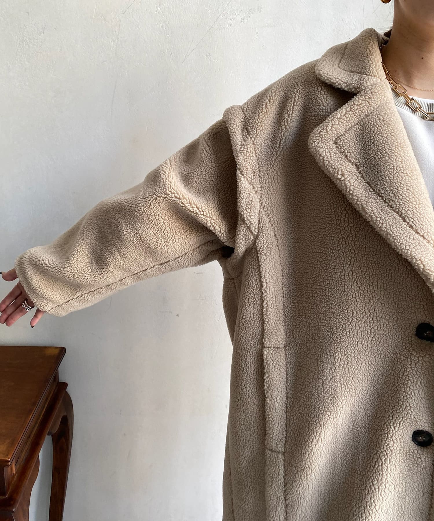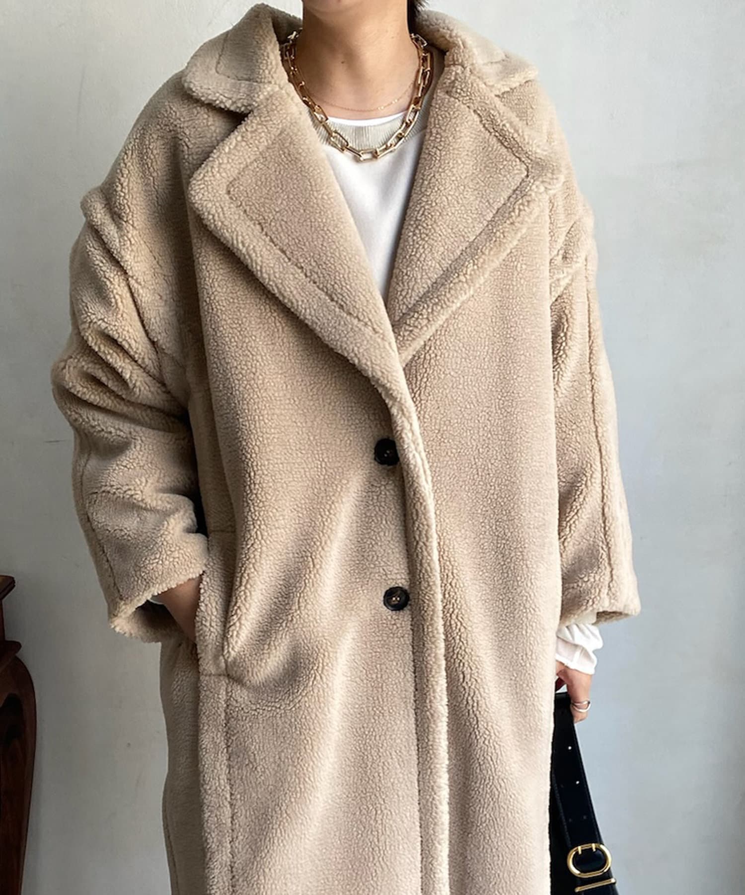 さっと気軽に羽織りやすく、 カジュアル、綺麗め、様々なスタイリングに気軽に合わせる事ご出来るボアコートですよ!