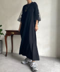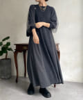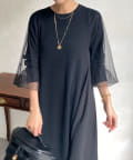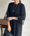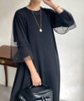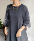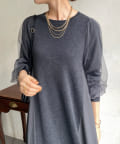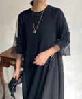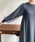 【WEB限定】袖チュール切替ニットワンピース