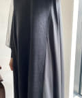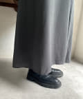 ニットと布帛素材がドッキングされた事でスッキリと見え、フレアのシルエットが