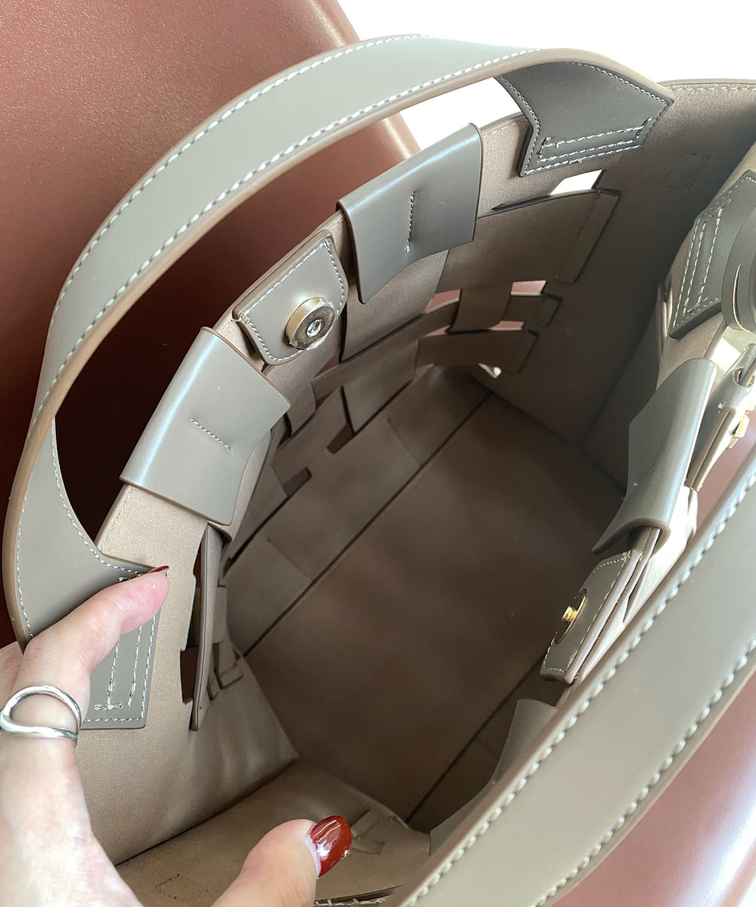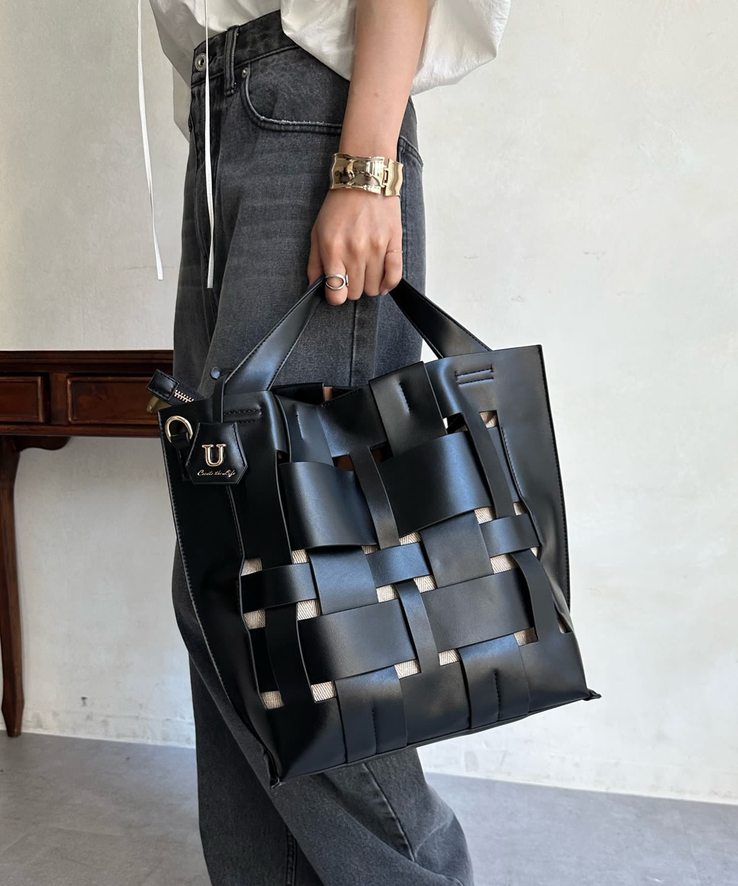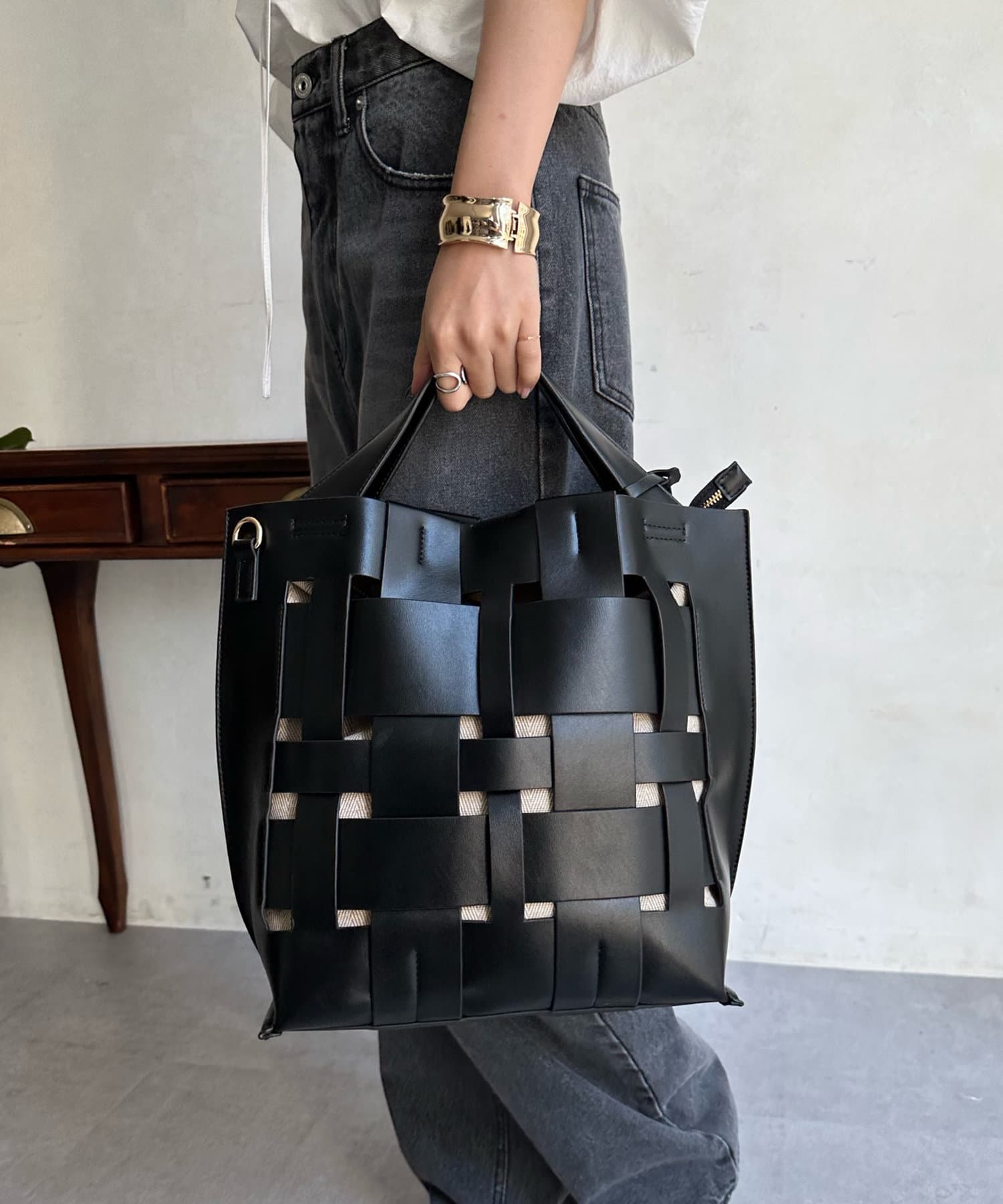 上品ながらざっくりと軽やかに持てて、トートでもショルダーでも楽しめるバッグです。