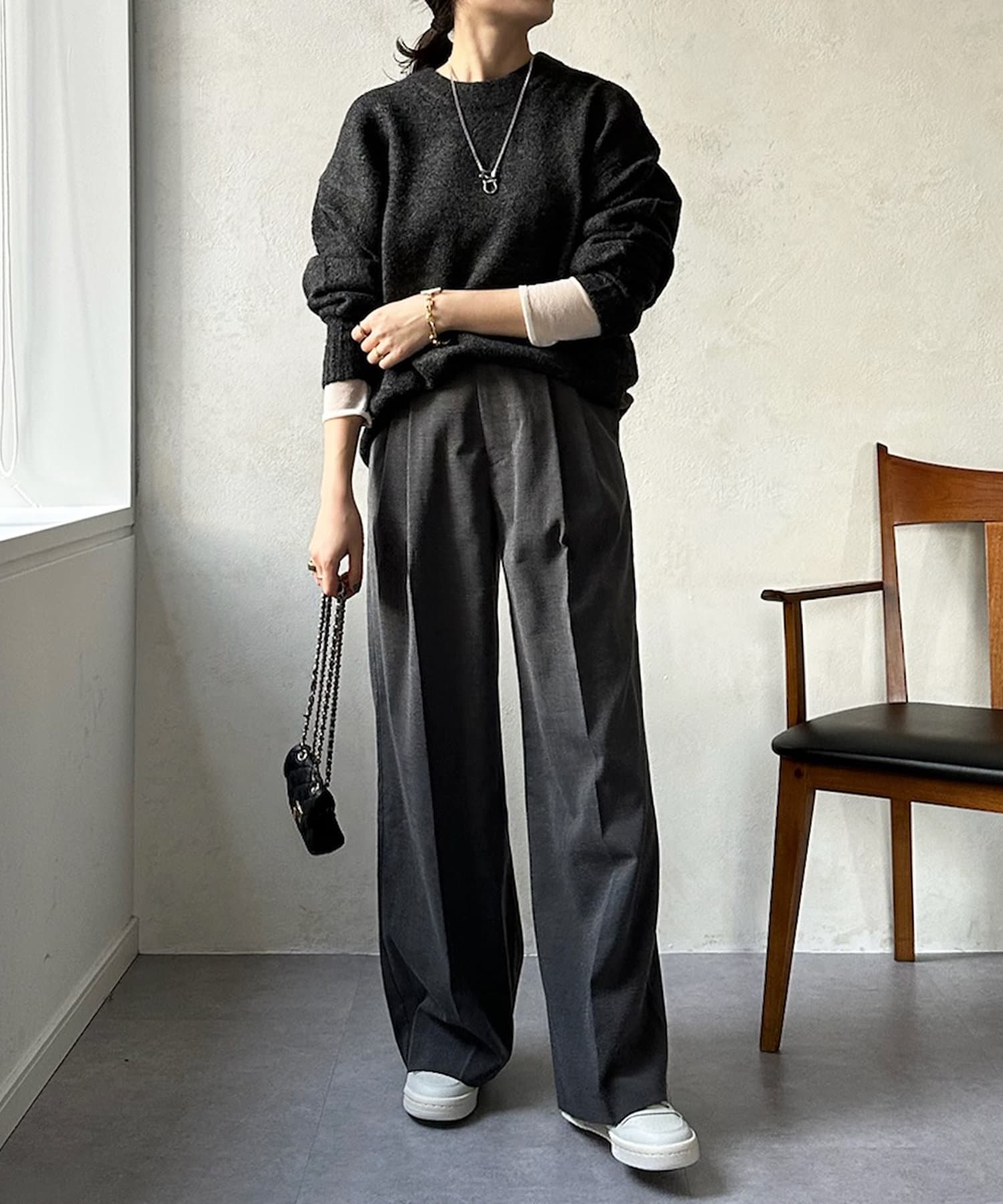 タックを施し、すとんと落ちるきれいなシルエットが体型カバーにもぴったり。
