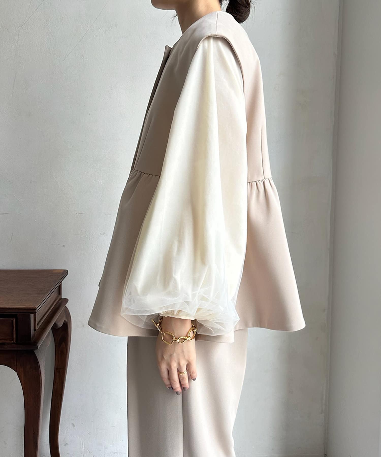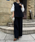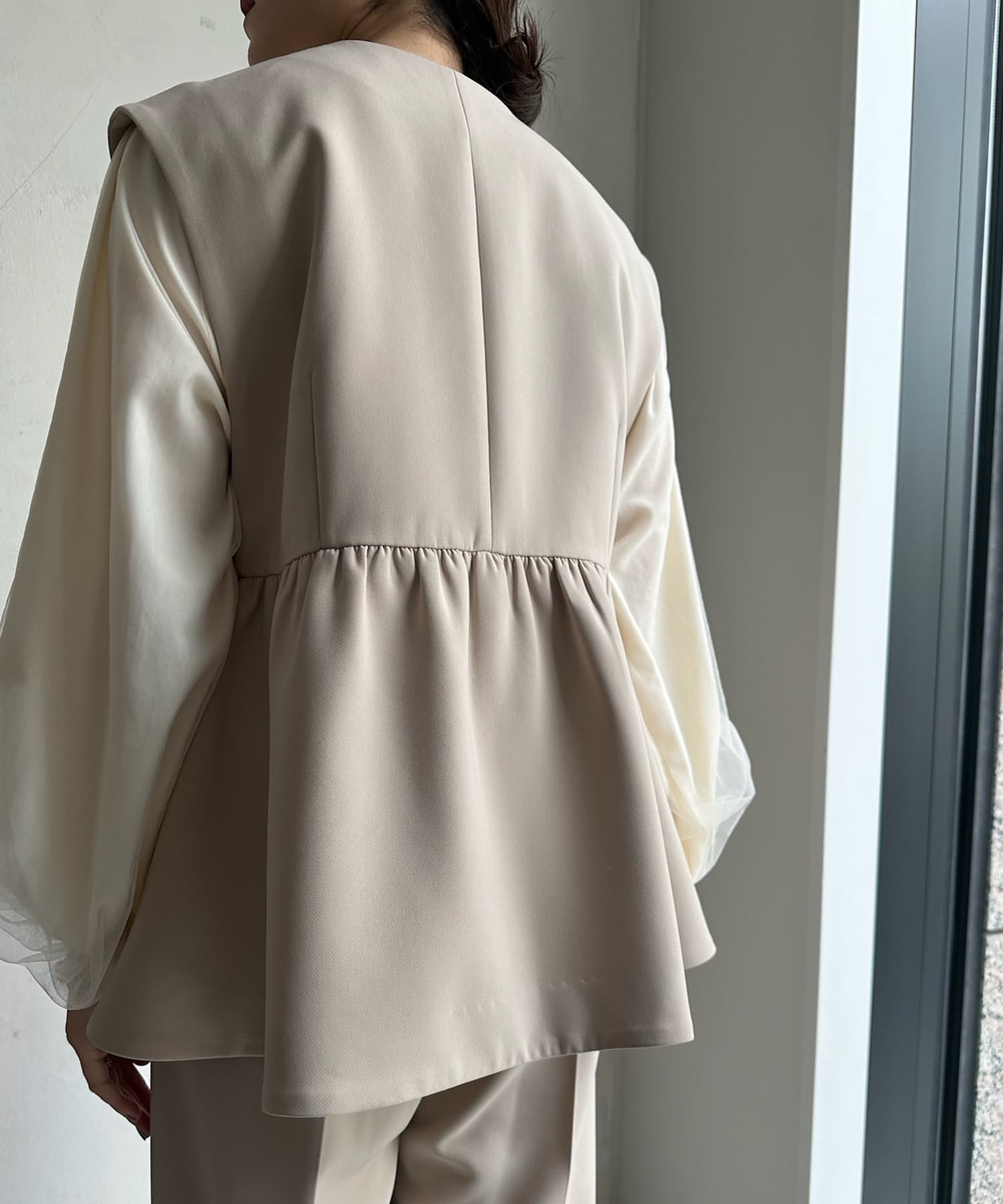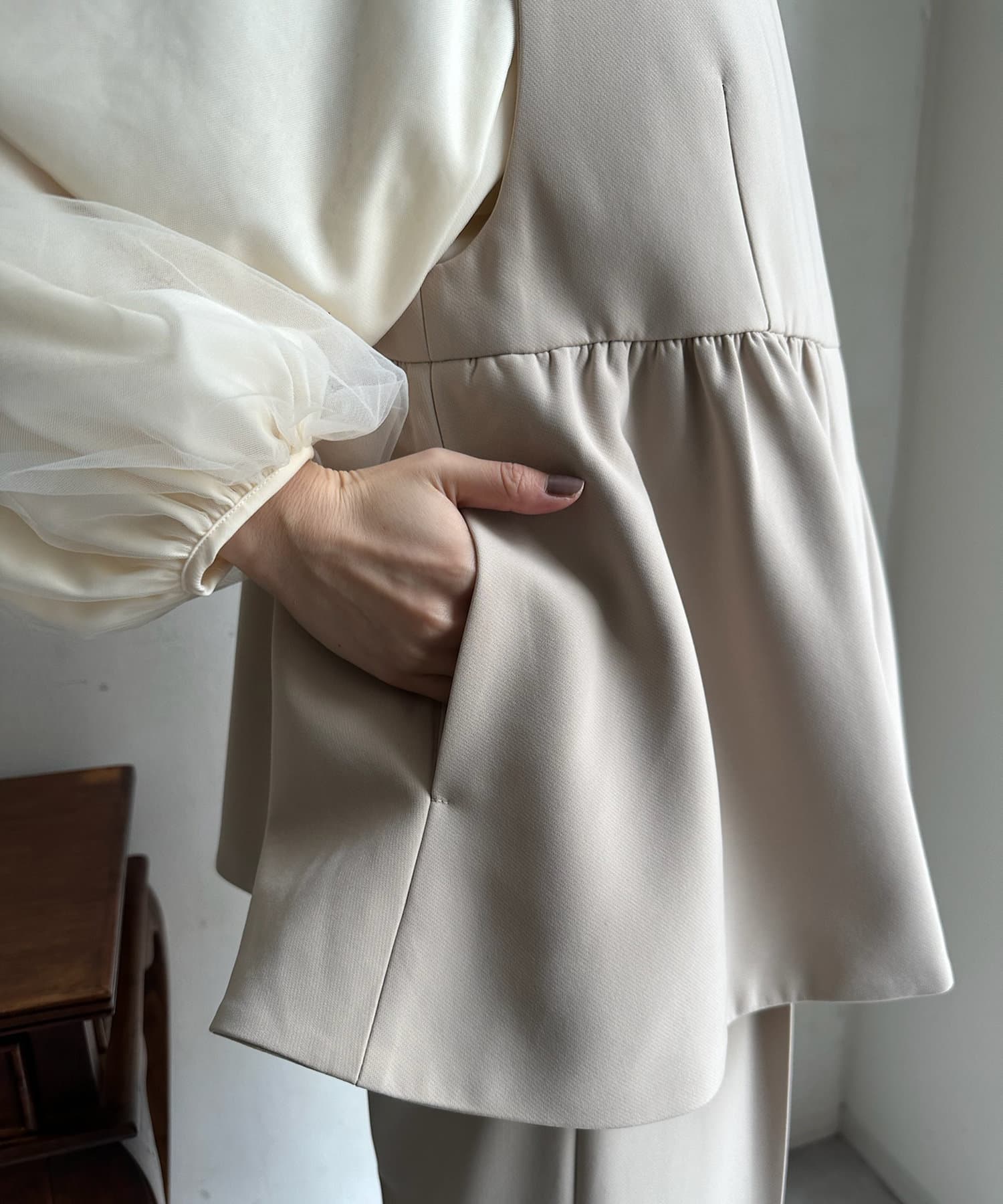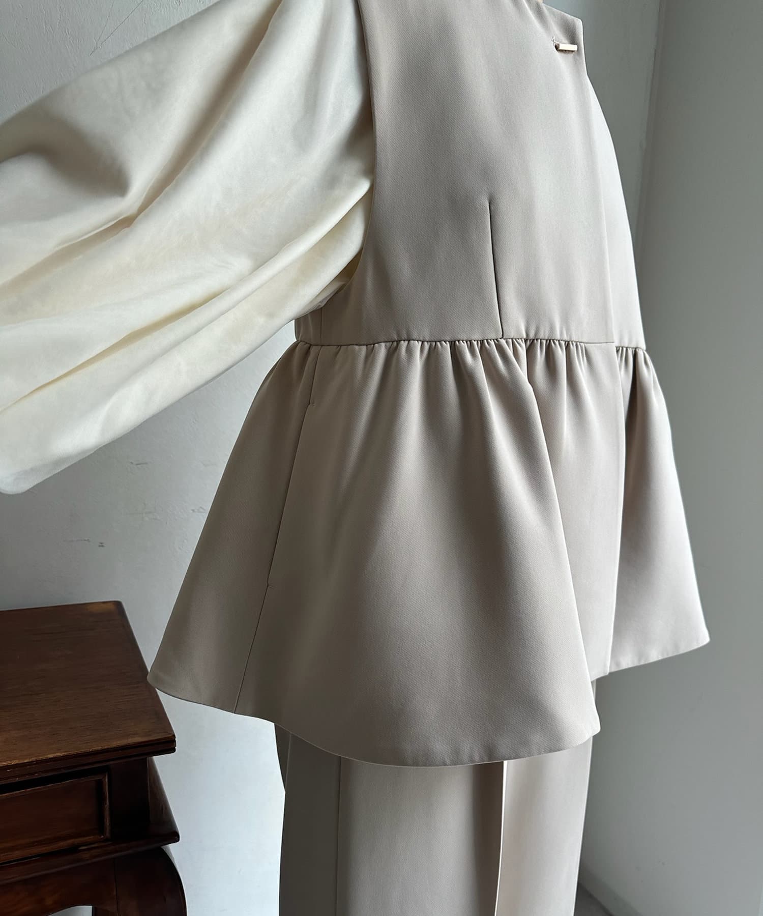 キレイ目スタイルに大人のまとまりをつけてくれるペプラムベスト!