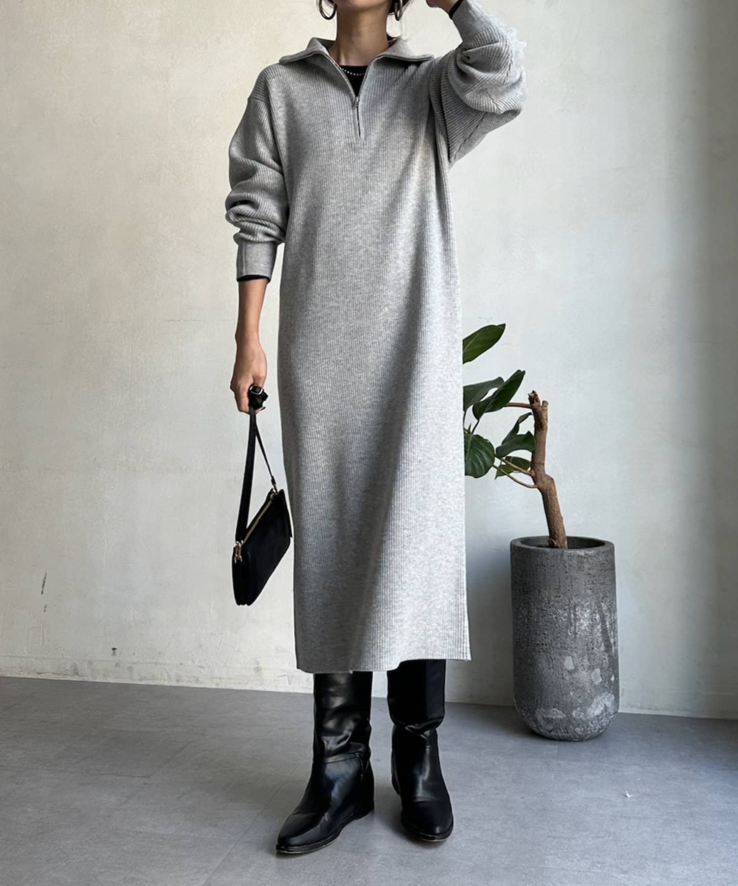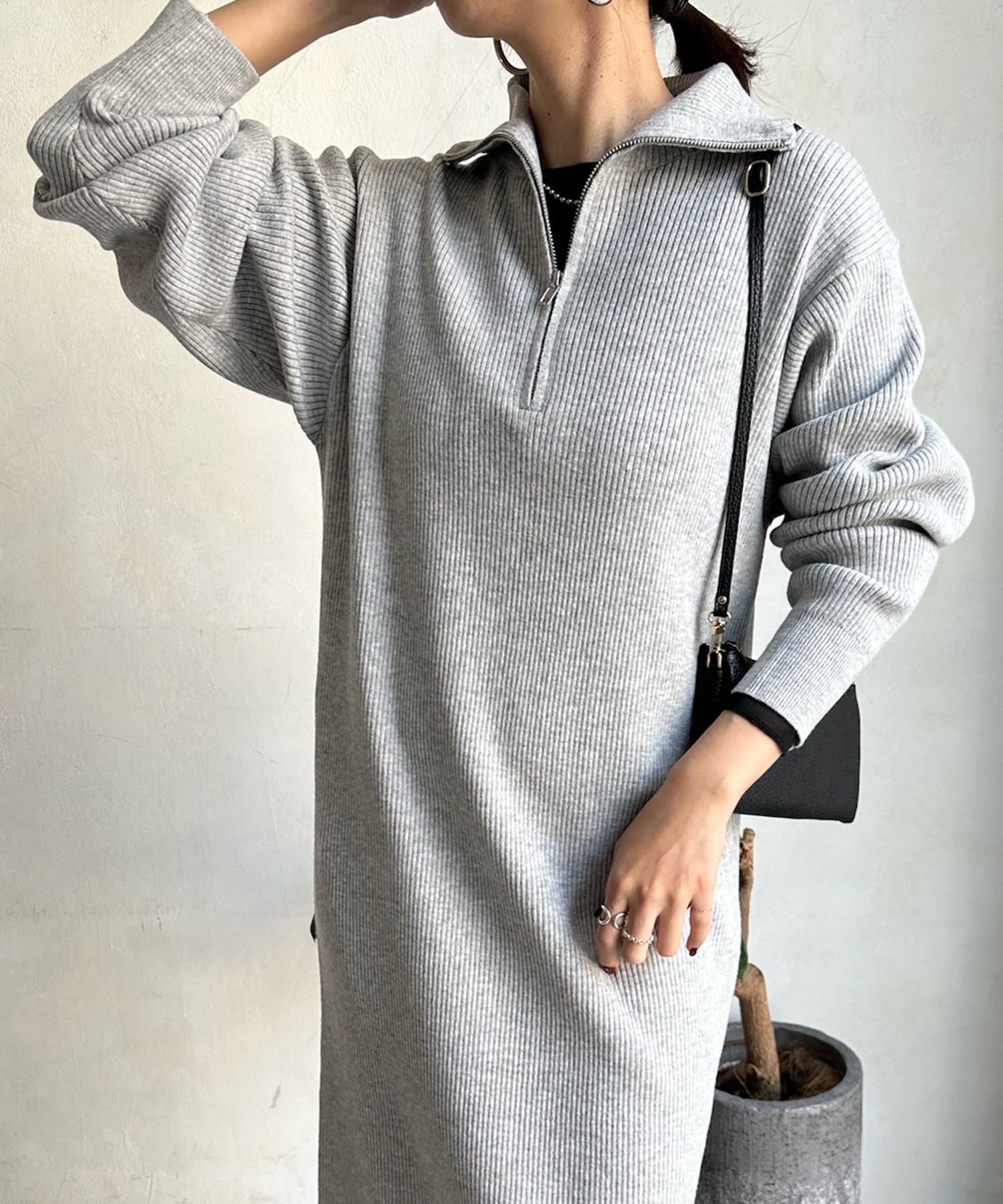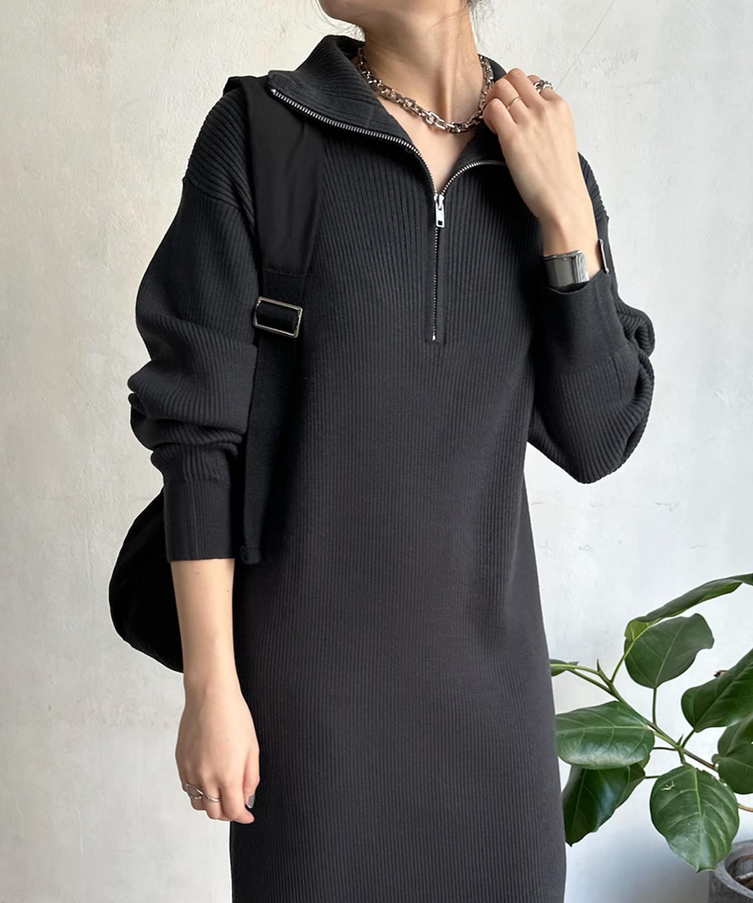 【WEB限定】ハーフジップニットワンピース