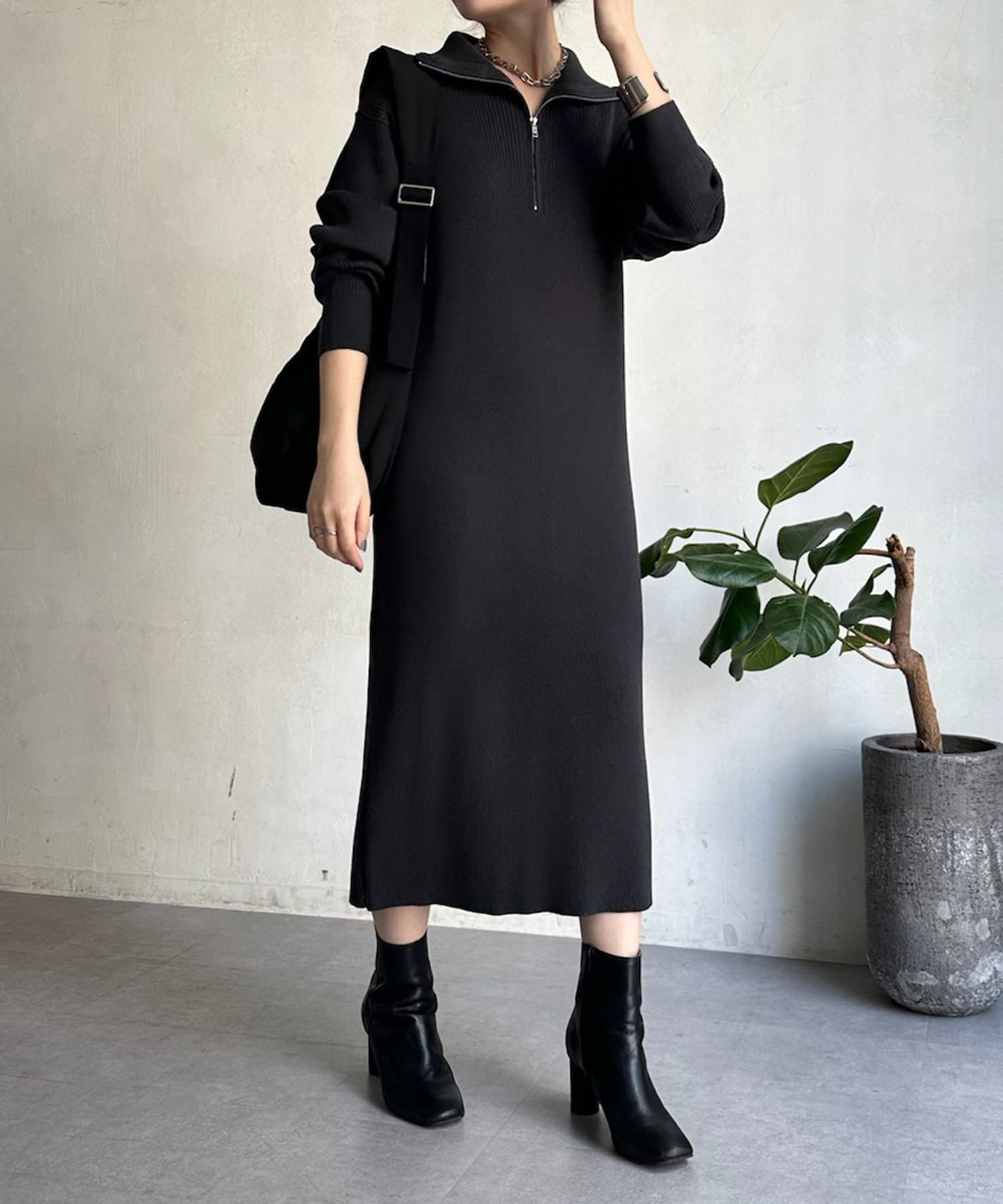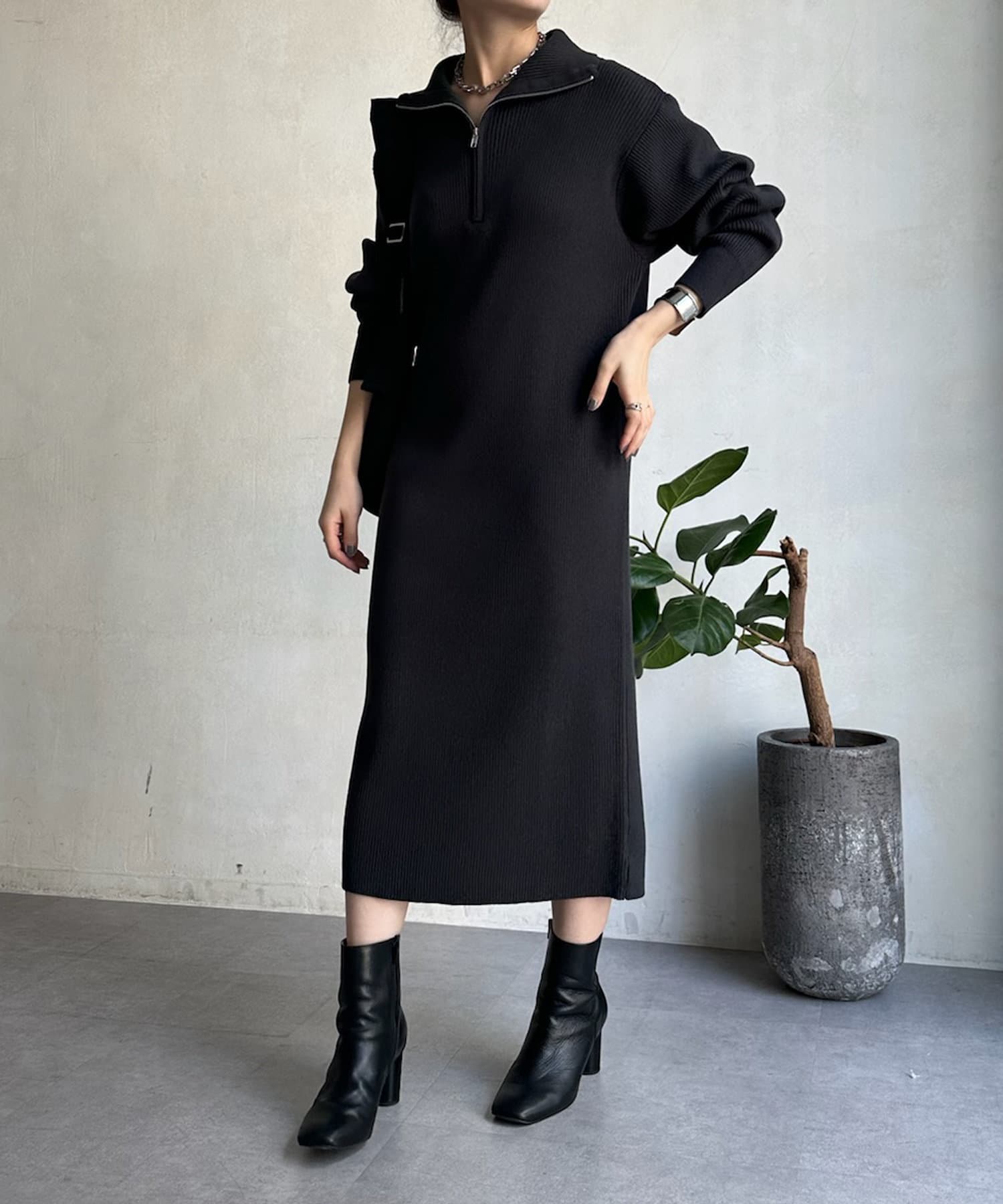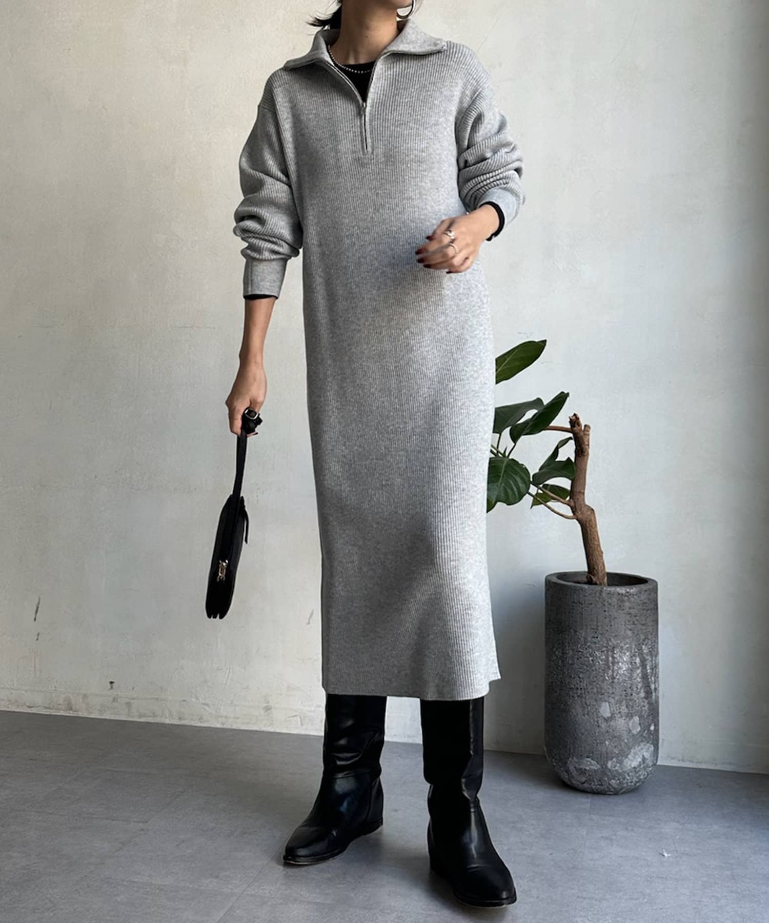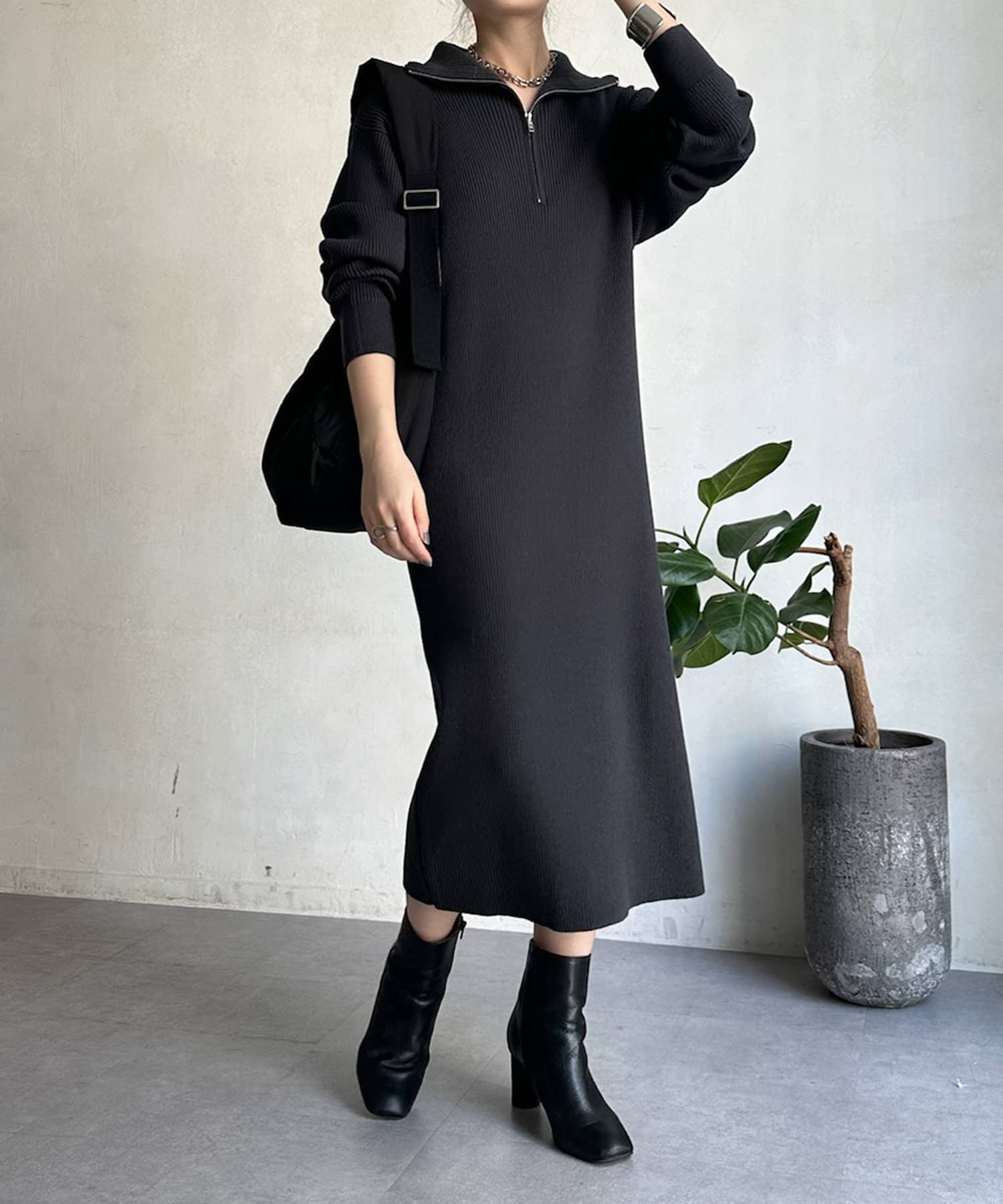 【WEB限定】ハーフジップニットワンピース