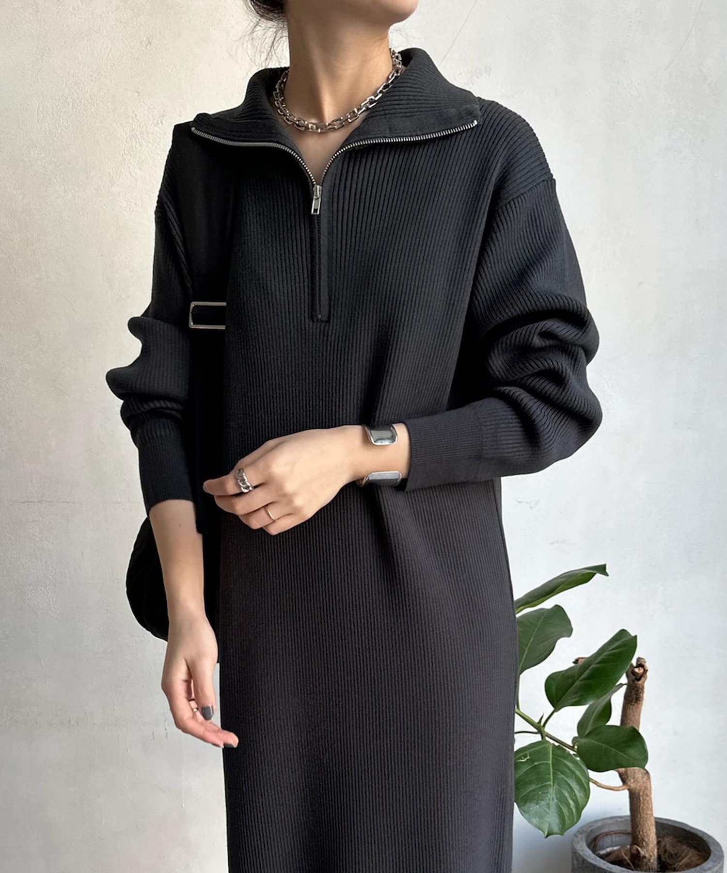 トレンドのハーフジップのニットワンピースが登場!
