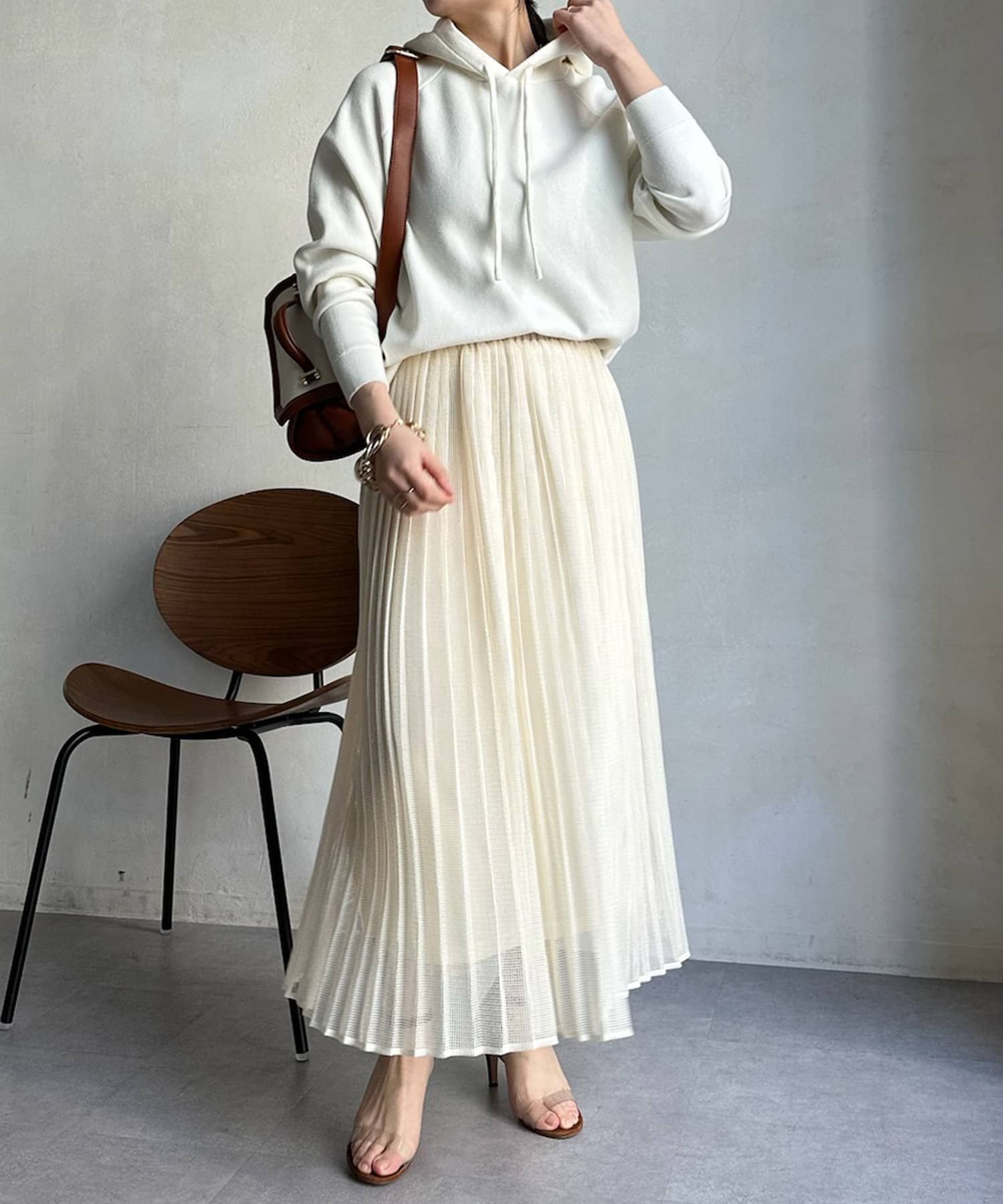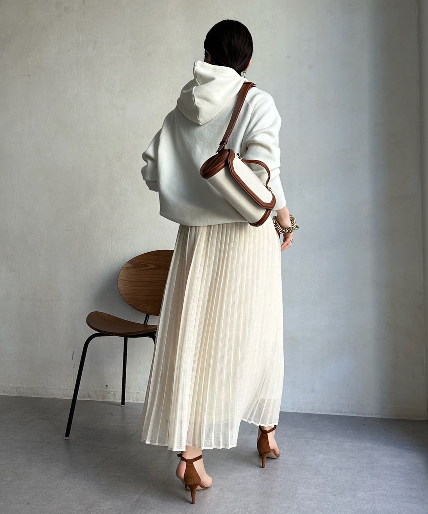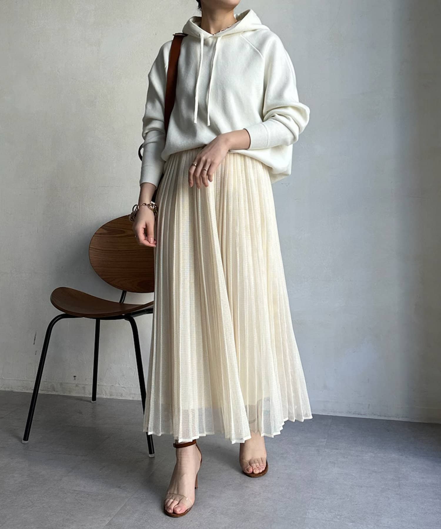 プリーツが広がらず落ち着ついたシルエットのため、ボリュームトップスとも好相性です!