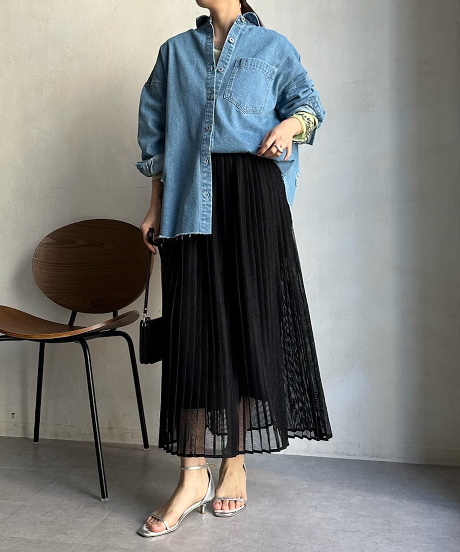 たっぷりボリュームで女性らしい印象のメッシュスカート。