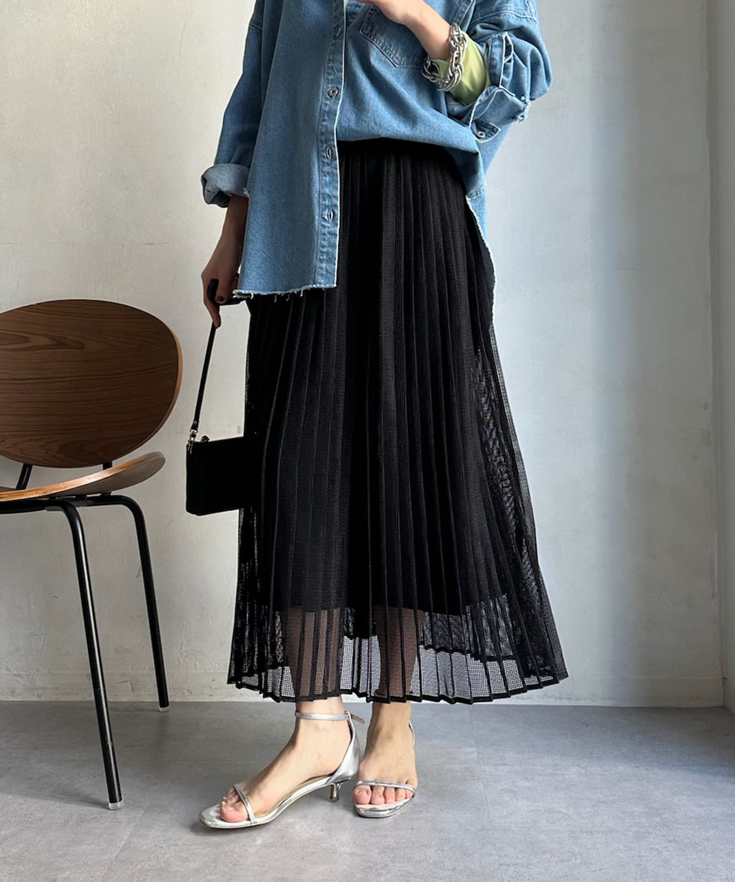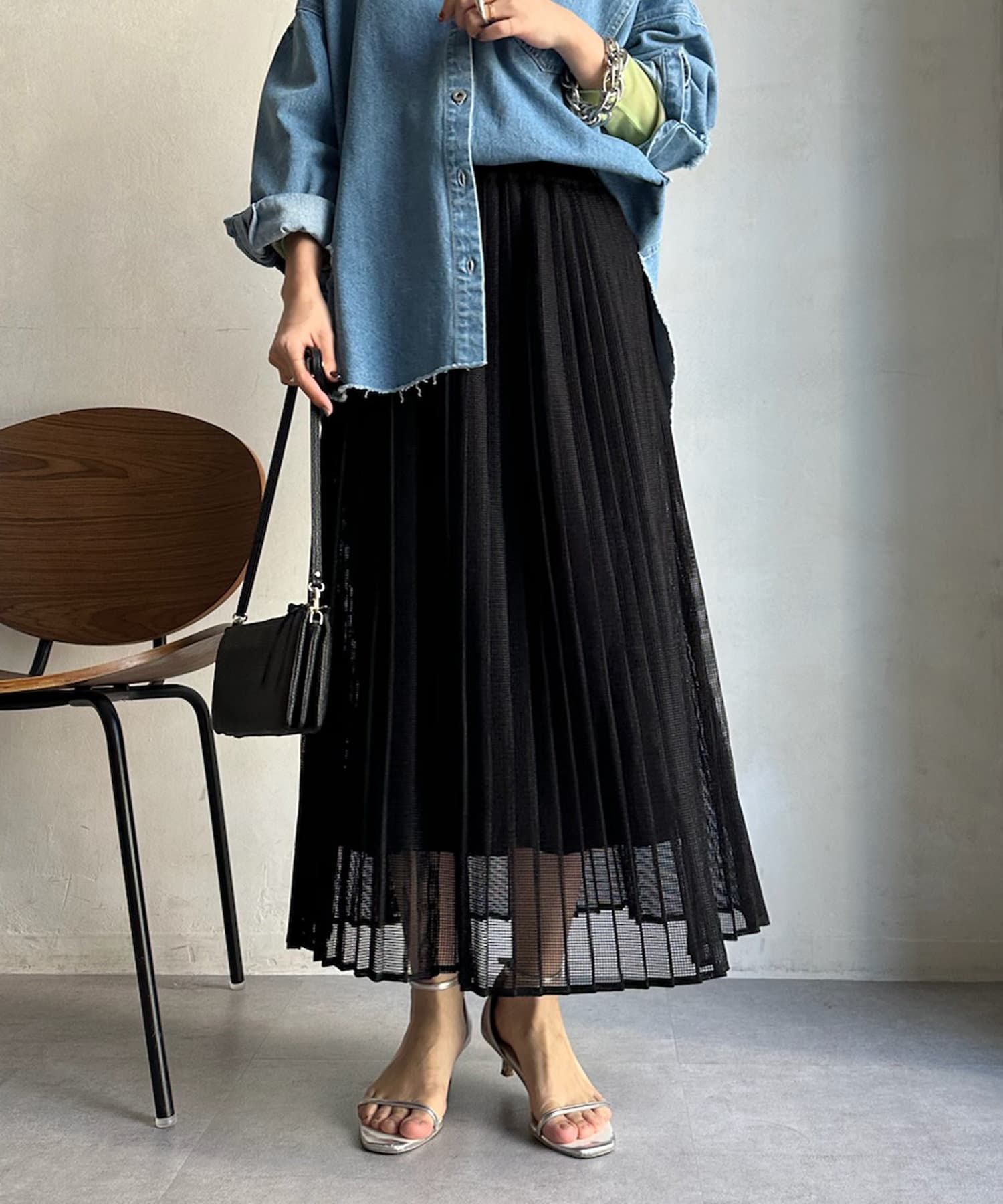 • DOUDOU(ドゥドゥ) 【WEB限定】メッシュプリーツスカート
