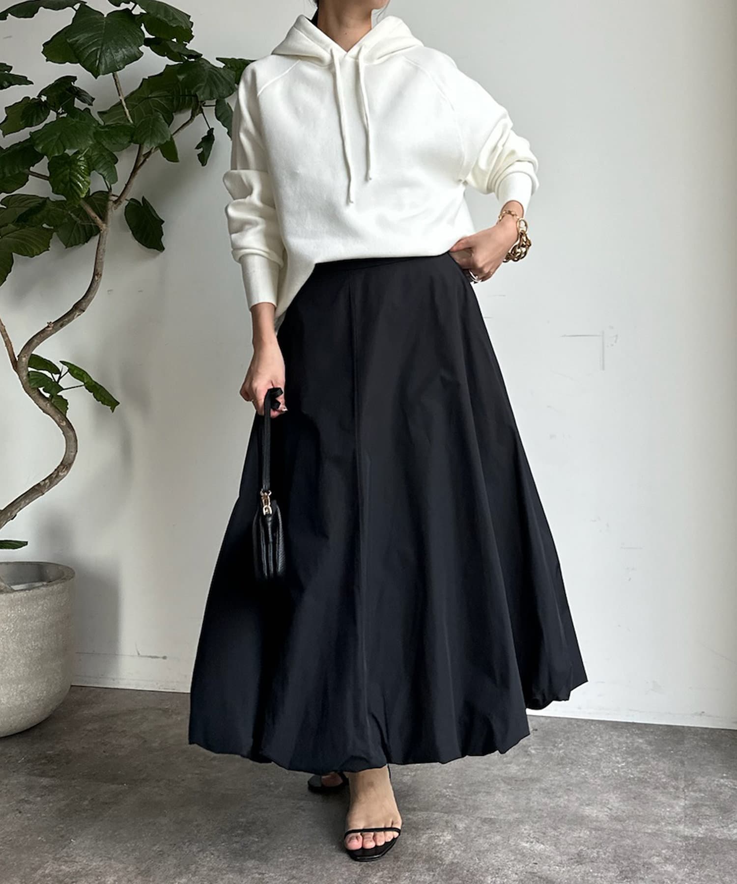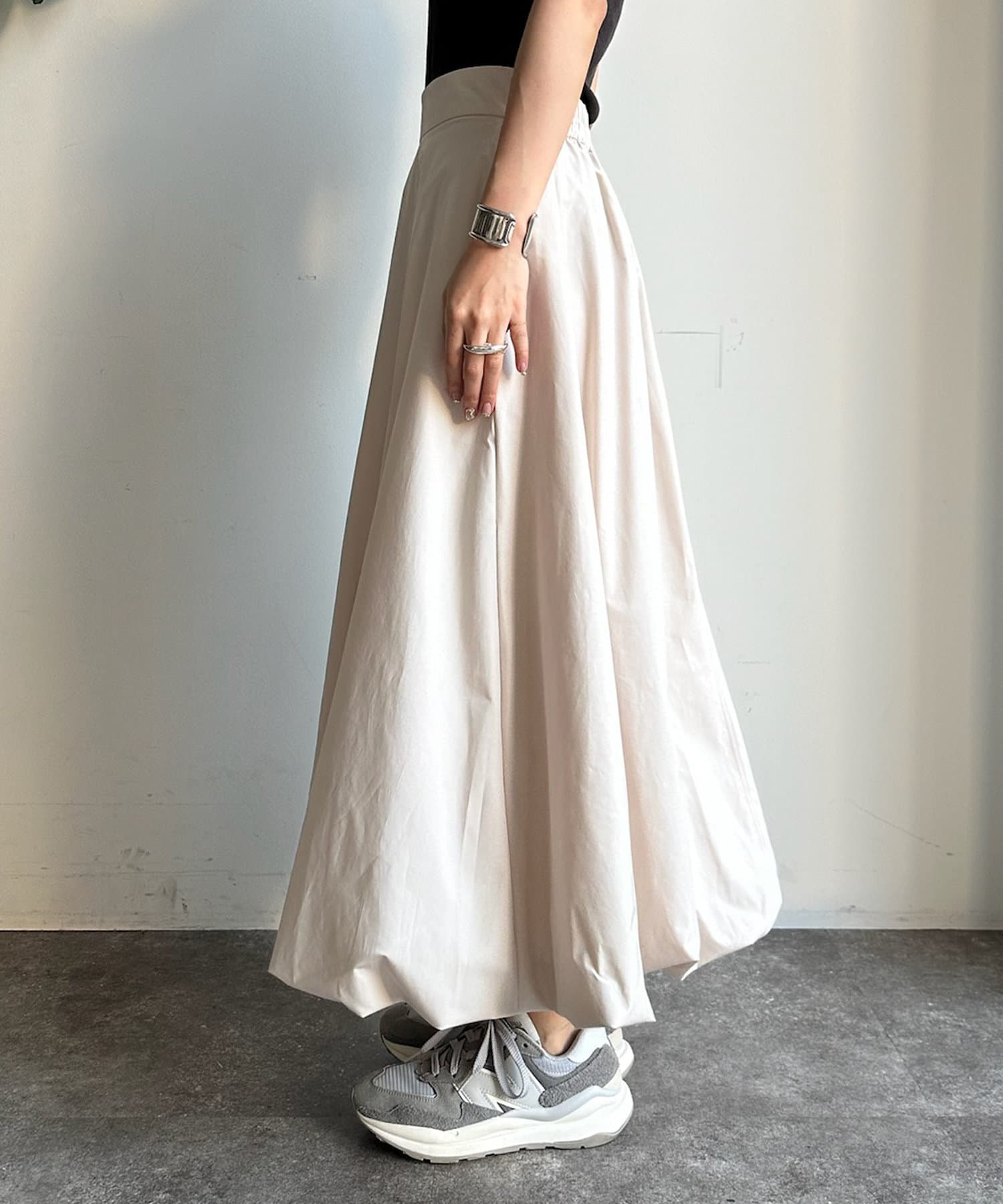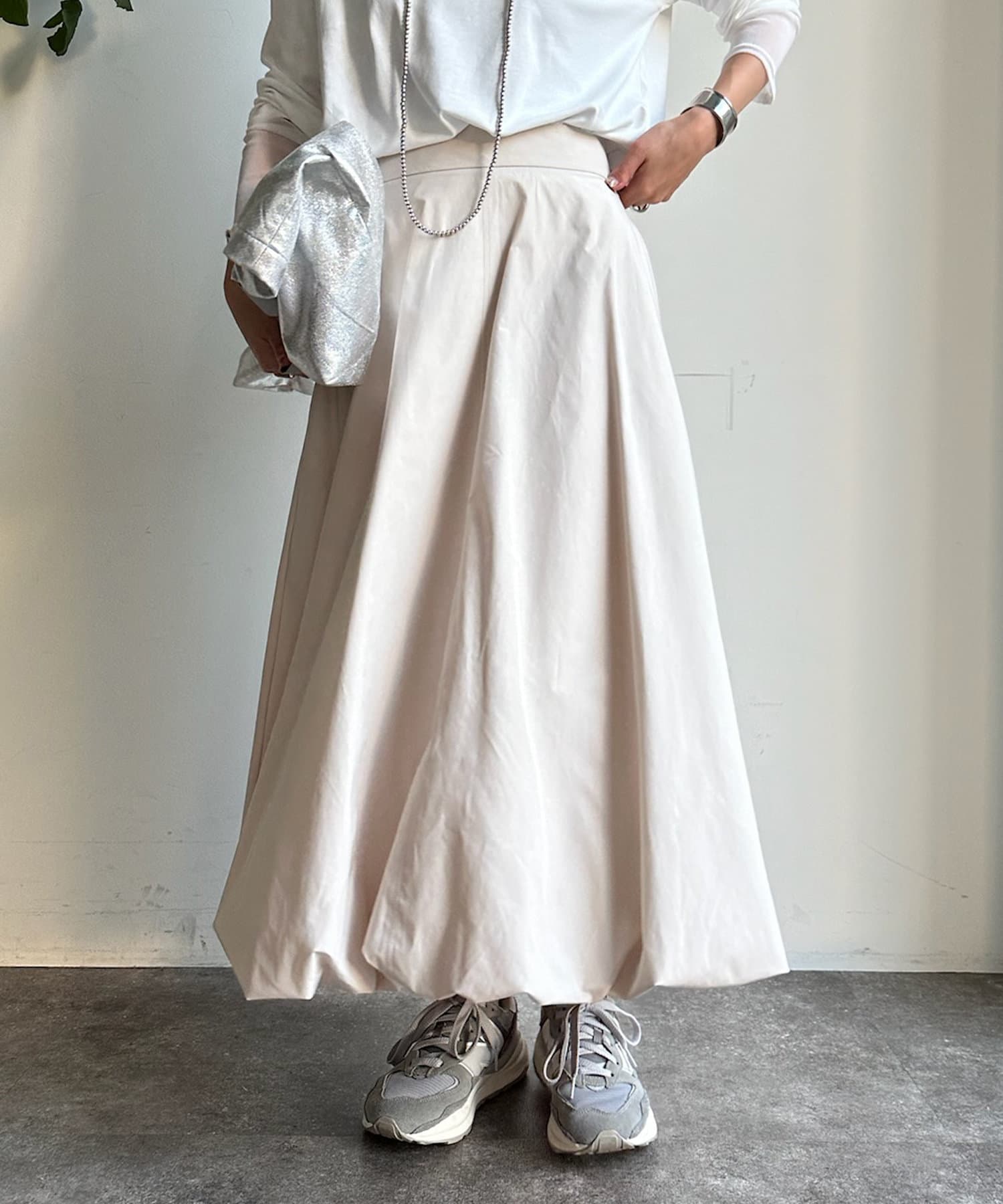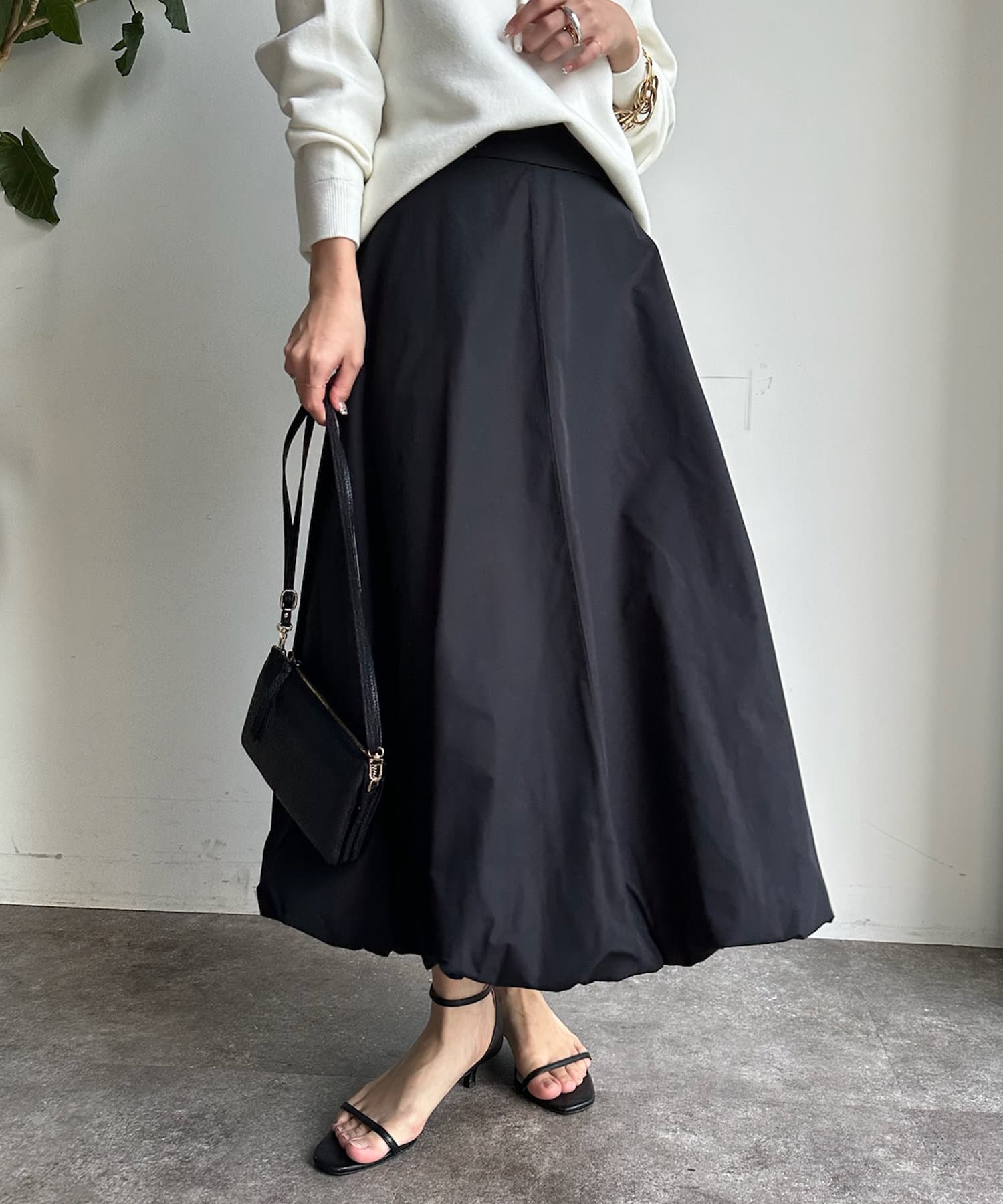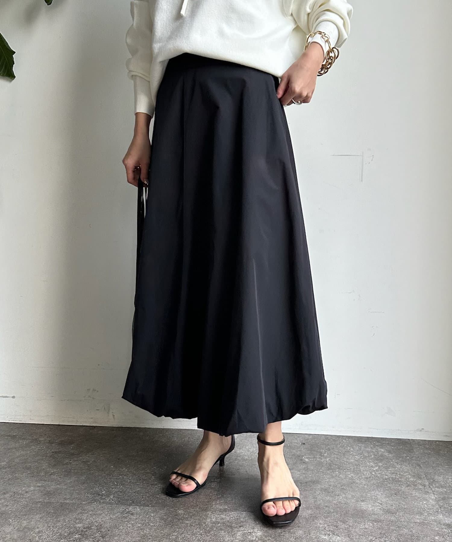 ふんわり広がるボリュームが女性らしさとこなれ感を演出するバルーンスカート。