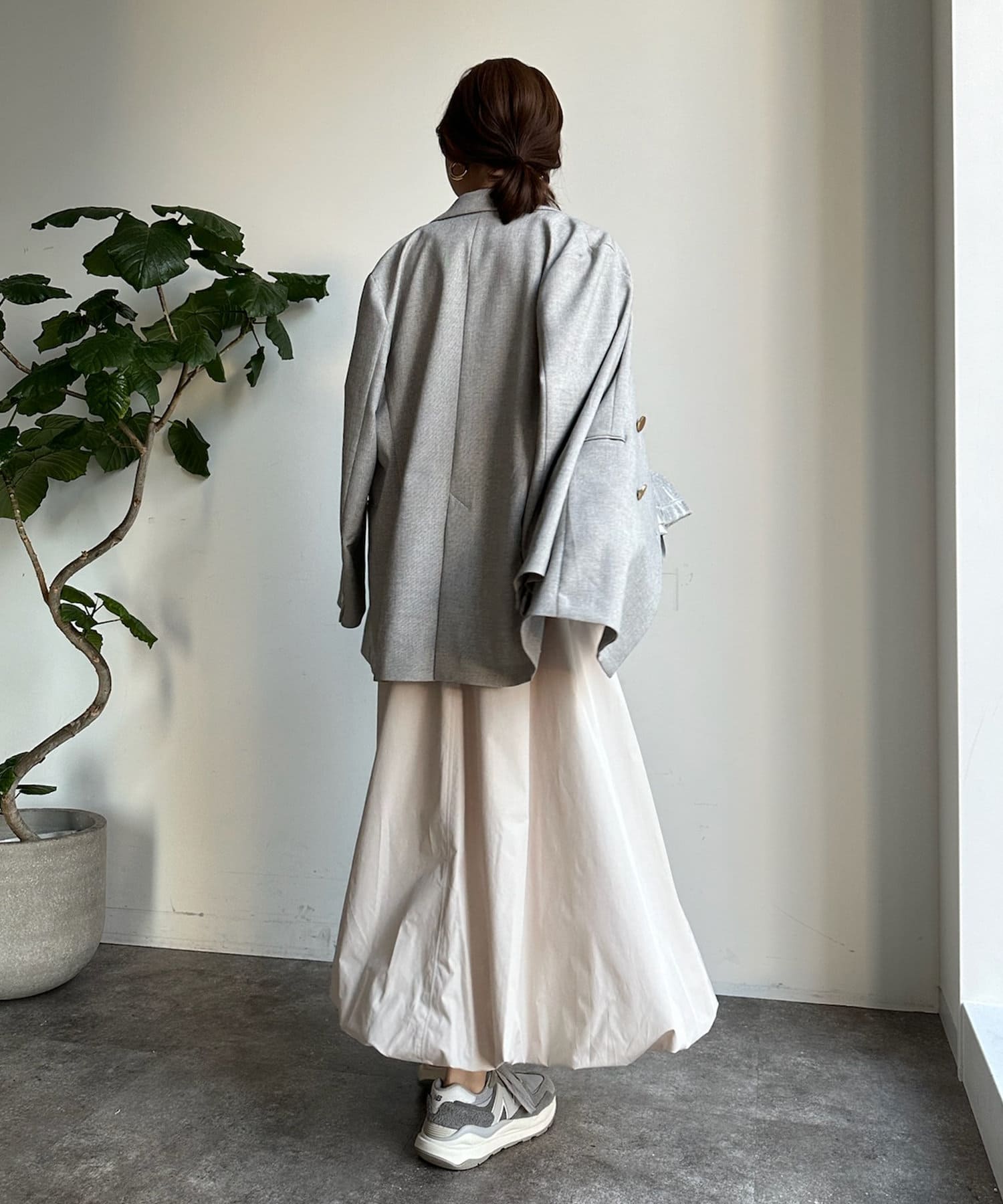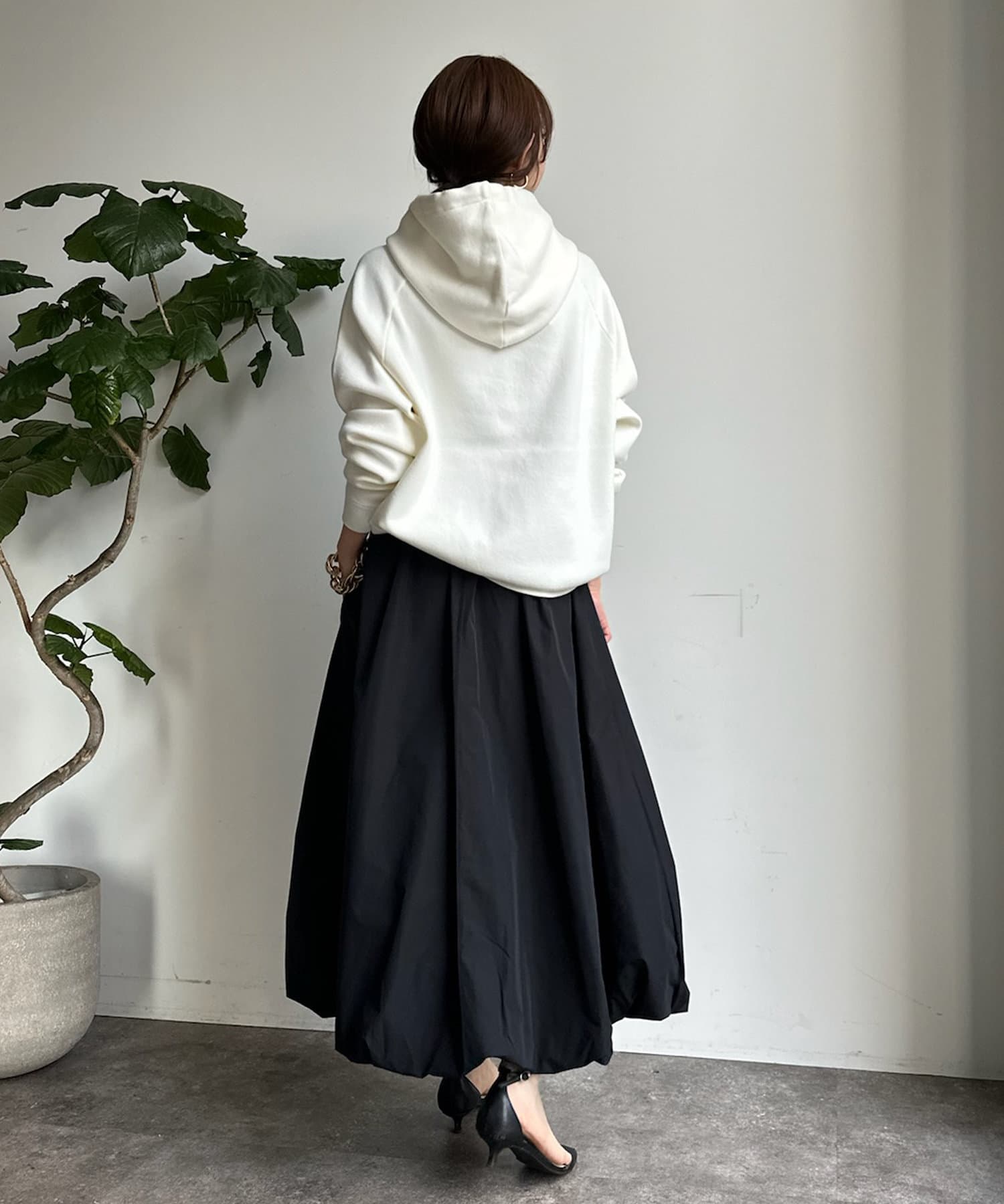 存在感のあるシルエットのため、シンプルなアイテムと合わせて着まわしていただけますよ。