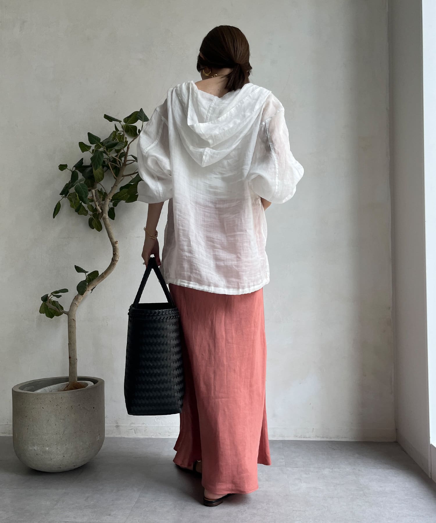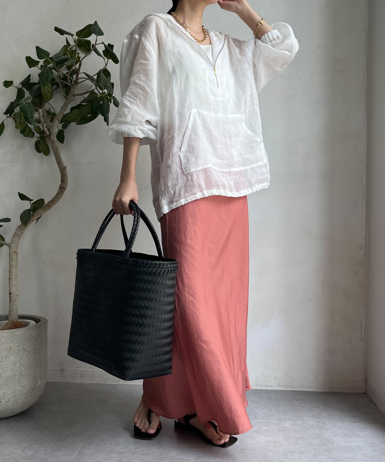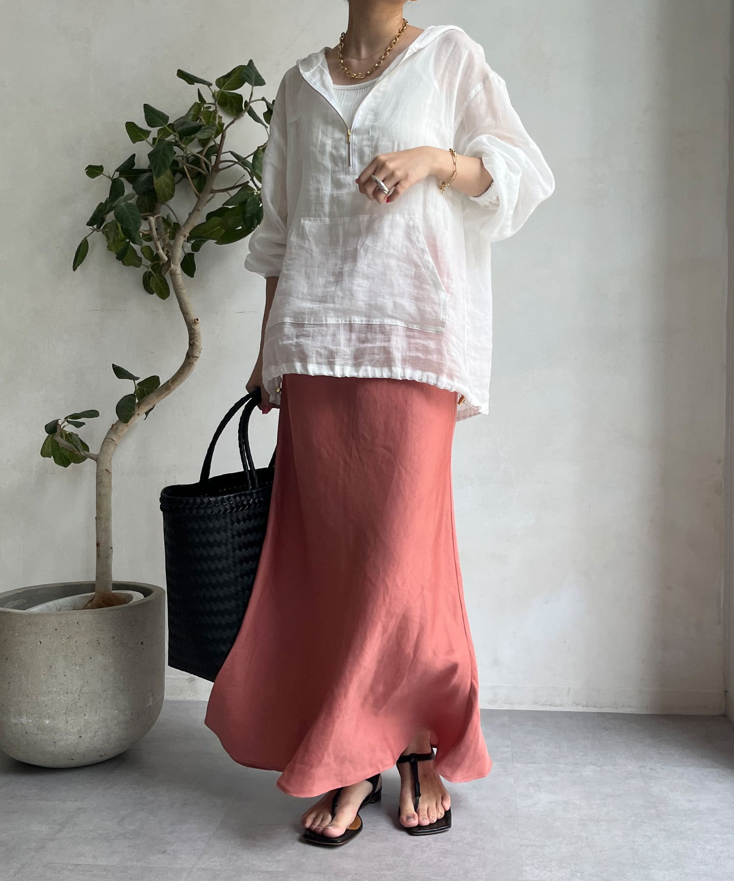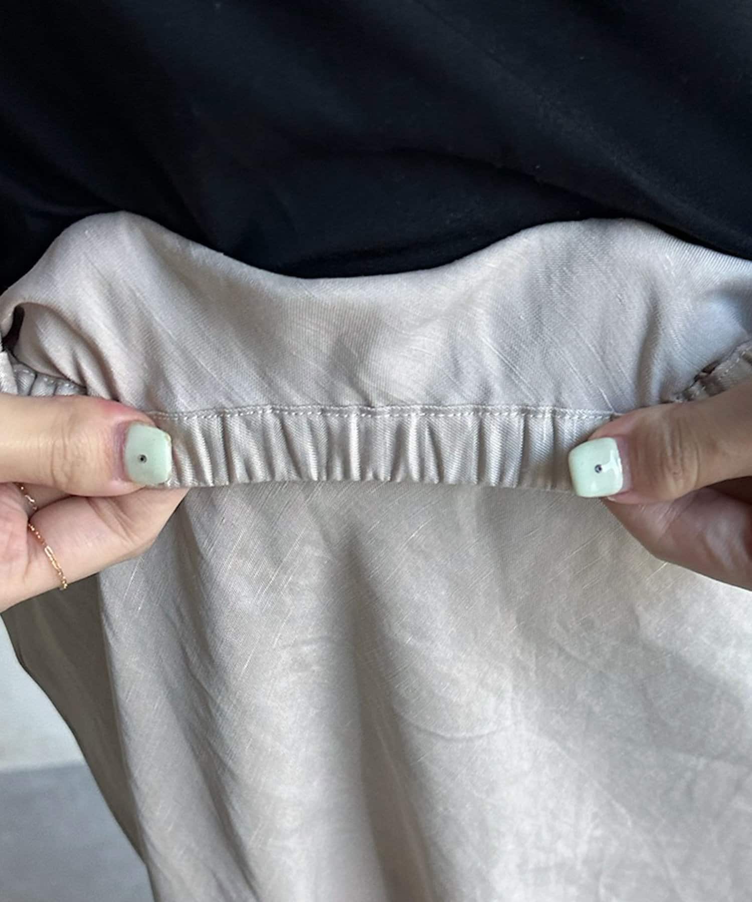 滑らかなキュプラ素材に、ナチュラルな風合いのリネン素材を混ぜた軽やかな生地感で、リラクシーな着心地に。