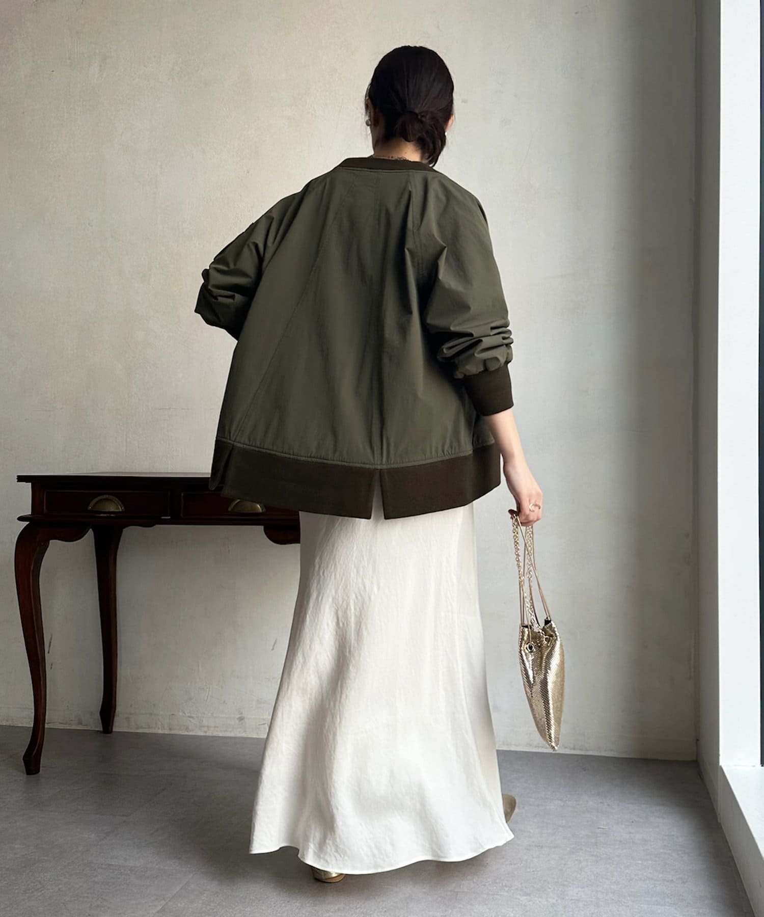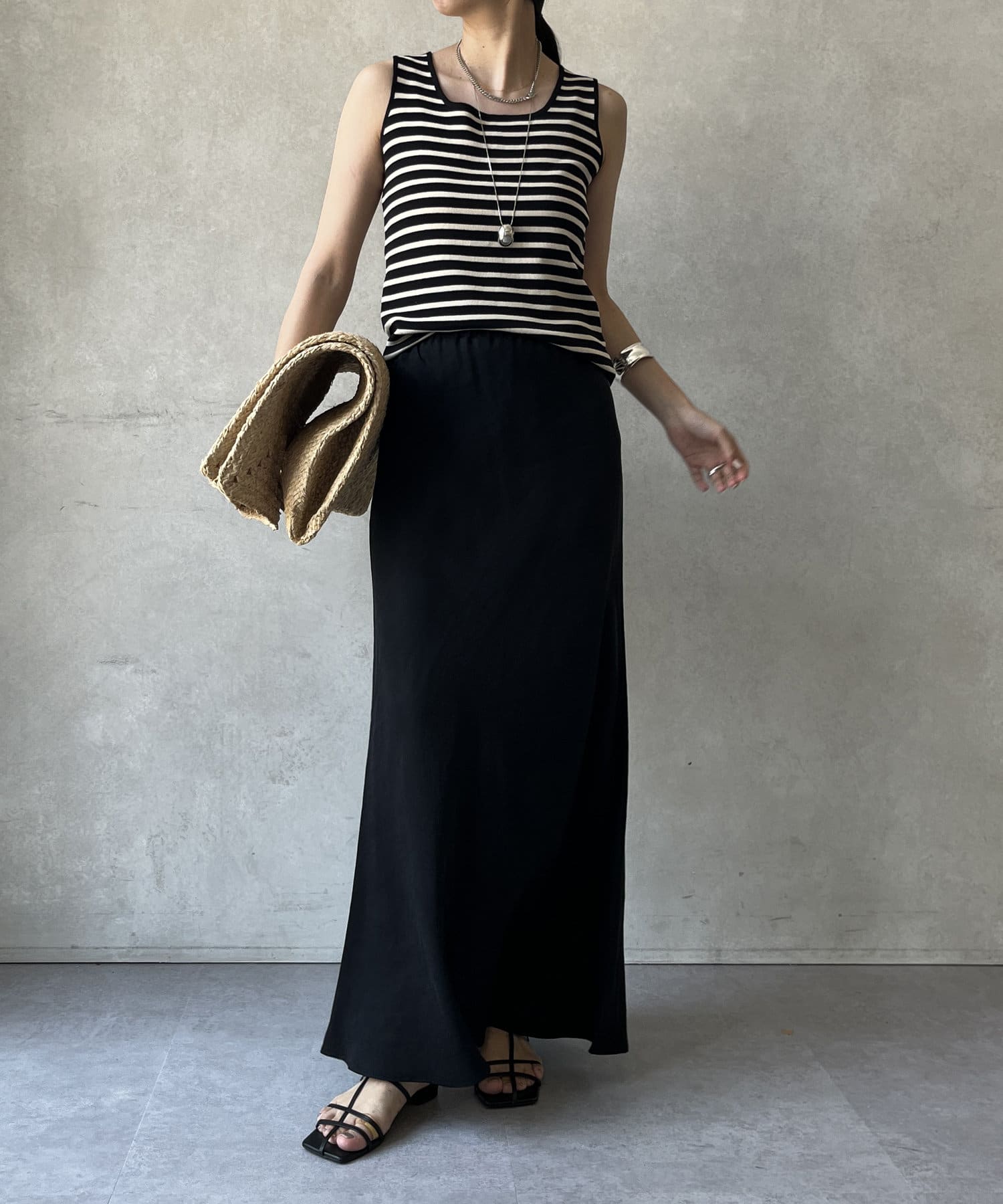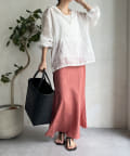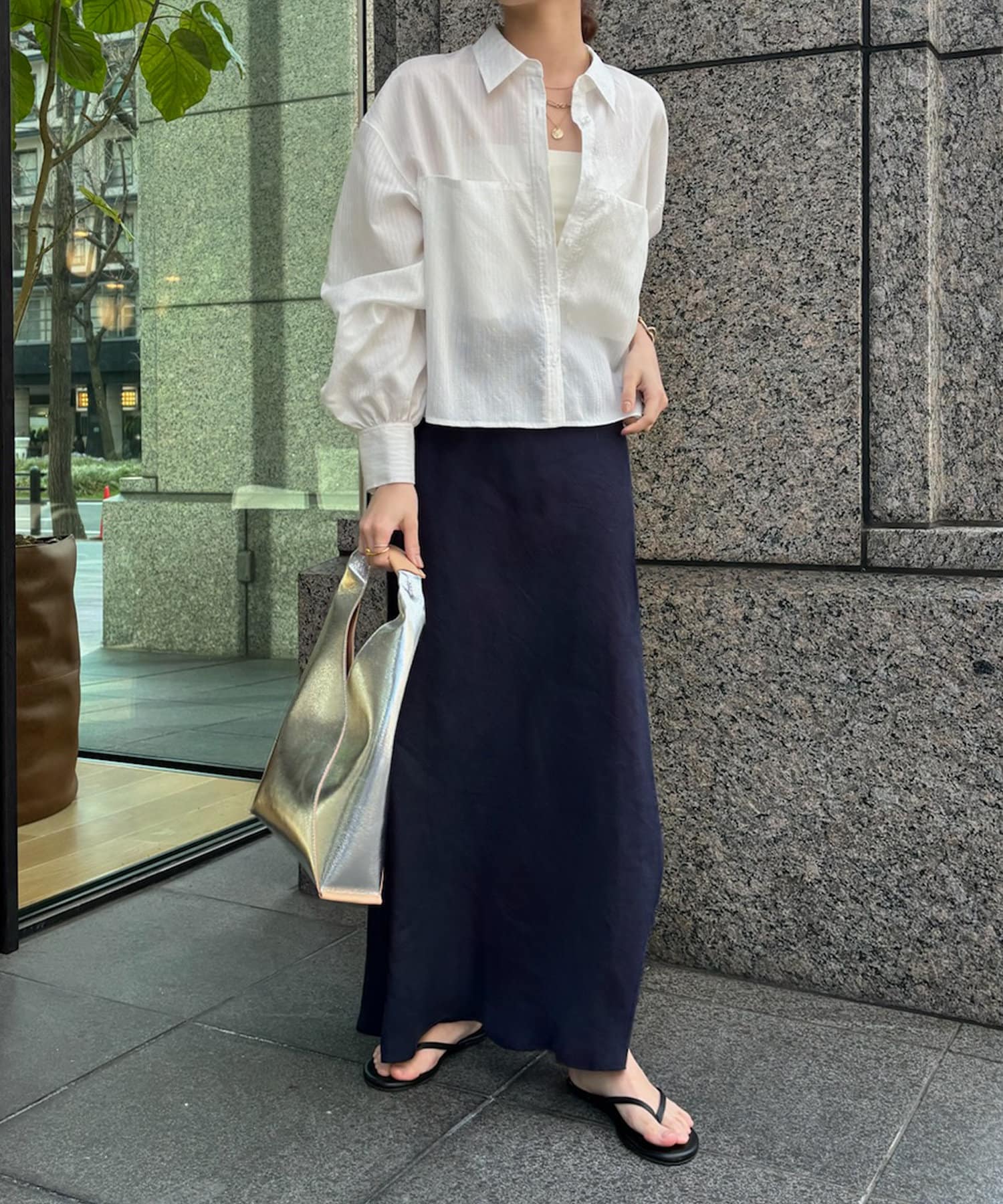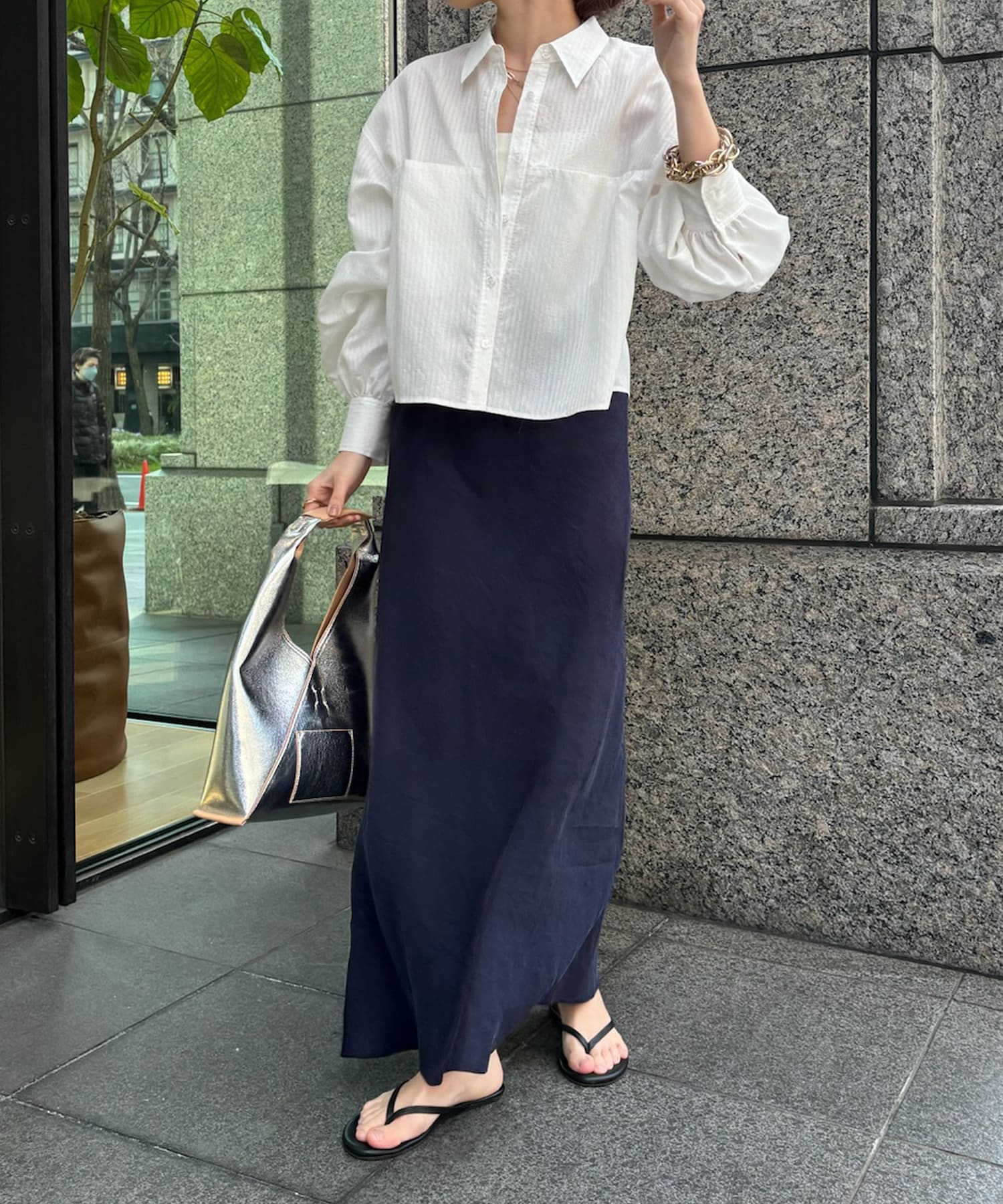 滑らかなキュプラ素材に、ナチュラルな風合いのリネン素材を混ぜた軽やかな生地感で、リラクシーな着心地に。