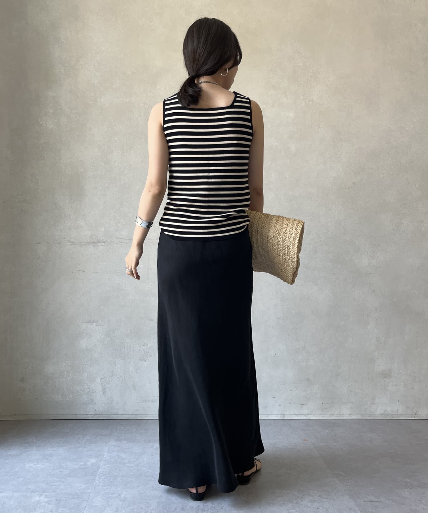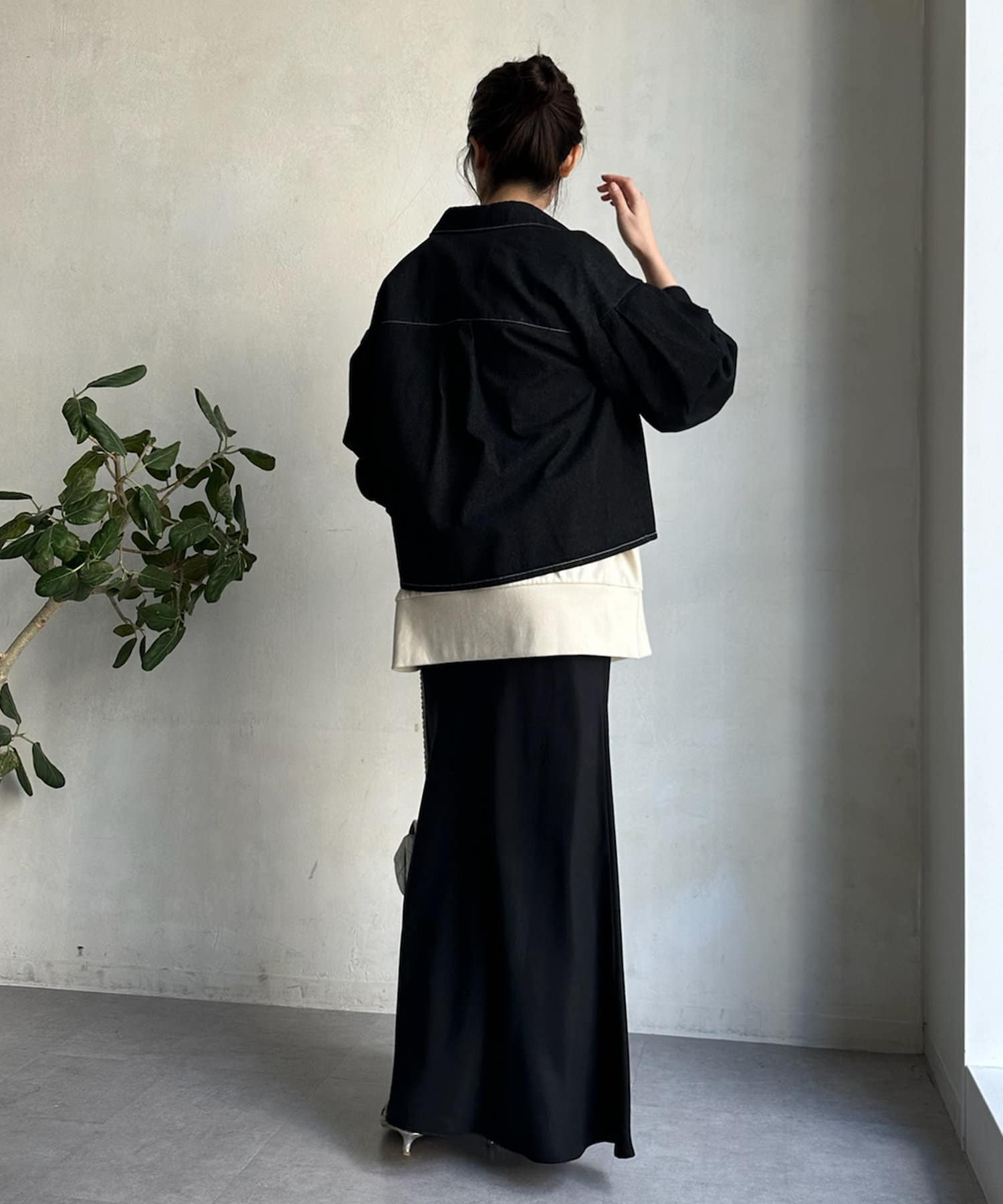 腰回りはすっきりと、裾に向かって華やかに広がるマーメイドラインがポイントです。