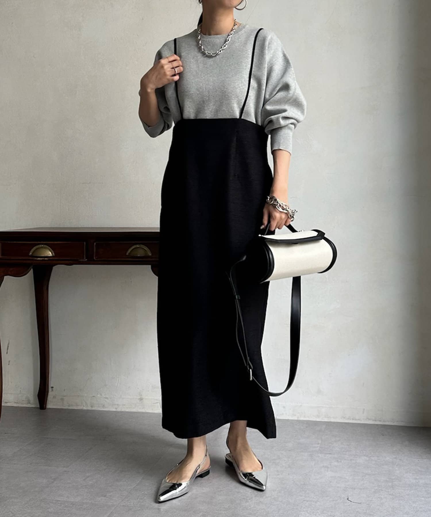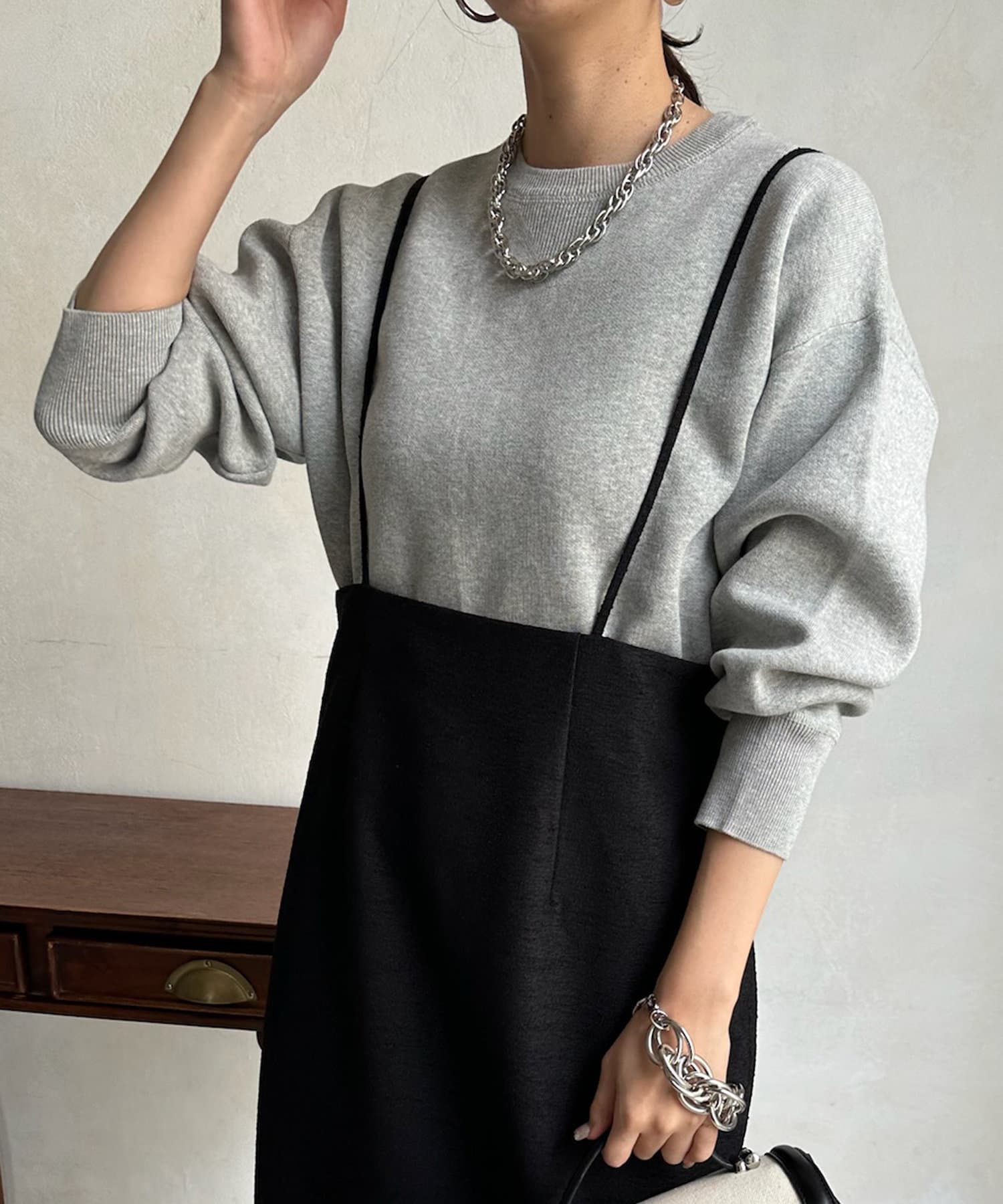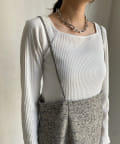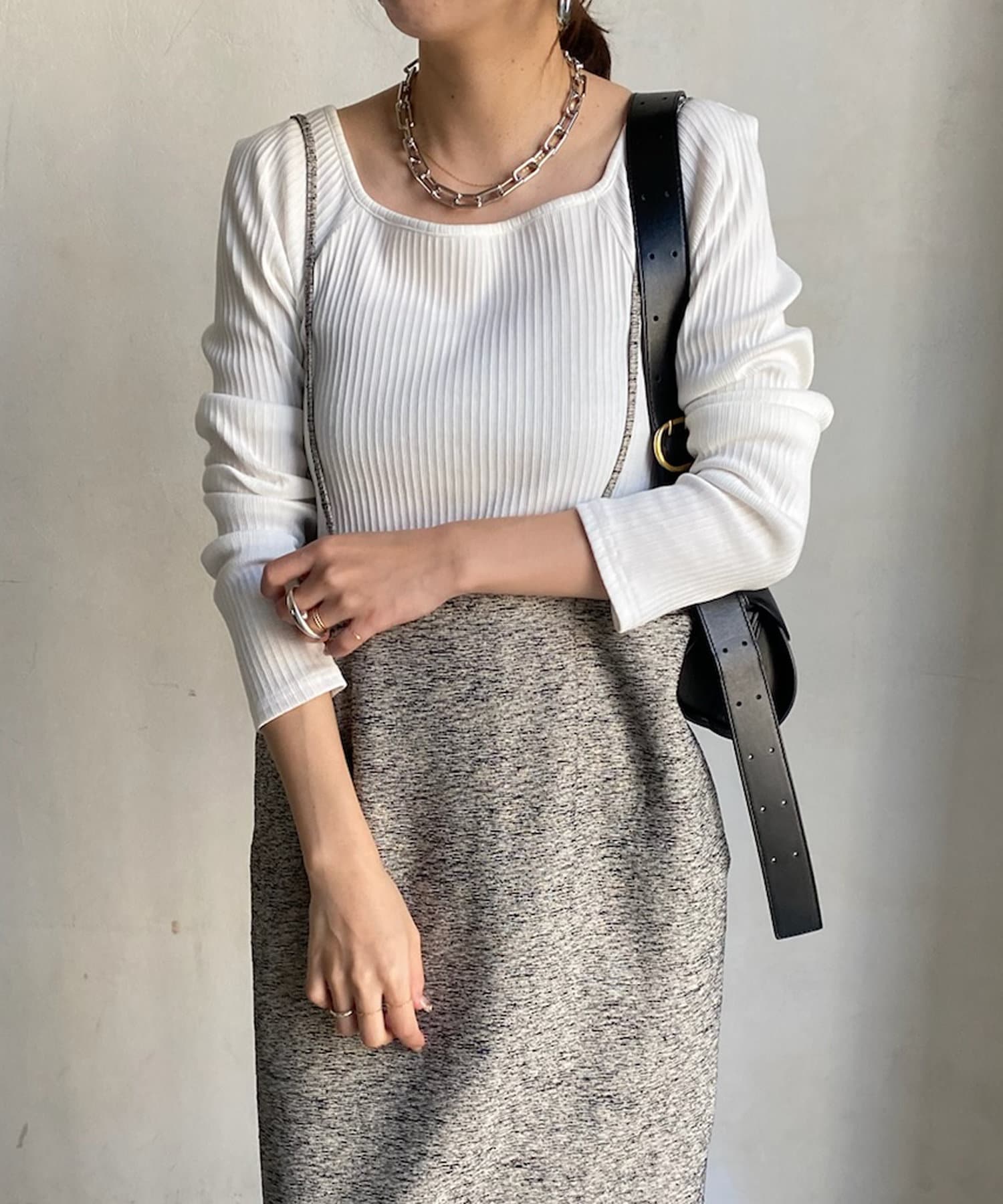 華奢なサスペンダーをプラスしたデザインが着こなしの幅を広げてくれるアイテムです。