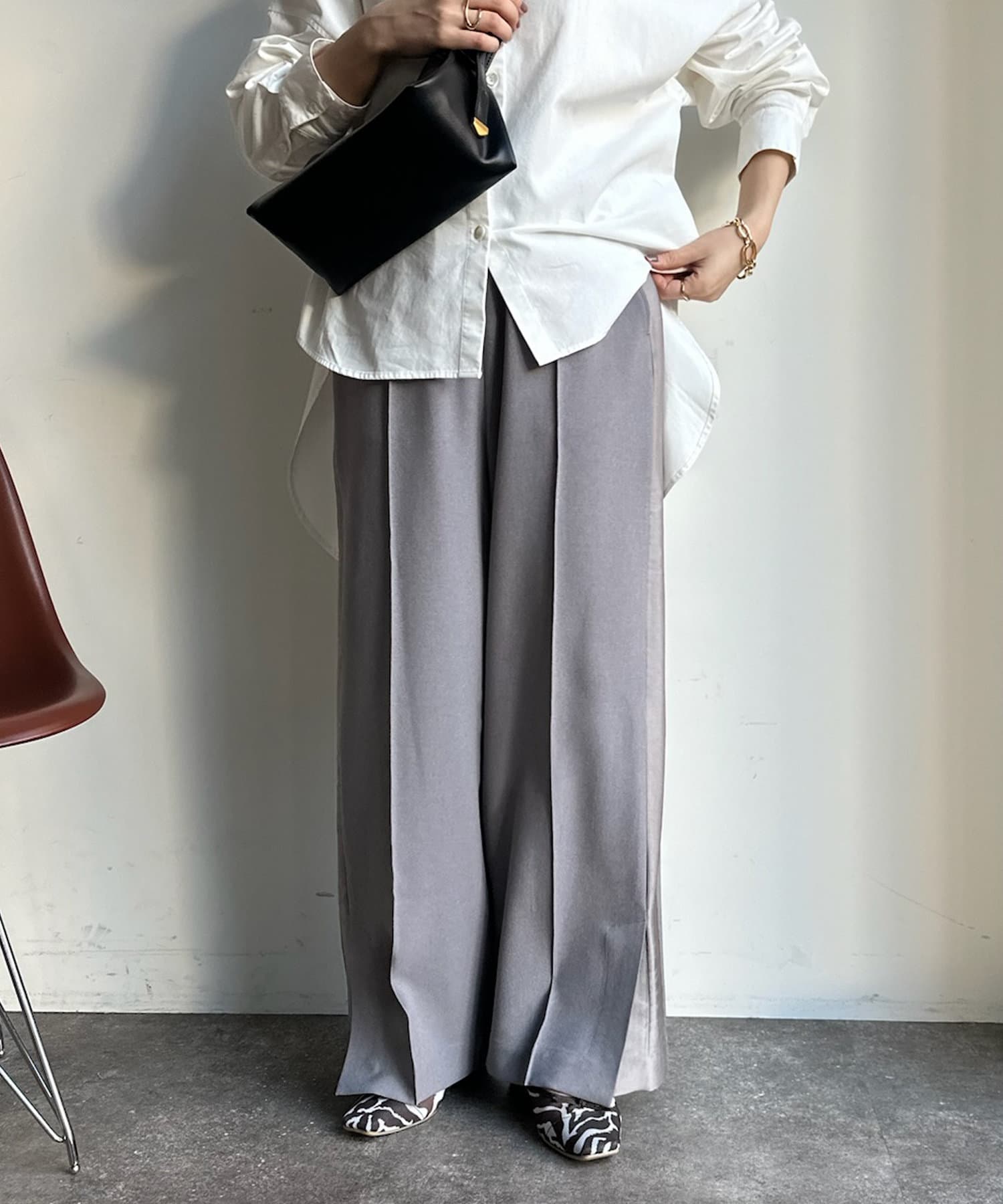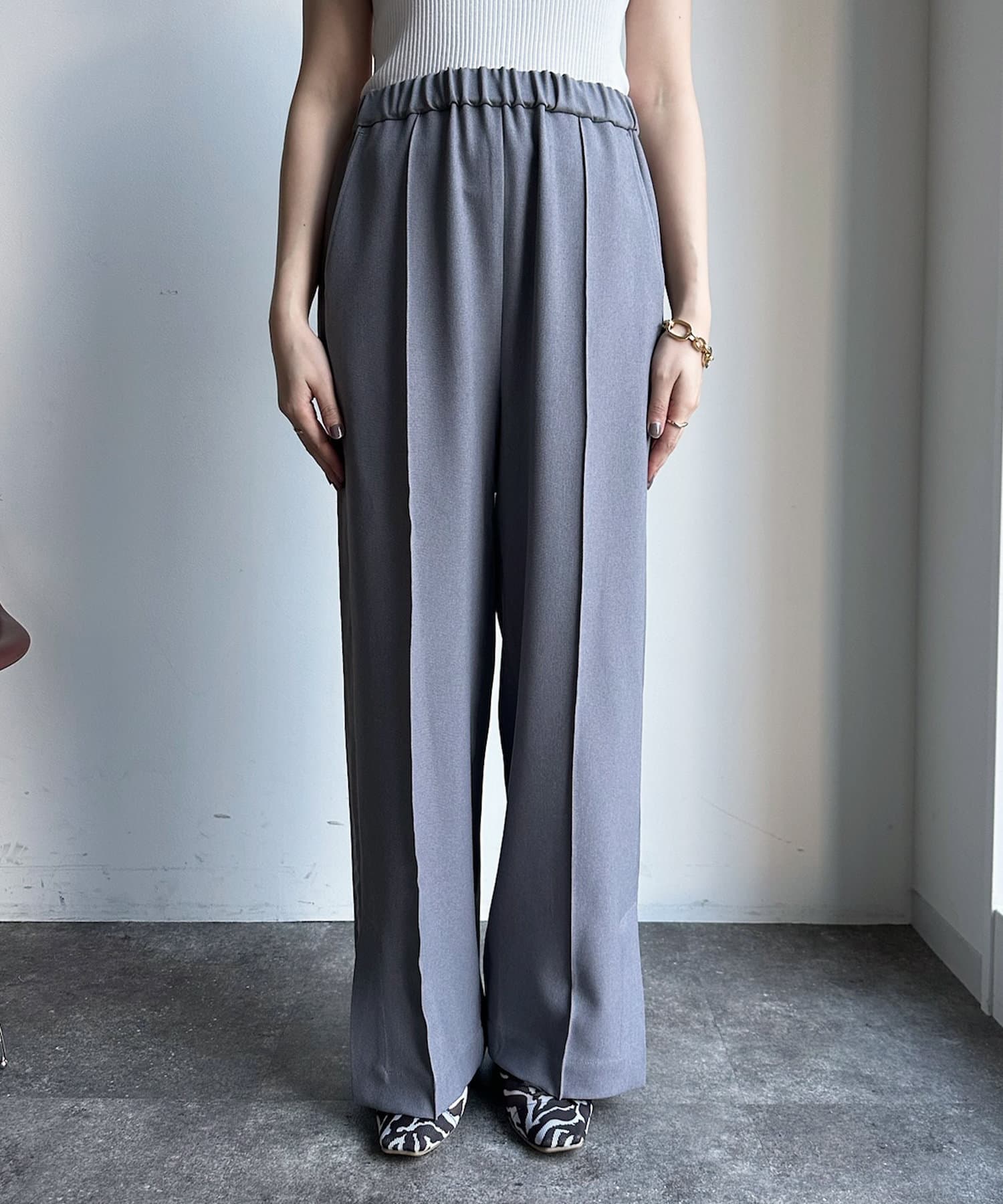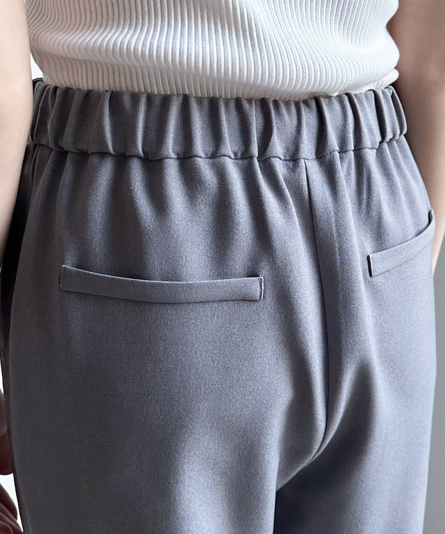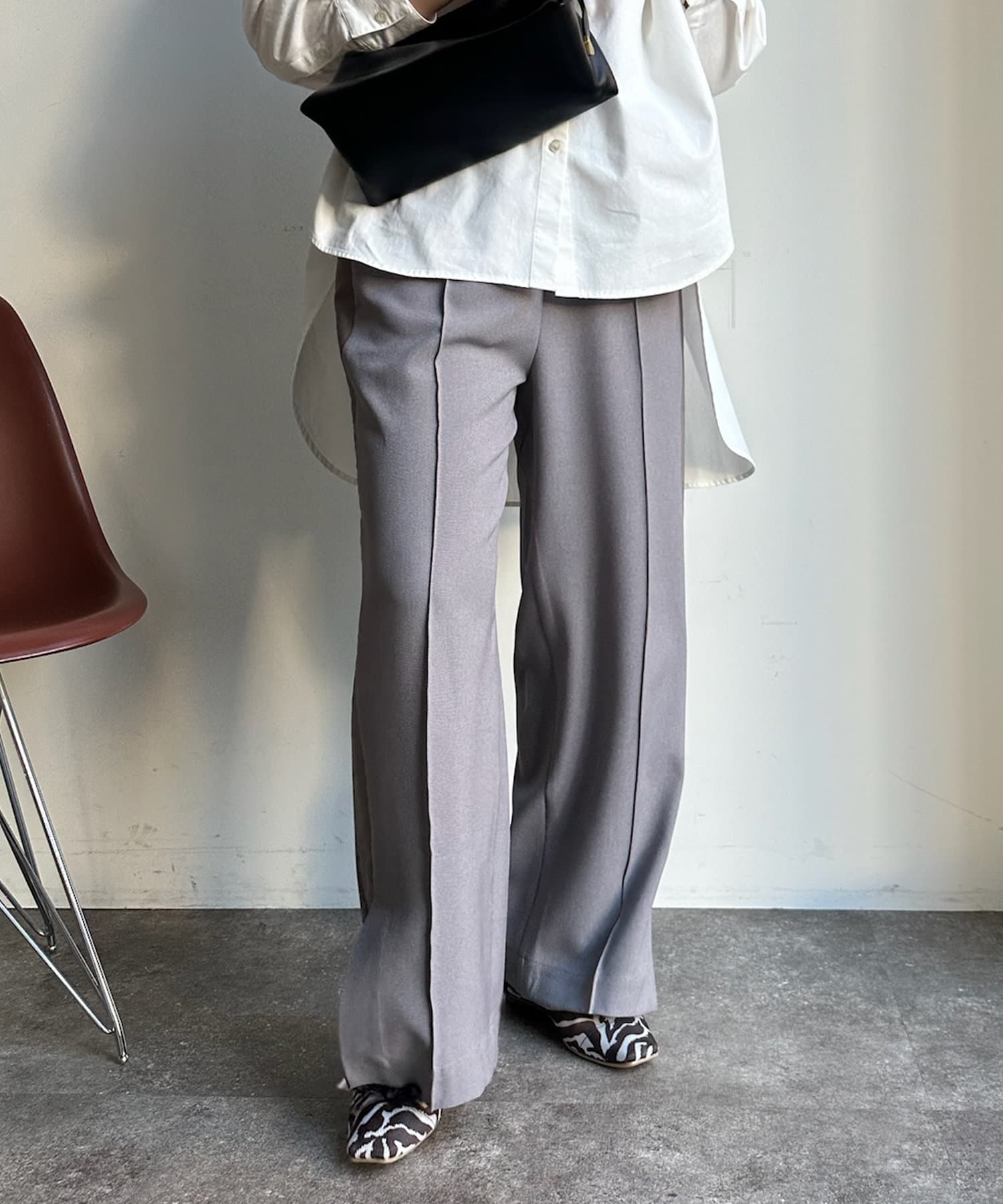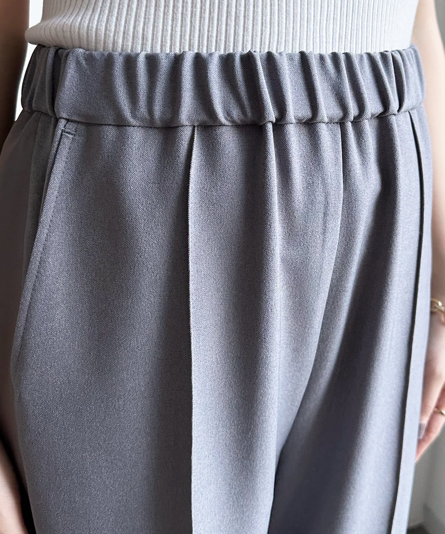 センタープレス+サイドのラインで縦ラインを強調し、履き心地イージーながらもスタイルアップ効果のあるつくりに。